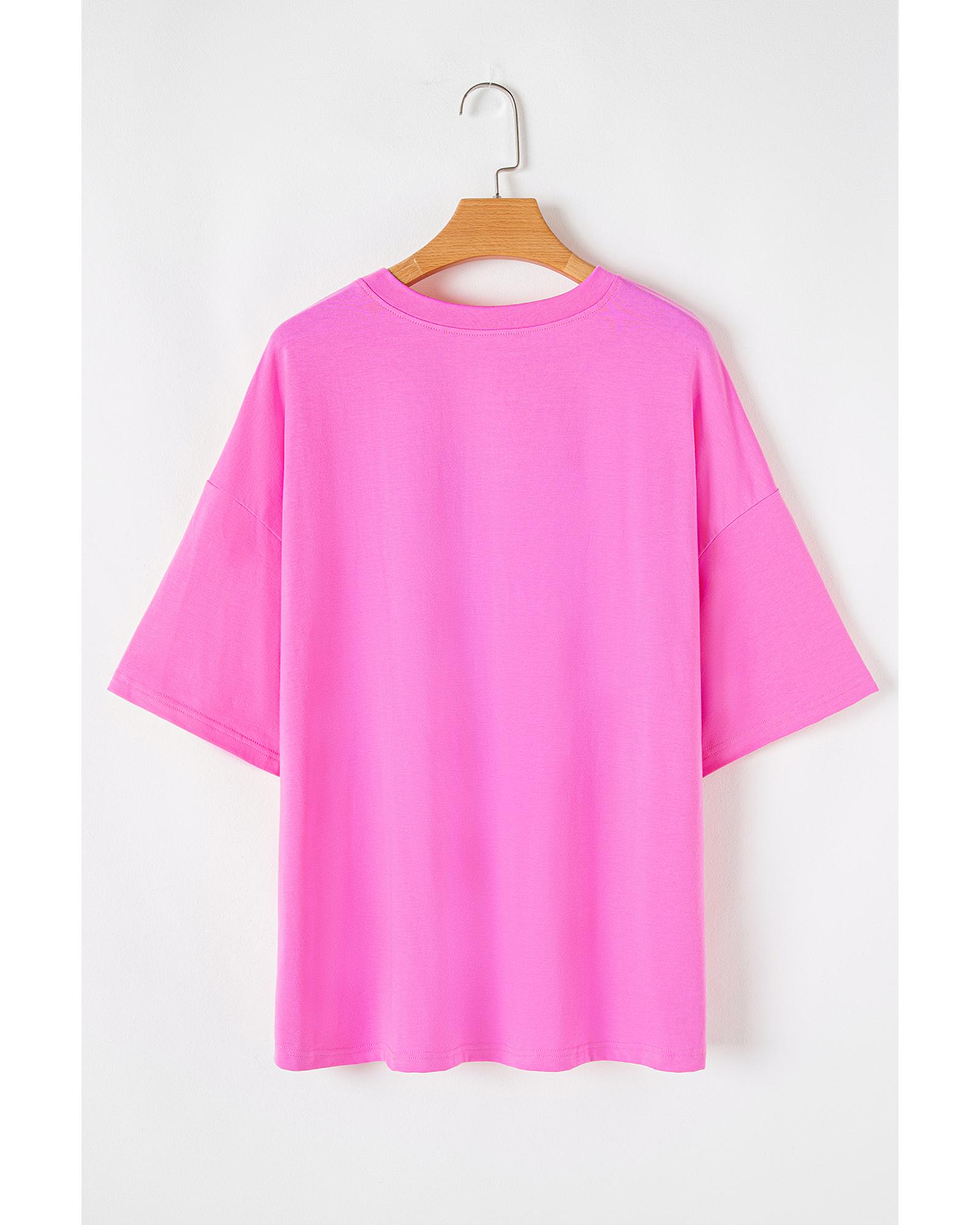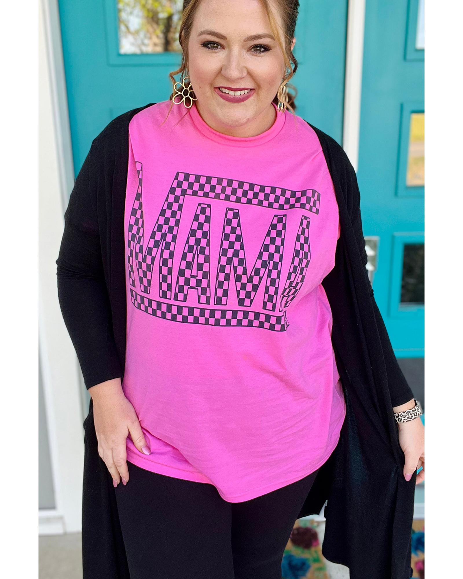 Bright Pink Checker MAMA Letter Printed Graphic Plus Size T Shirt – 4X