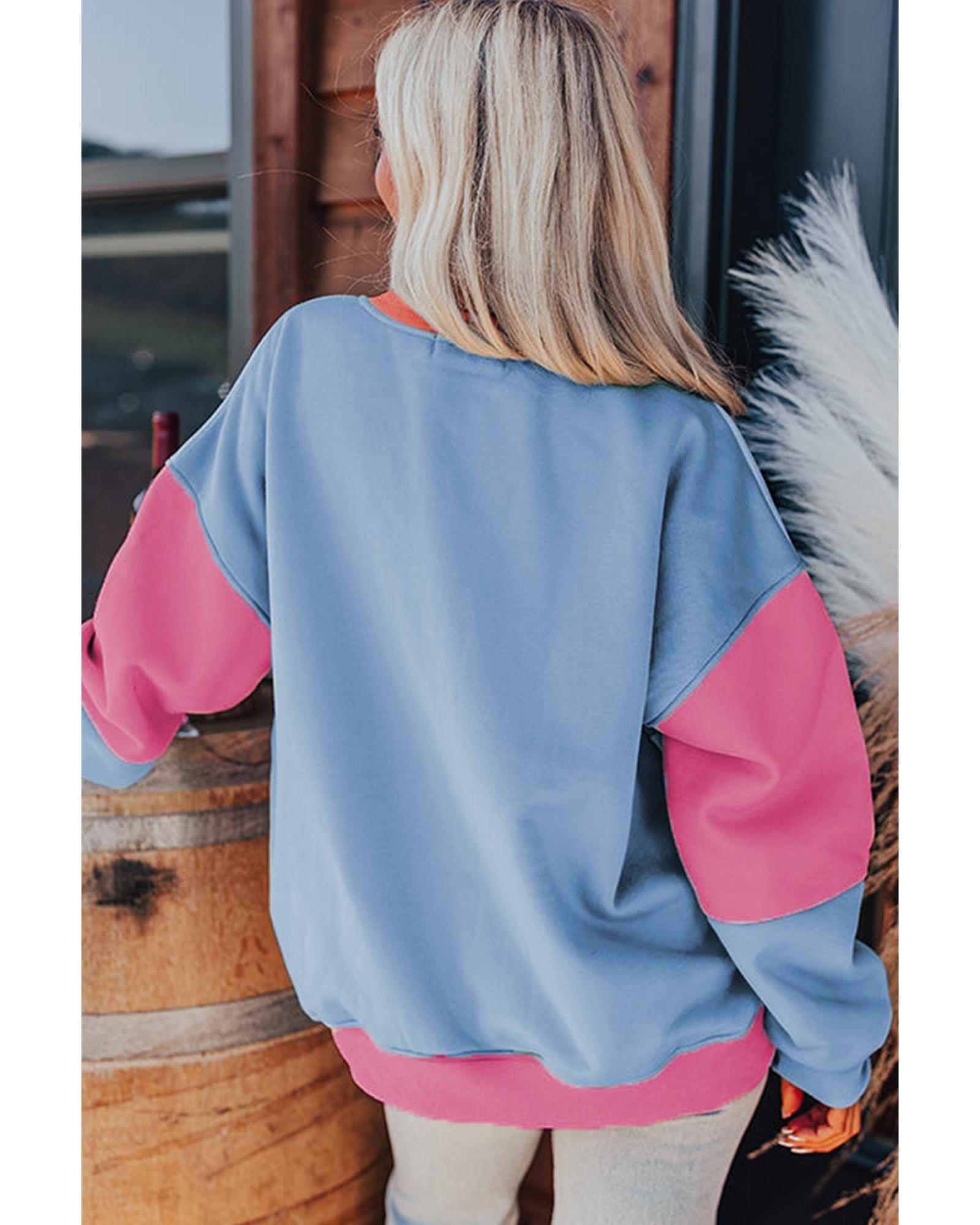 Bright Pink Colorblock Patchwork Drop Shoulder Sweatshirt – 2XL