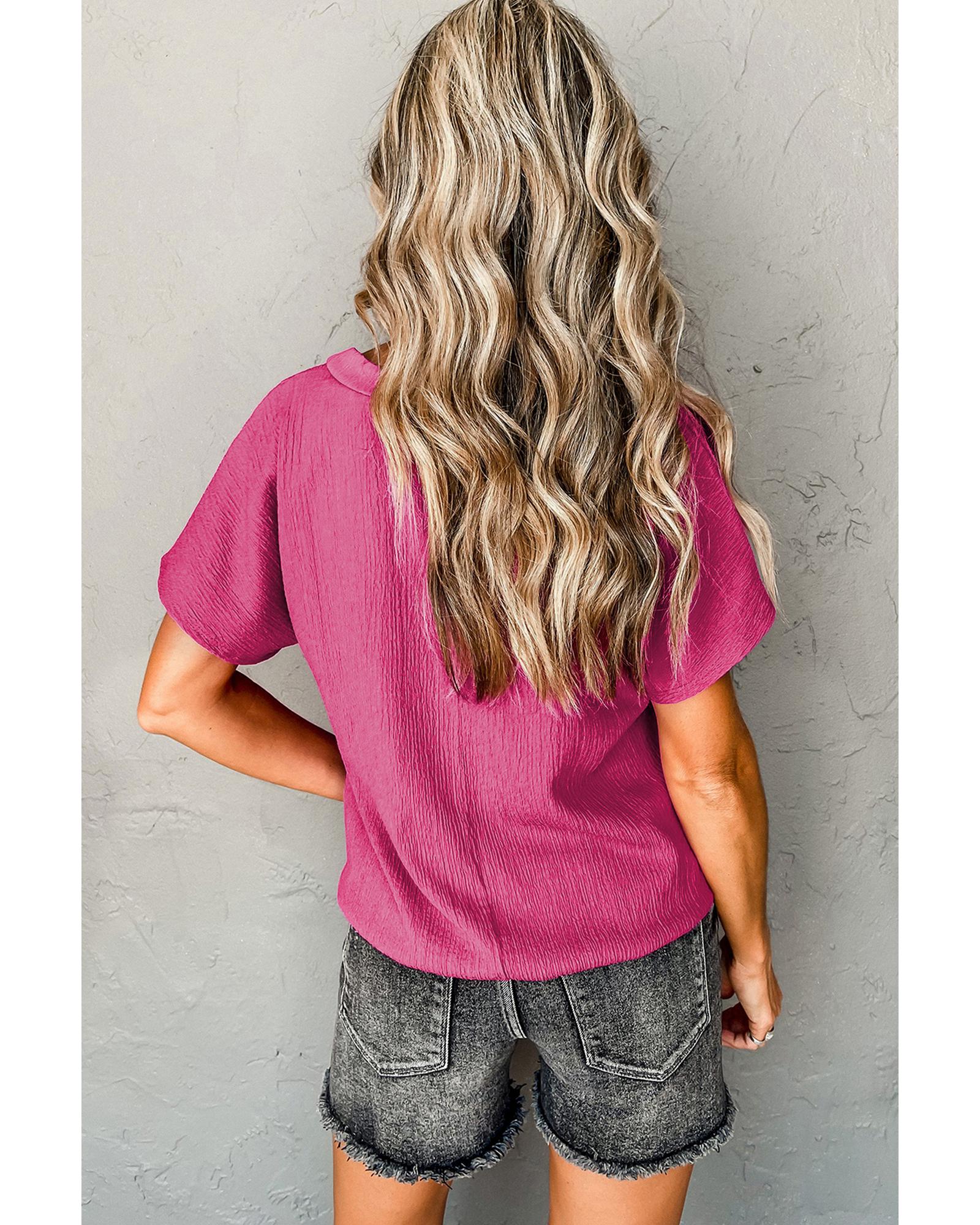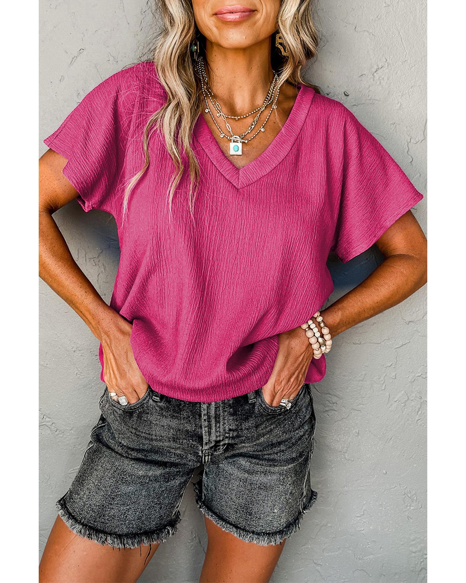 Bright Pink Crinkled V Neck Wide Sleeve T-shirt – M