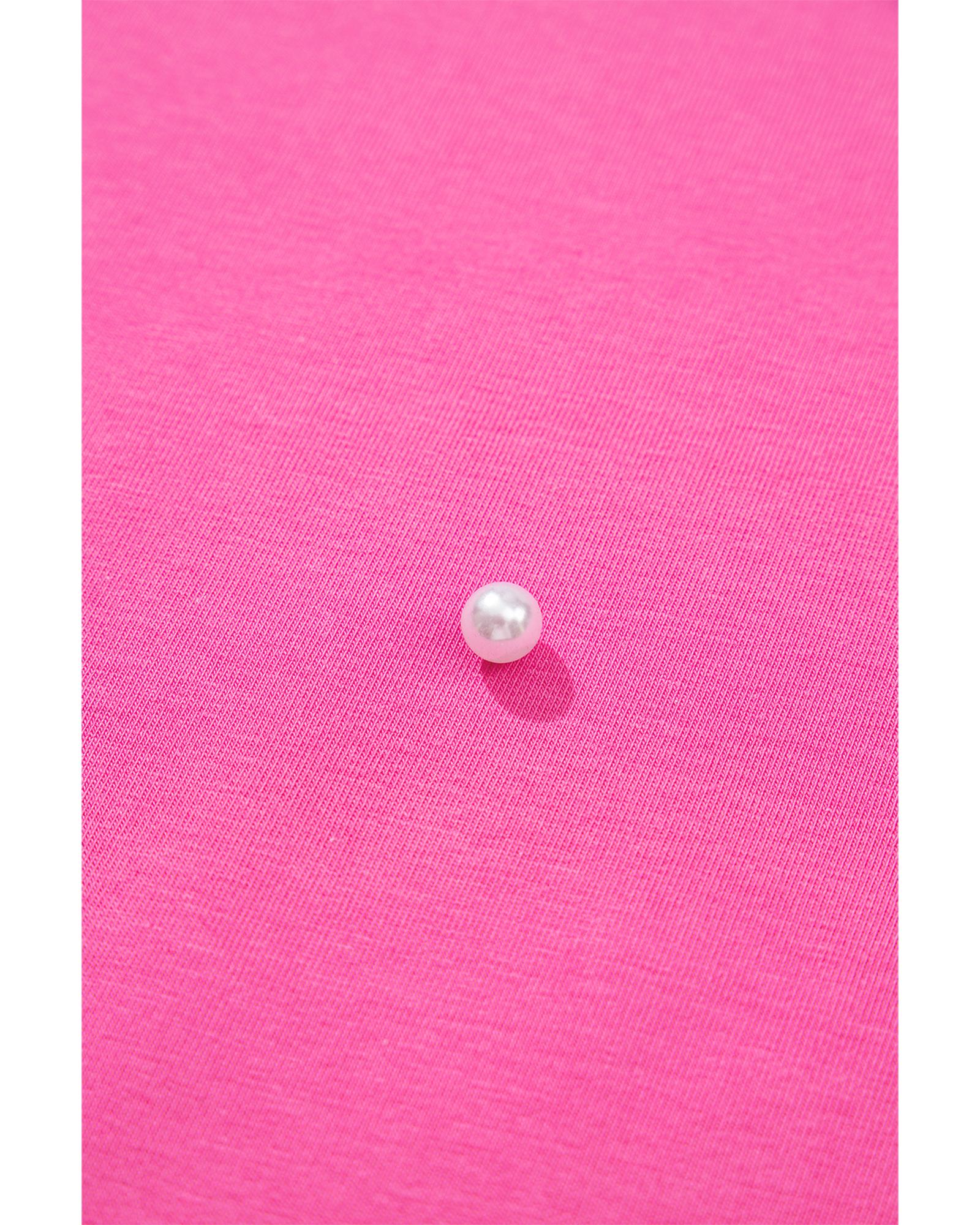 Bright Pink Pearl Beaded Drop Shoulder Crewneck T Shirt – S