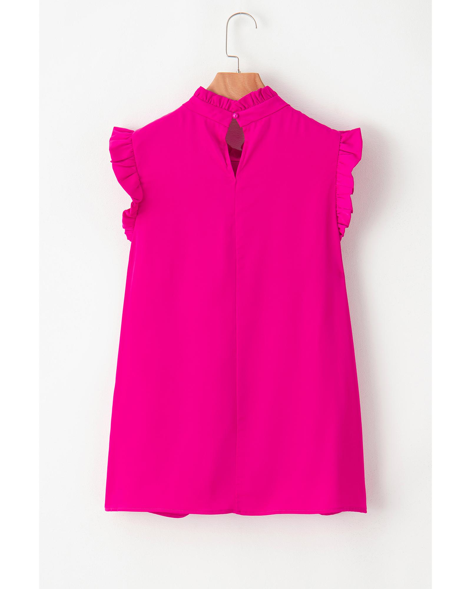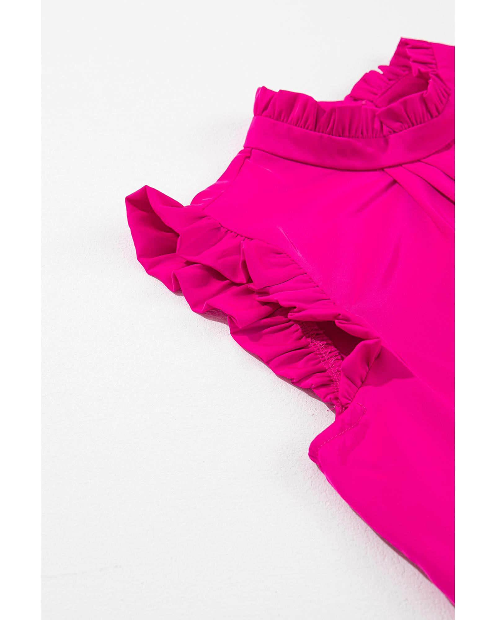 Bright Pink Pleated Mock Neck Frilled Trim Sleeveless Top – L