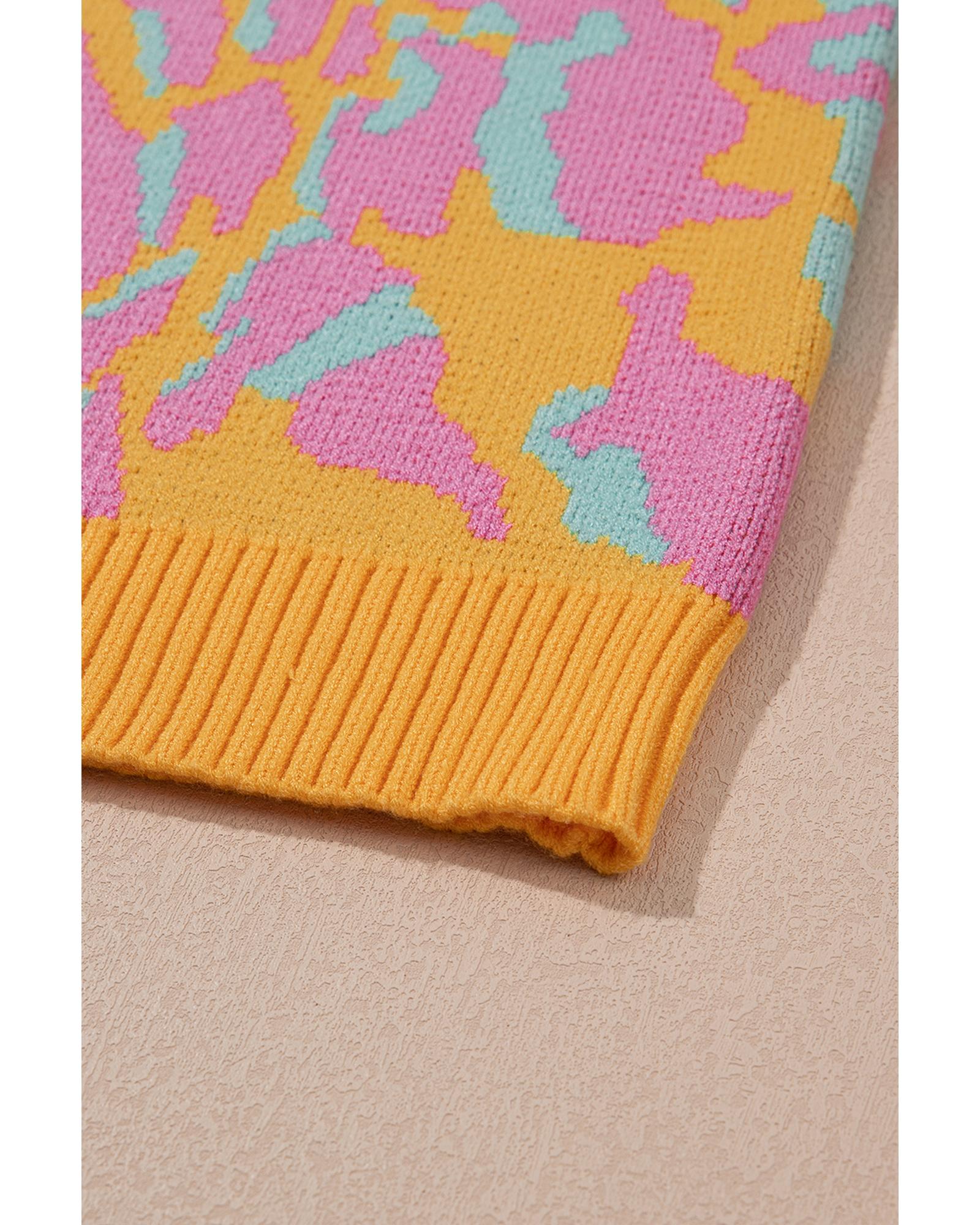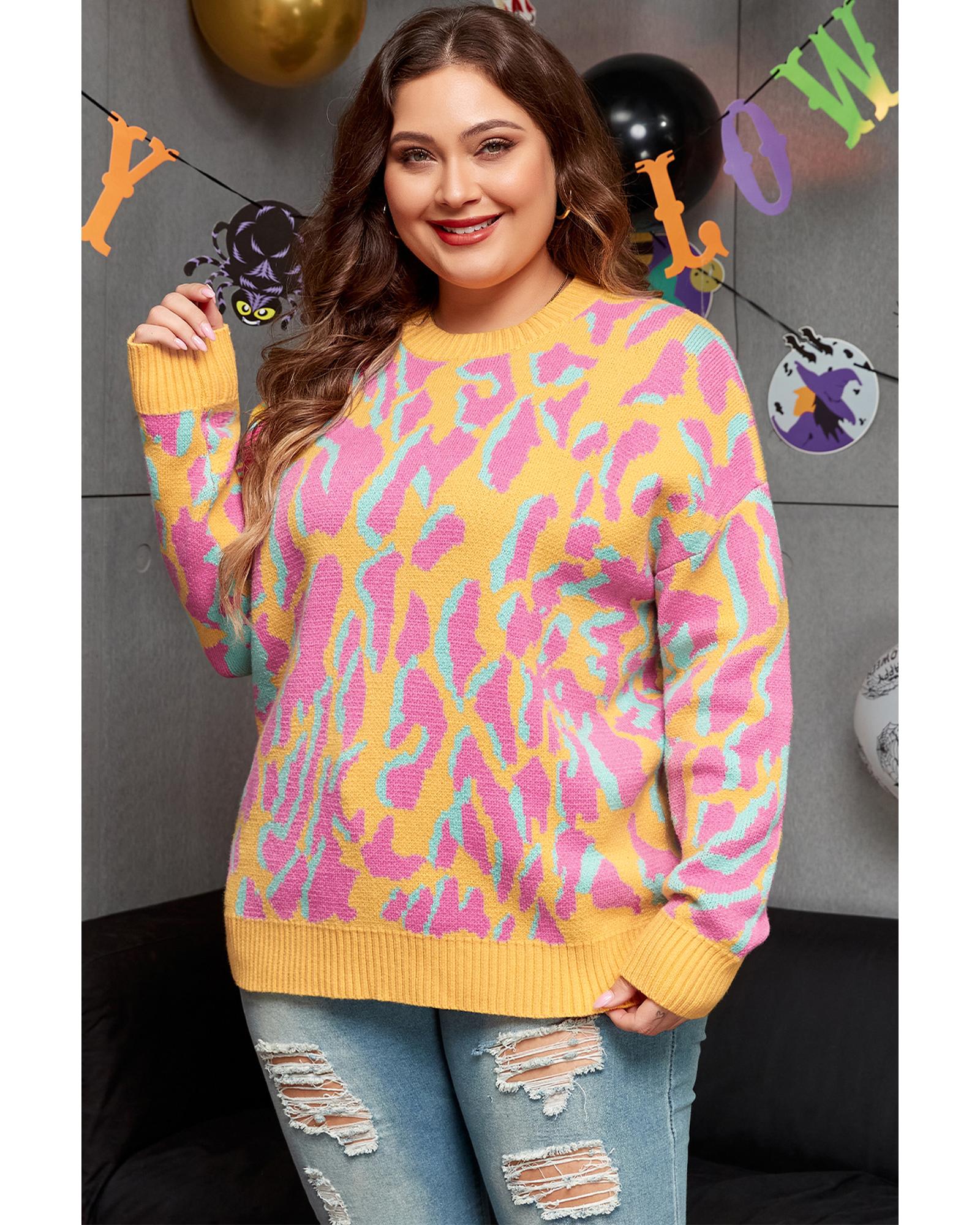 Bright Pink Plus Size Leopard Ribbed Trim Sweater – 3X