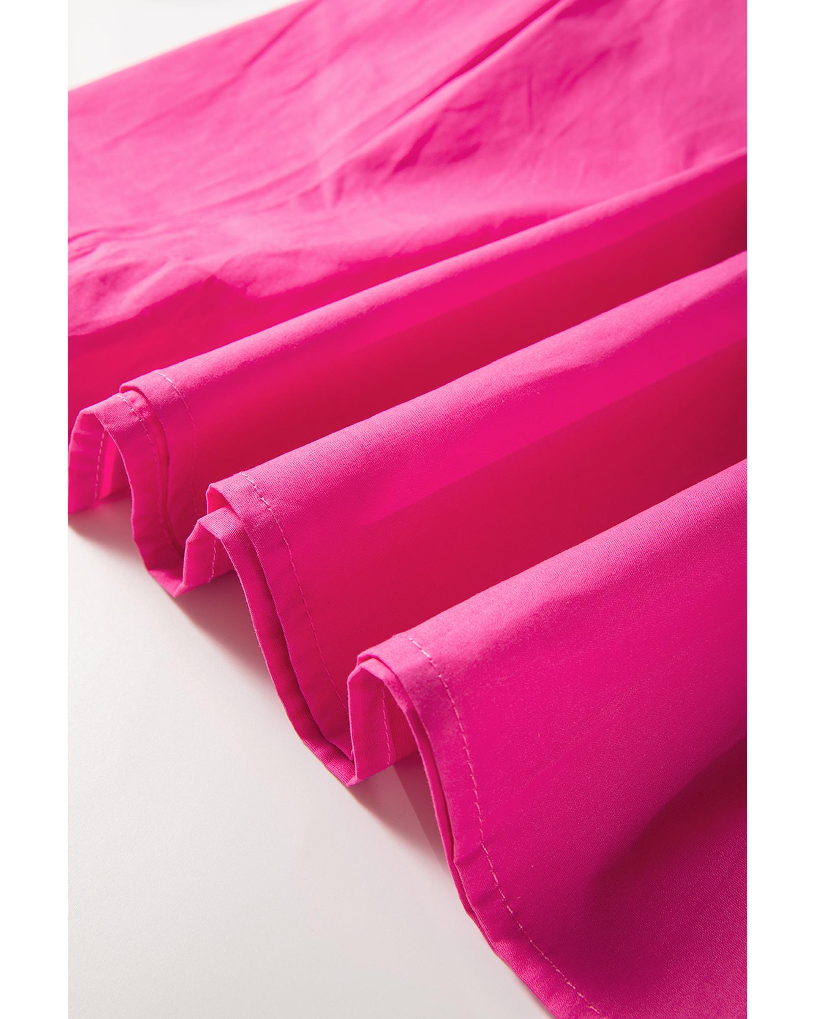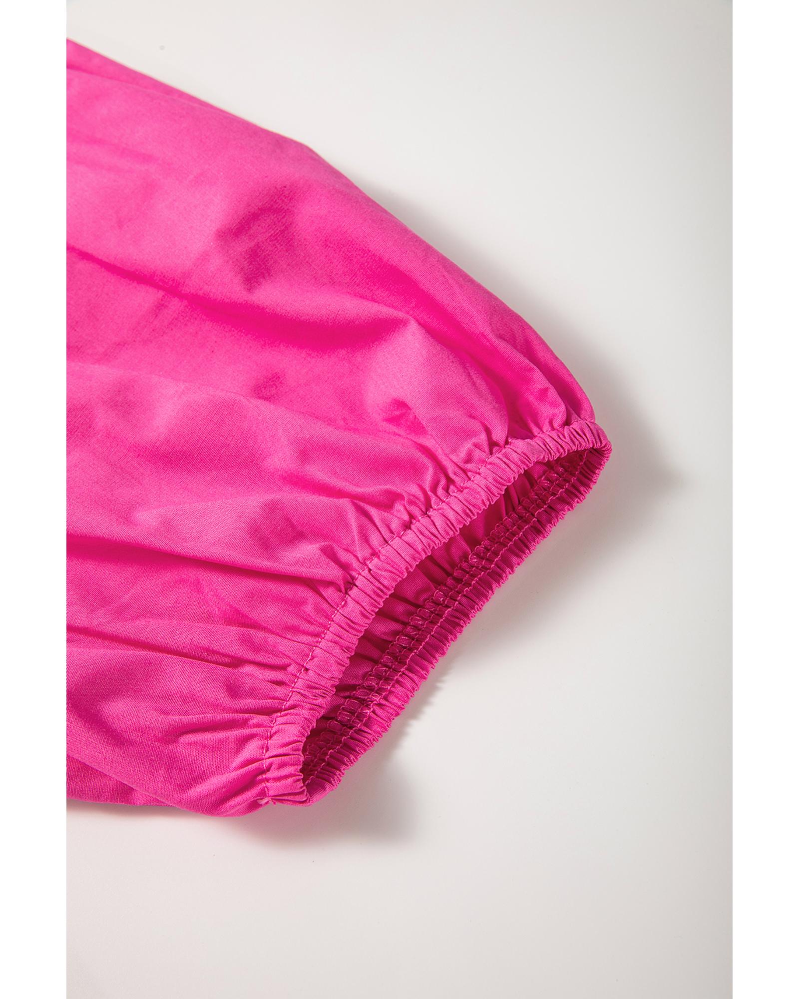 Bright Pink Solid Color Puff Sleeve Tie Front High Waist Mini Dress – M
