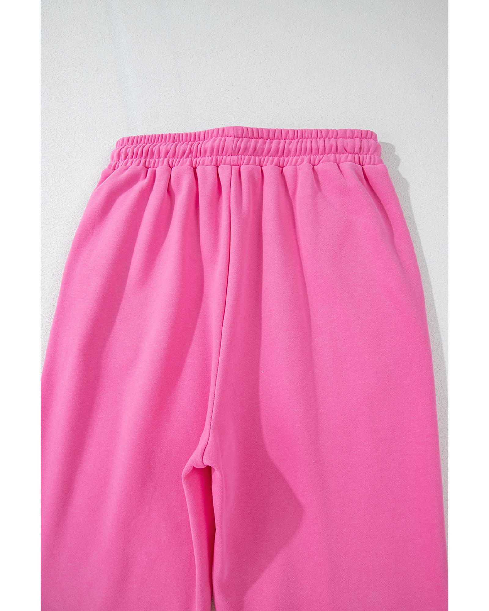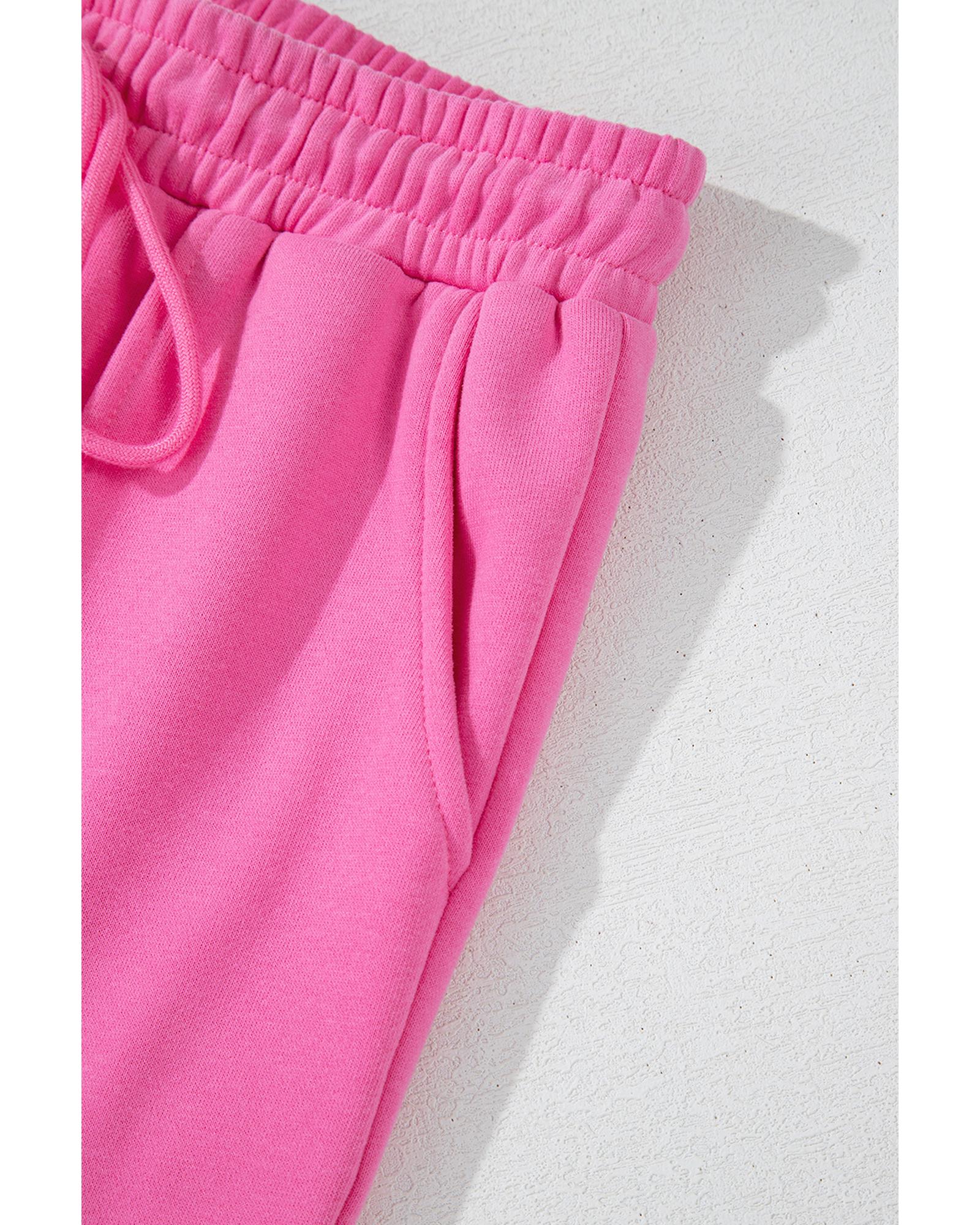 Bright Pink Solid Seamed Zipper Jacket and Drawstring Waist Pants Set – L