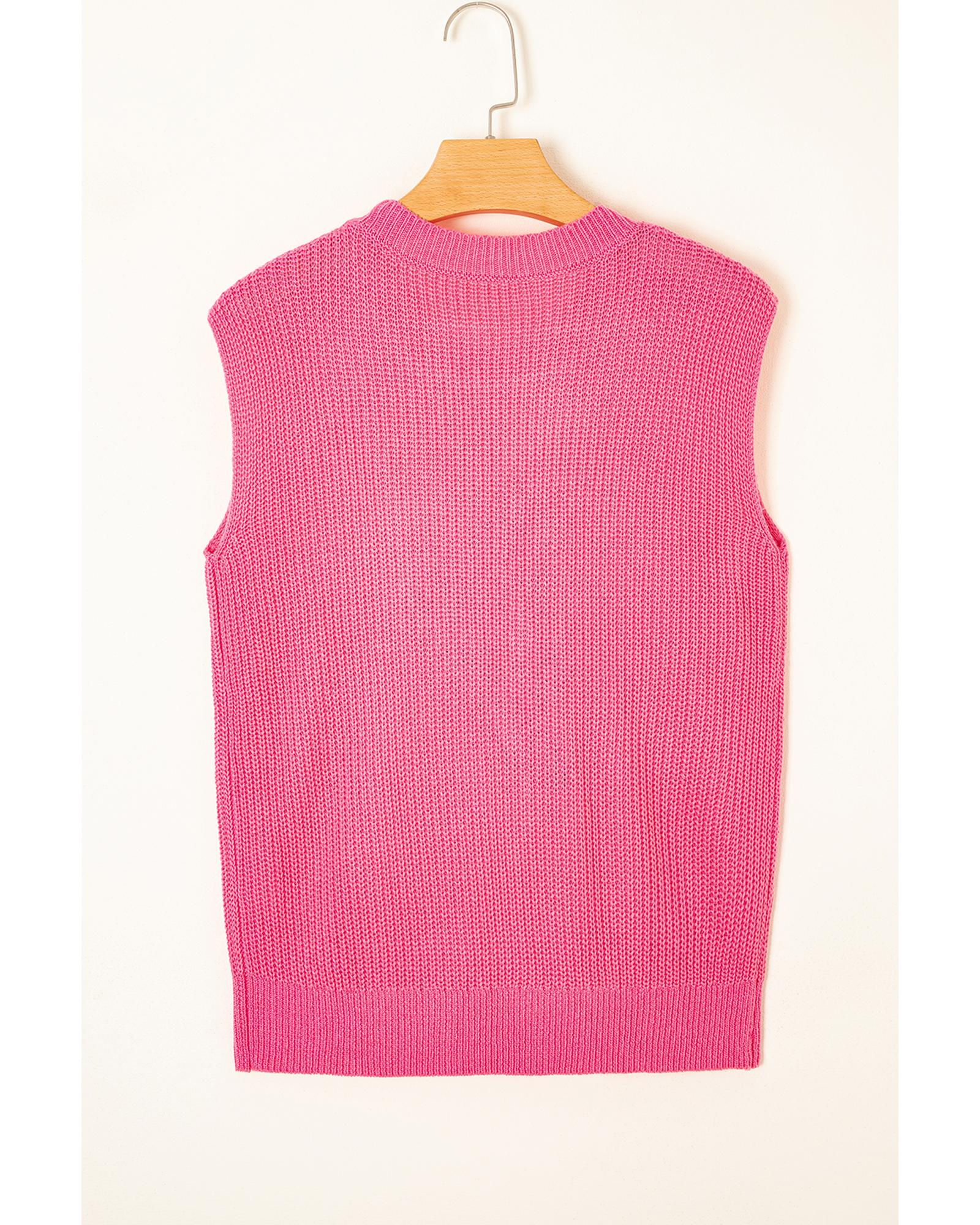 Bright Pink Western Cowboy Embroidery Round Neck Sleeveless Sweater – M