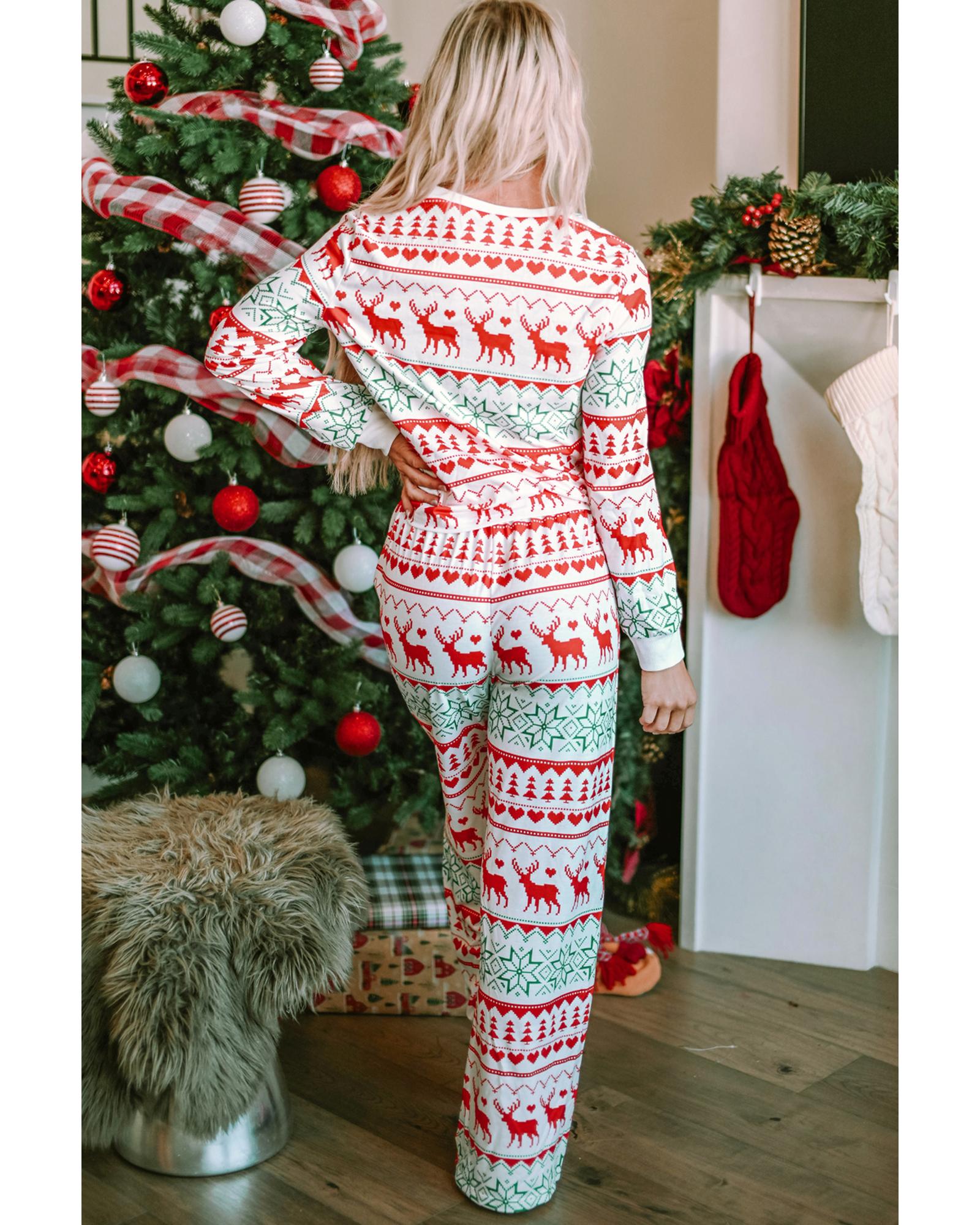 Bright White Christmas Print Pullover and Pants Lounge Set Cheerful print and soft fabric Ideal gift for relaxation during the holiday season Perfect for lounging parties and running errands Stylish and comfy two piece set for women - Material: 95% Polyester 5% Elastane