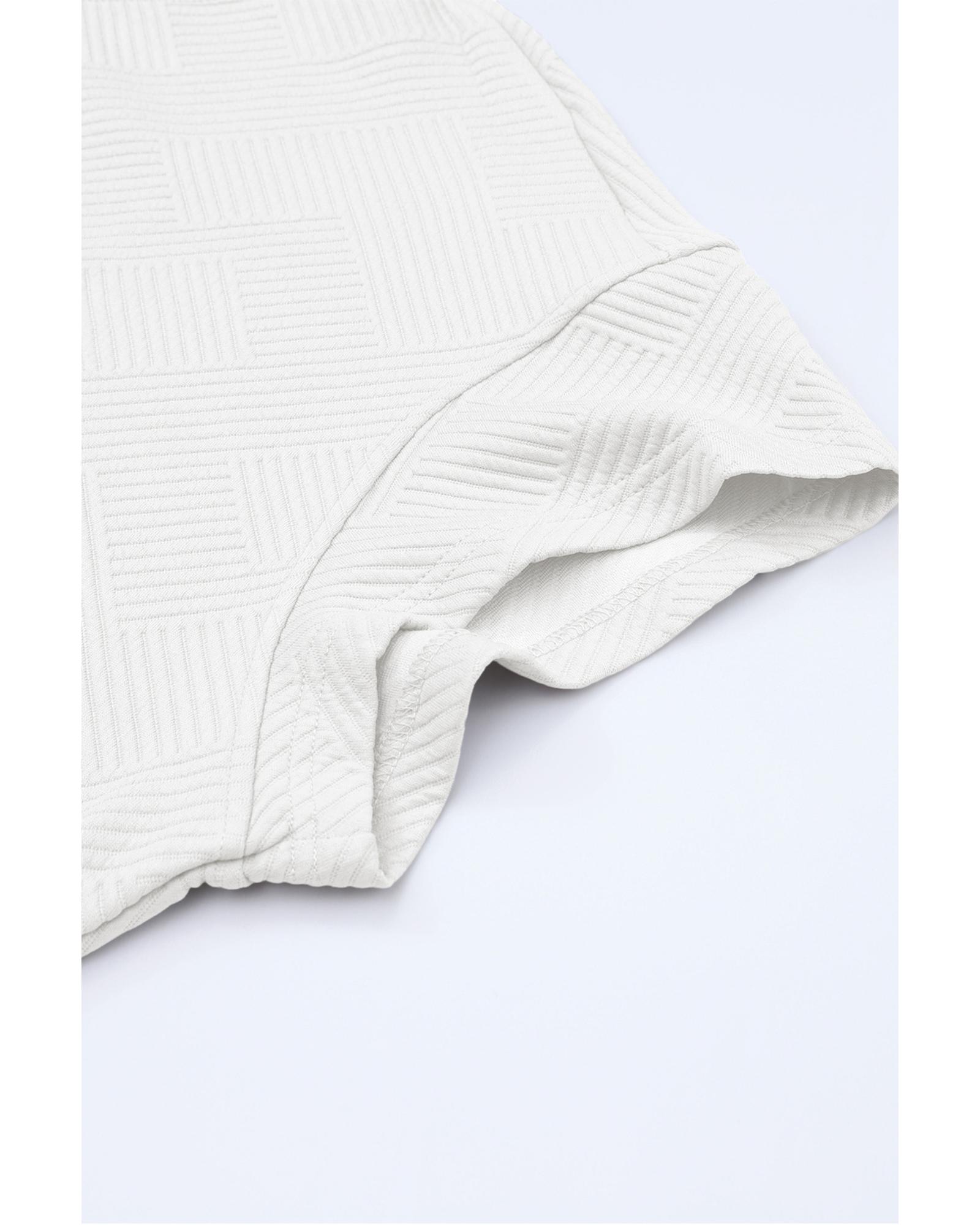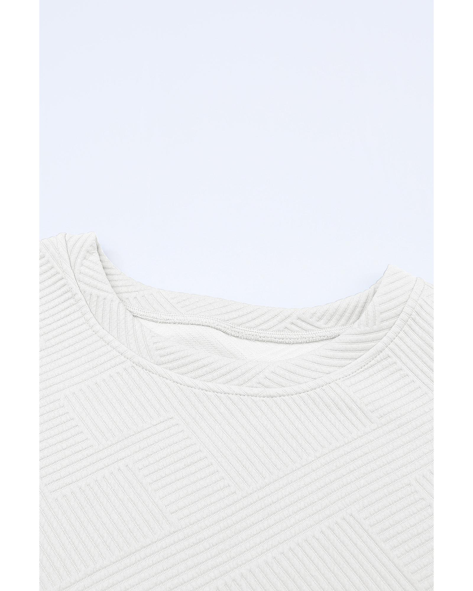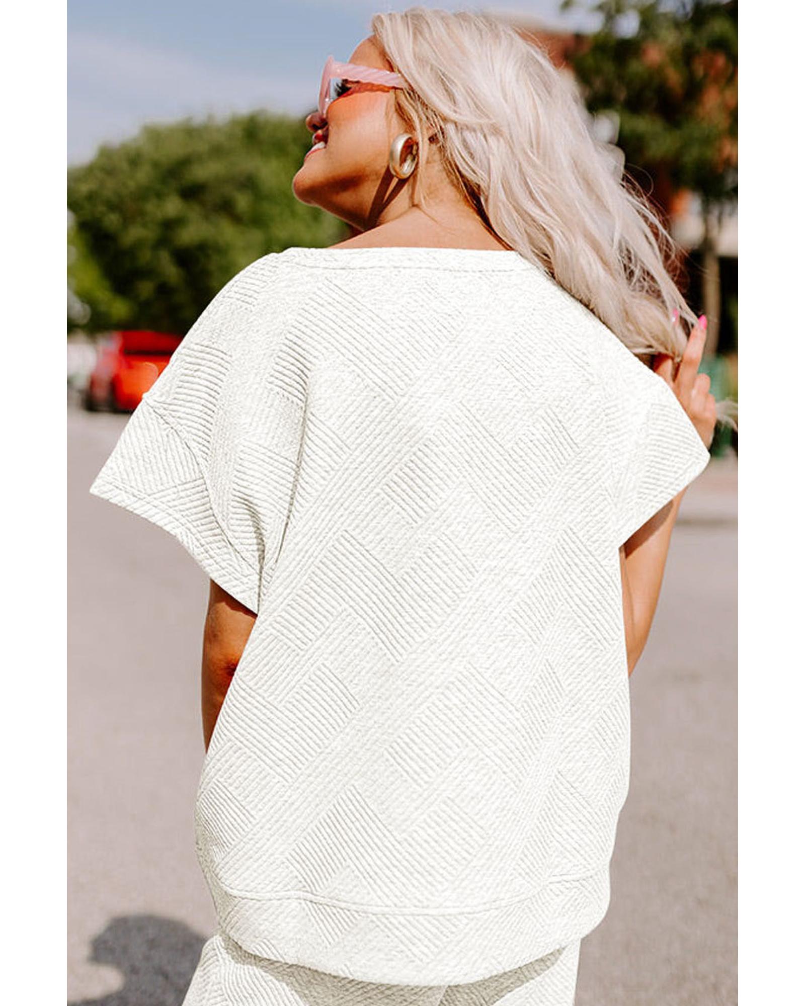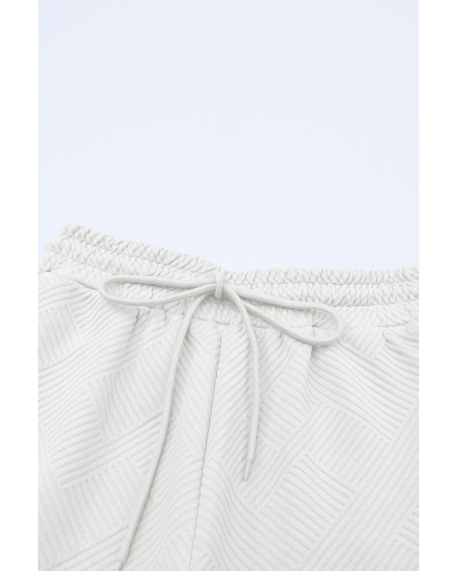 Bright White Textured Loose Fit T Shirt and Drawstring Pants Set – S