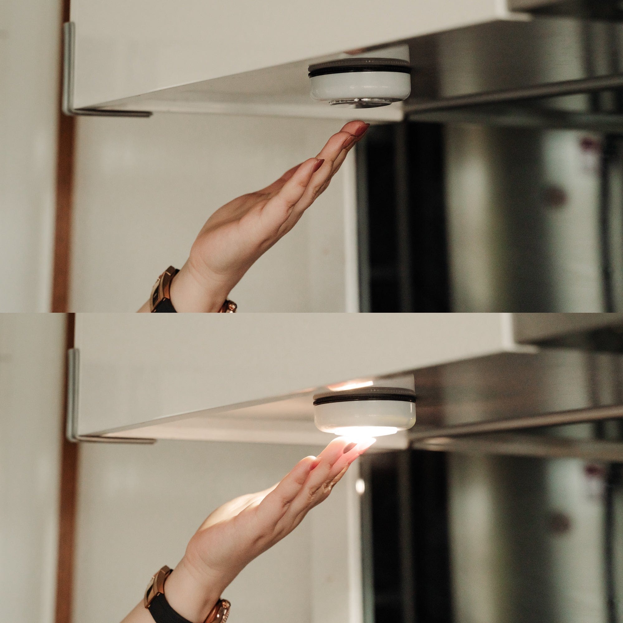 These Peel N Stick puck lights provide quick push-button cordless lighting for closets, car boots, cupboards and drawers. Anywhere you might need a portable lighting solution. Simply stick them onto a clean surface for a permanent mount or use them take them with you and use them as portable lighting. Remove the battery tab in the lights before use.