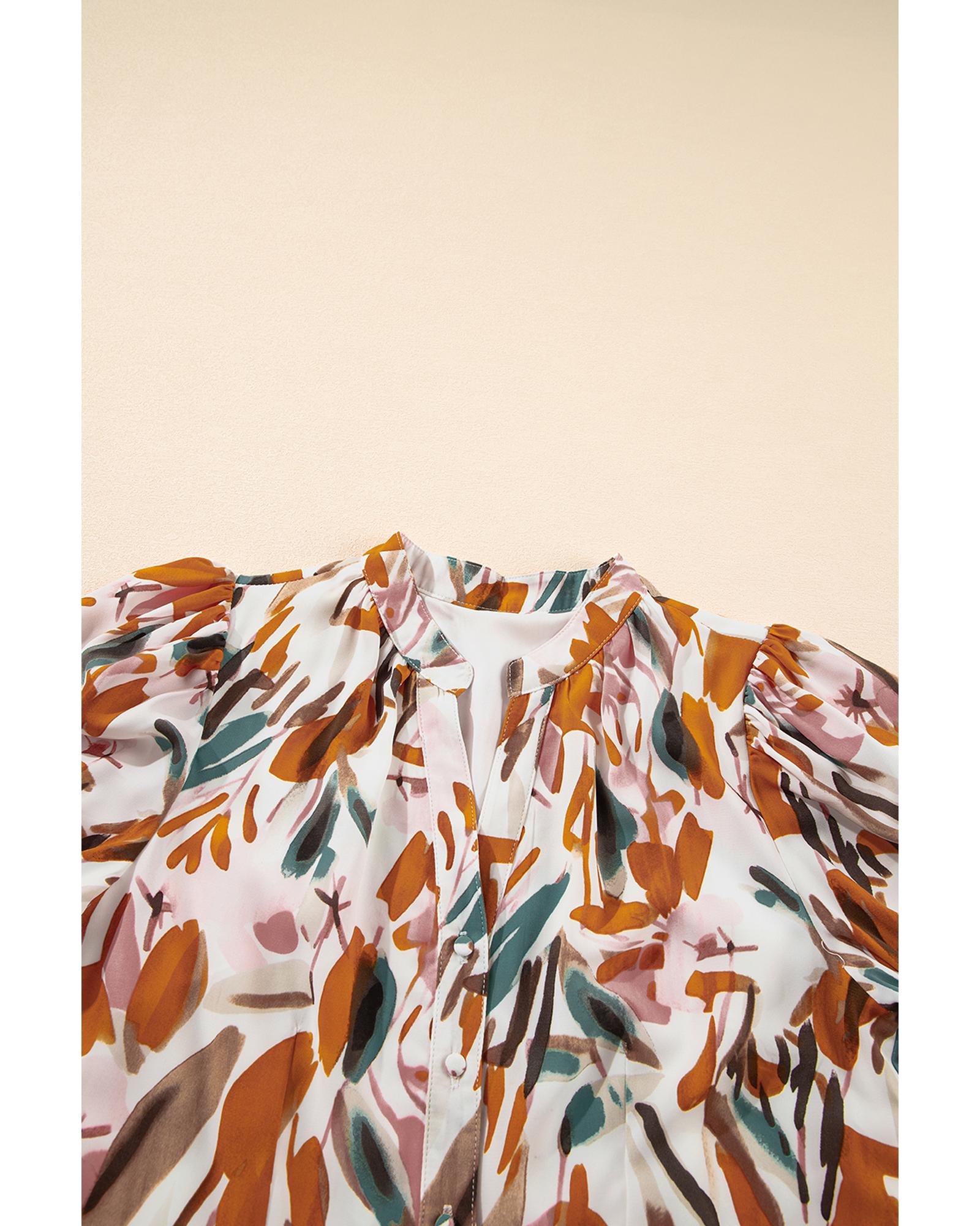 Brown Abstract Printed Puff Sleeve Button Up Braided Belt Mini Dress – XL