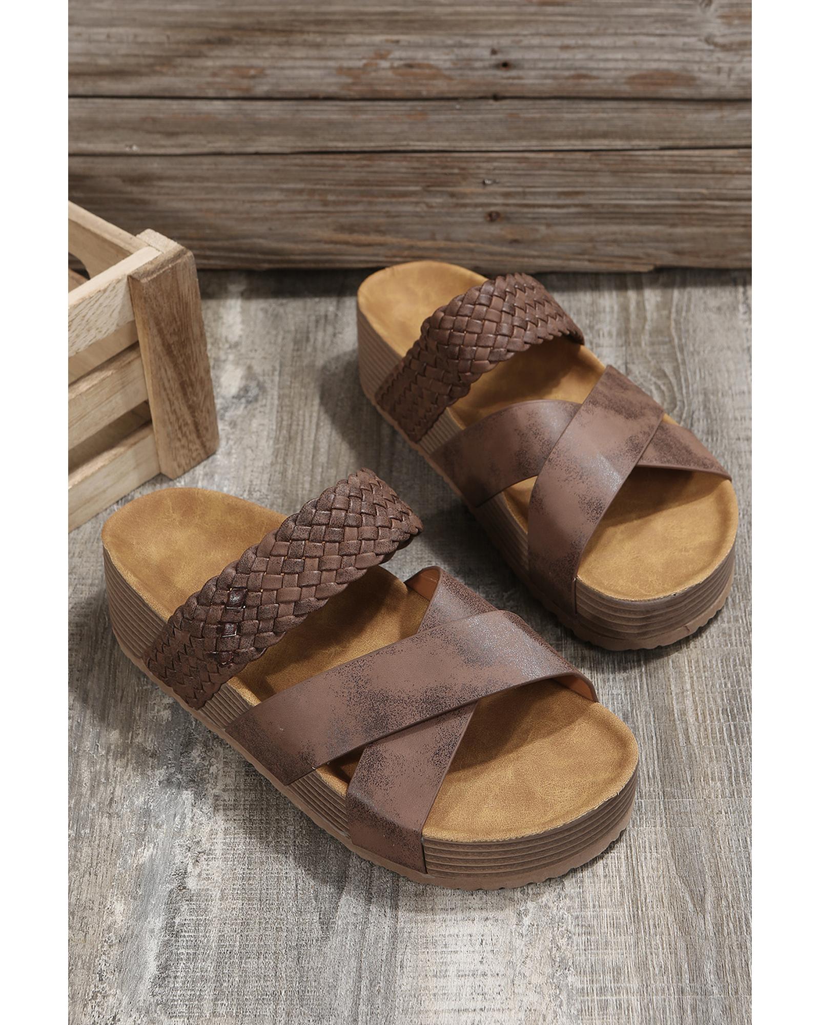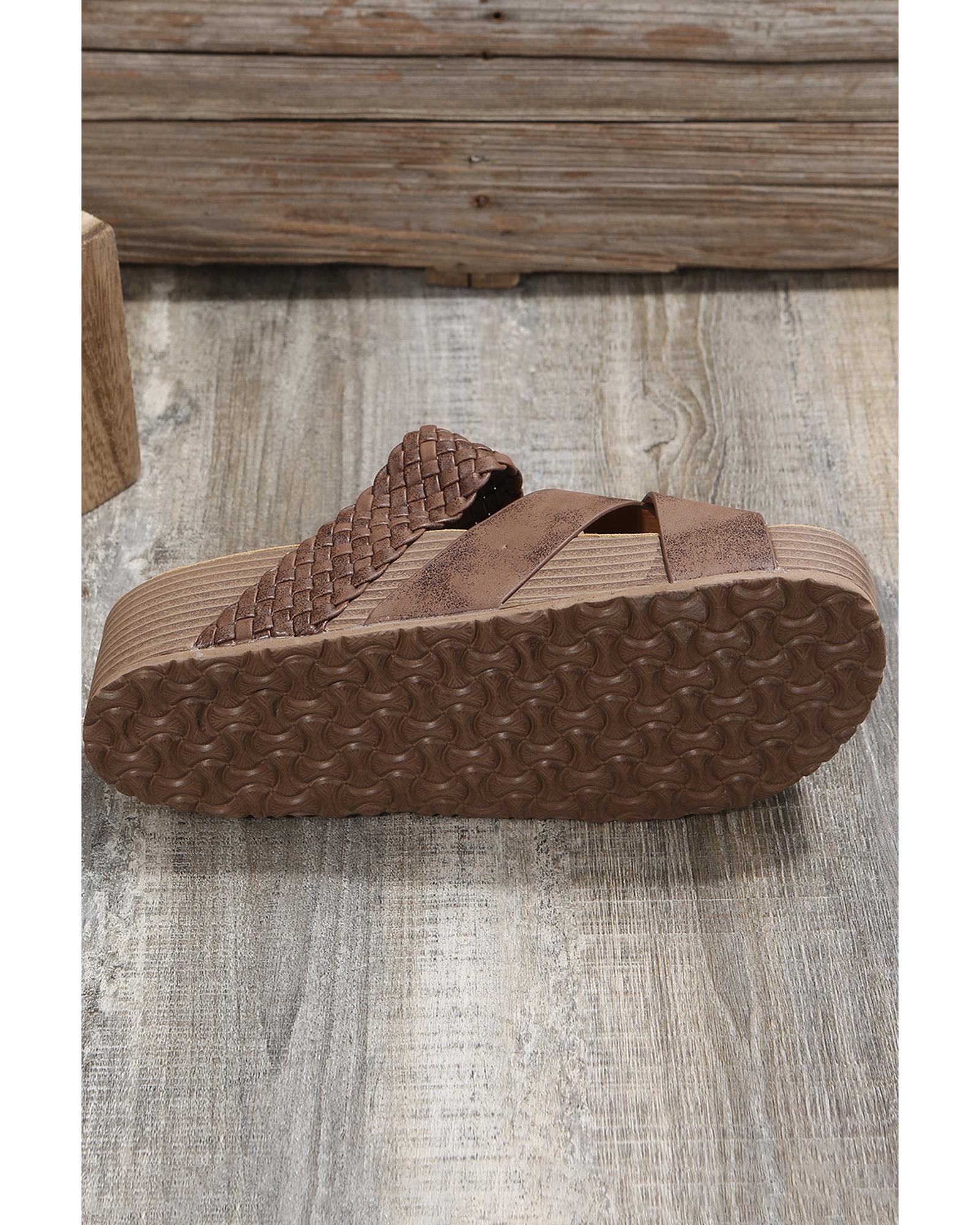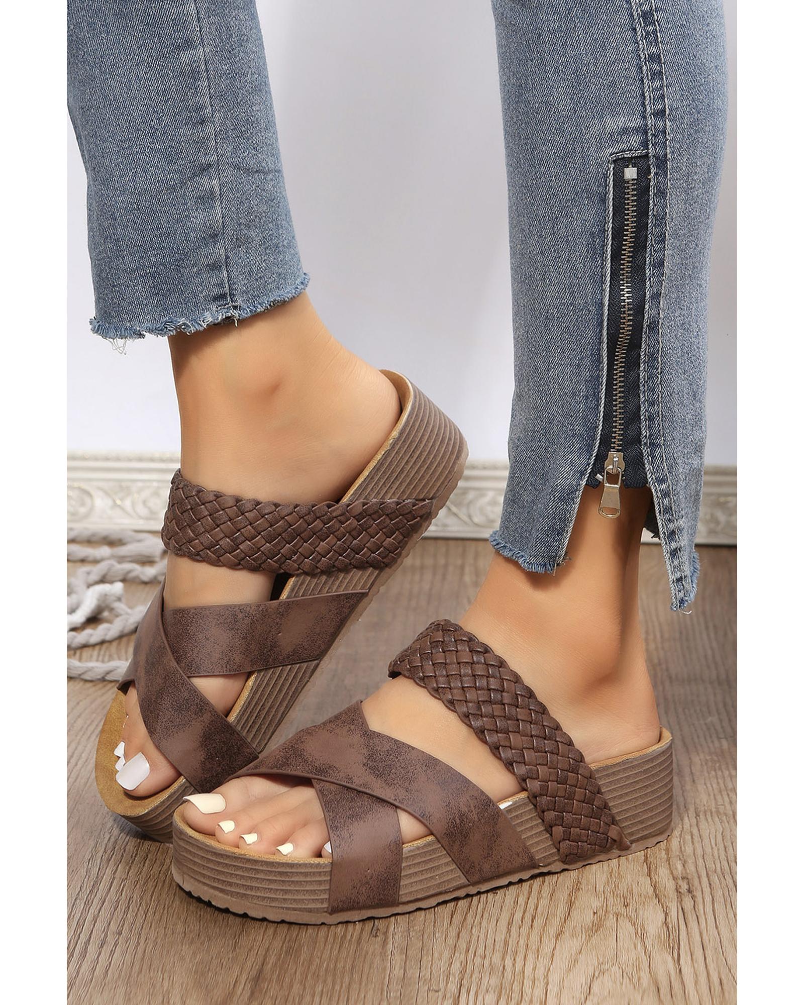 Brown Braided Detail Criss Cross Platform Slippers - 39 EU
