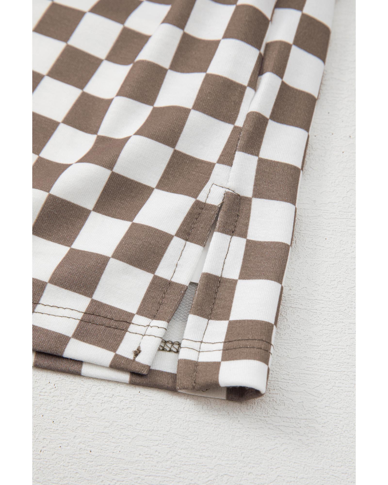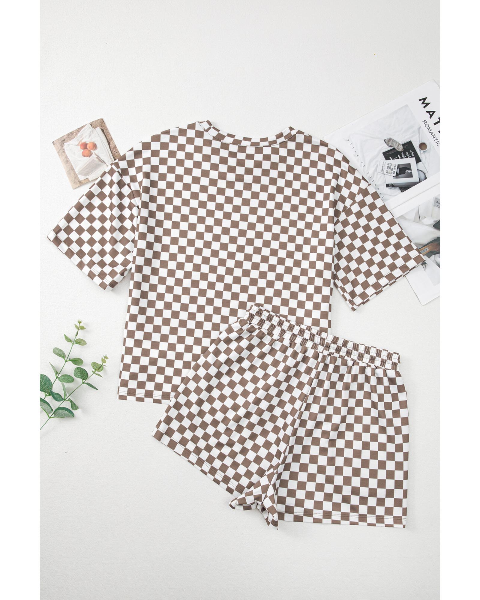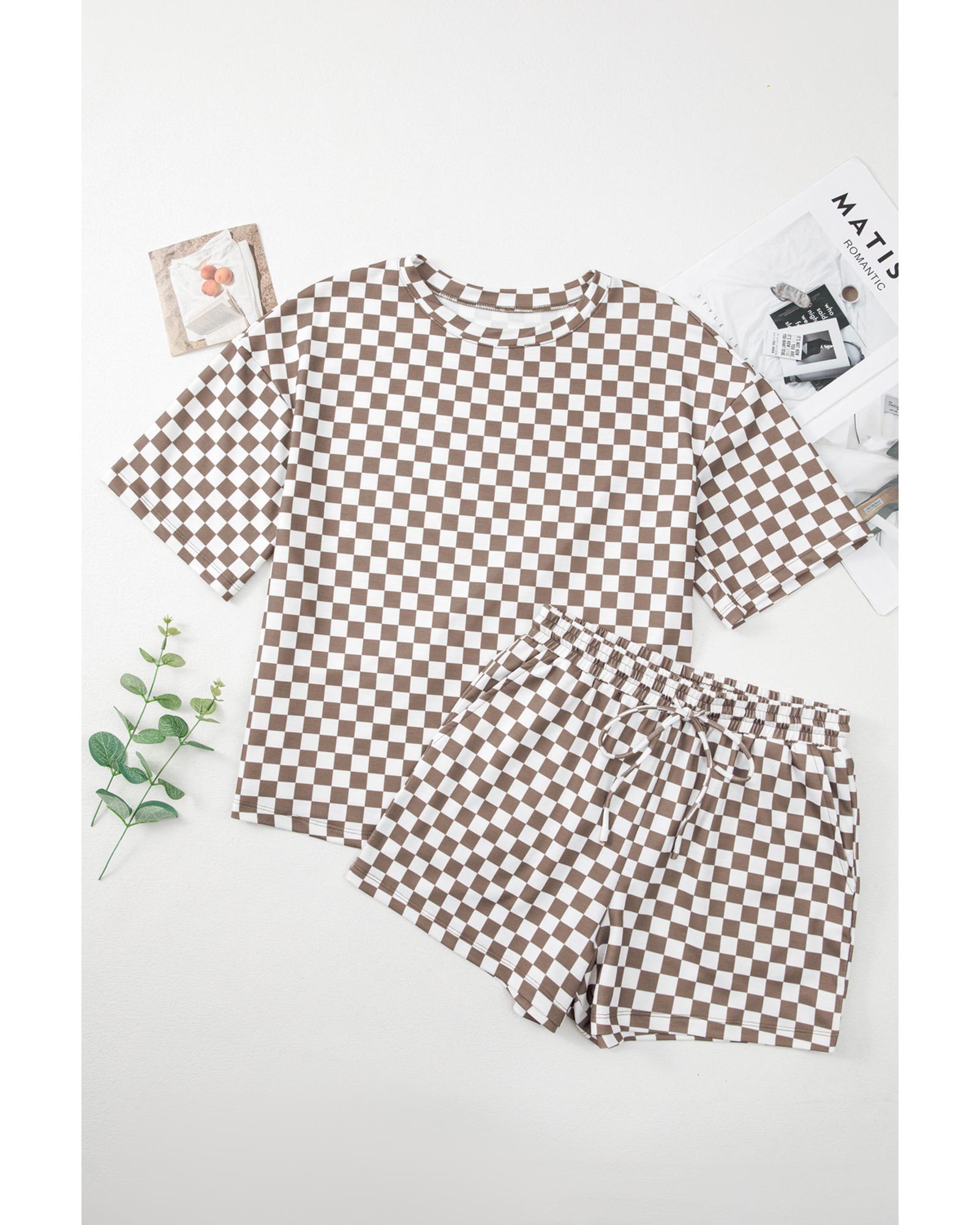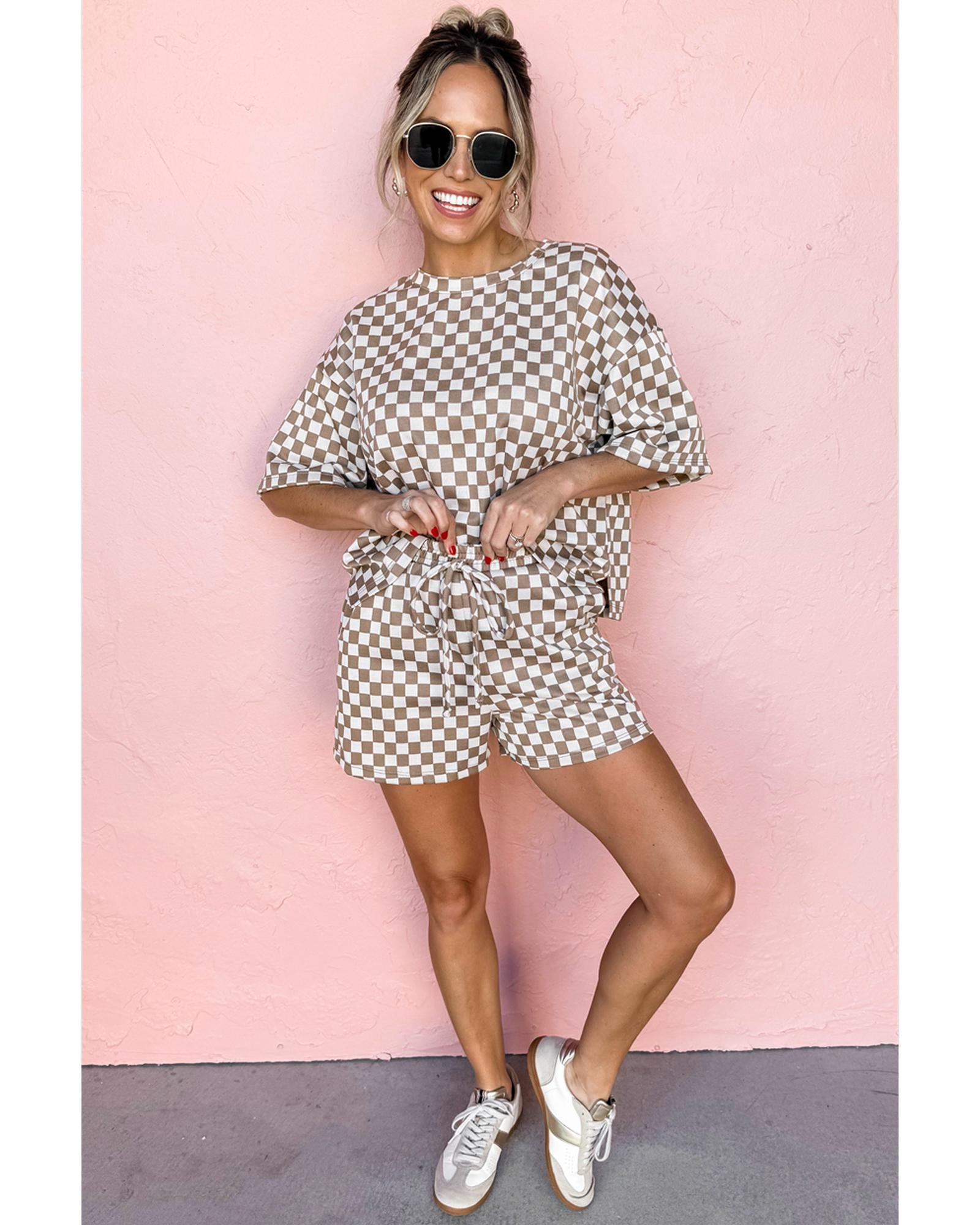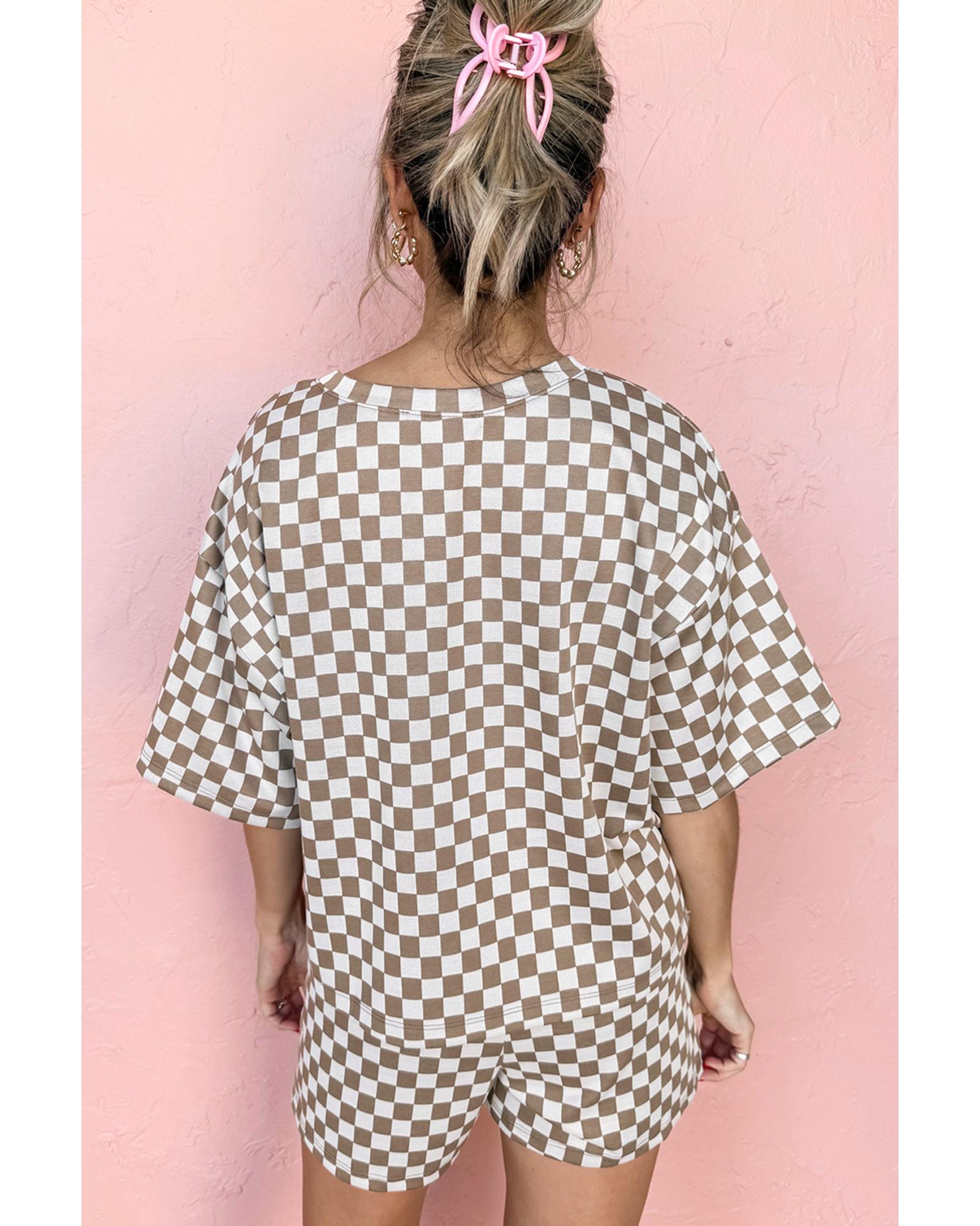 Brown Checkered Top and Short Casual 2pcs Set – XL