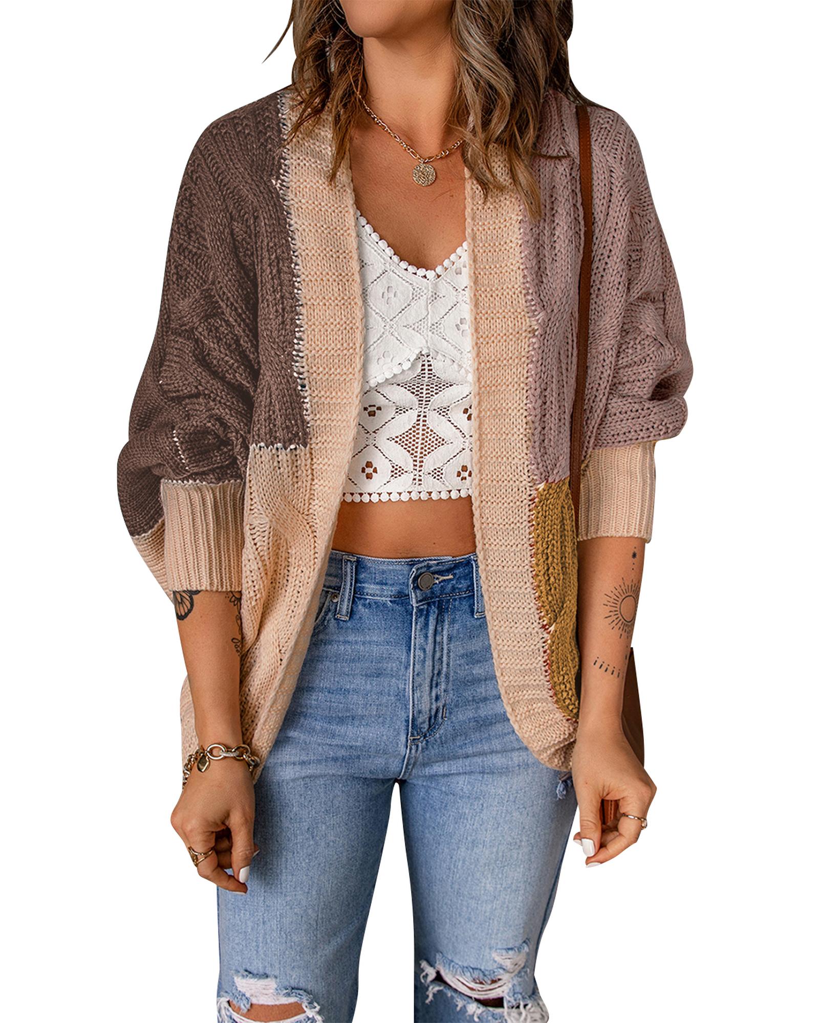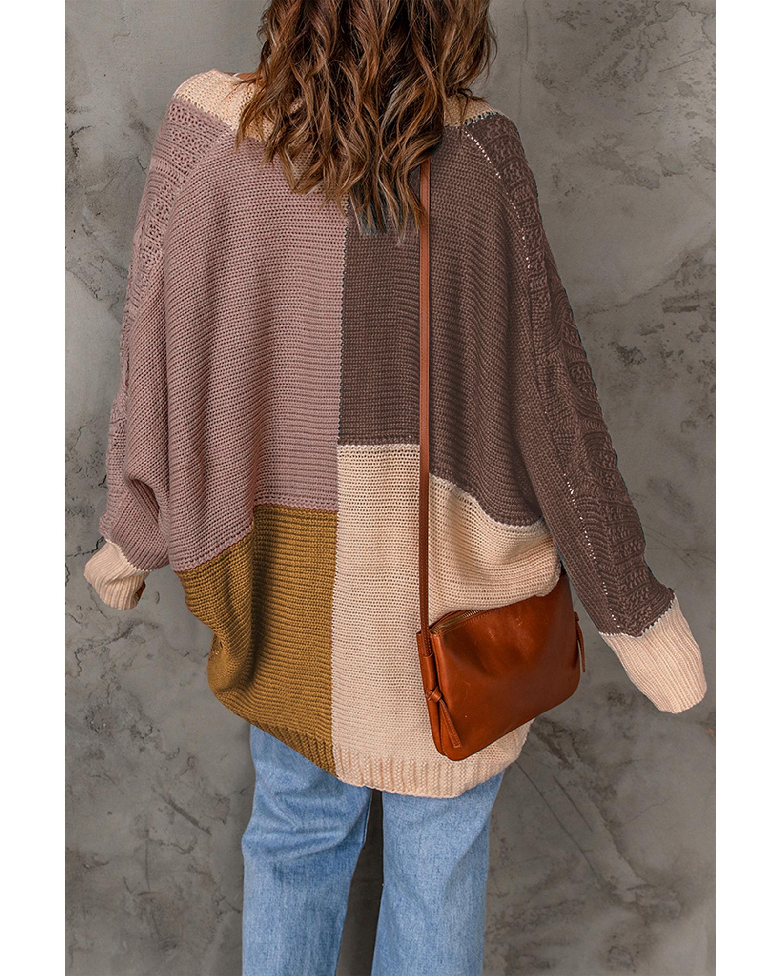 Brown Color Block Loose Open Front Knitted Cardigan – 2XL