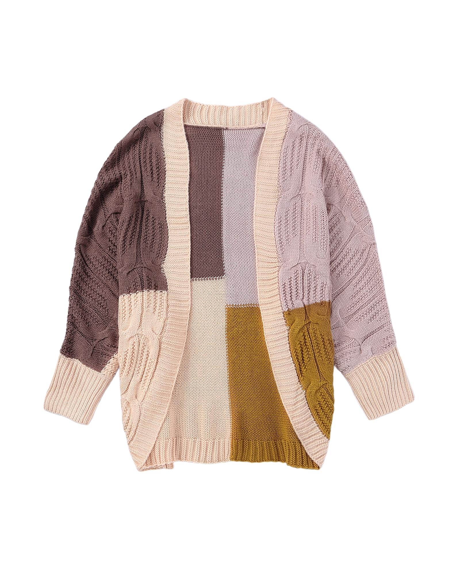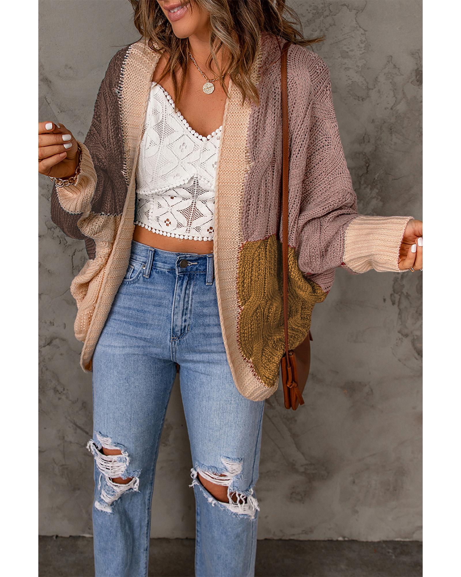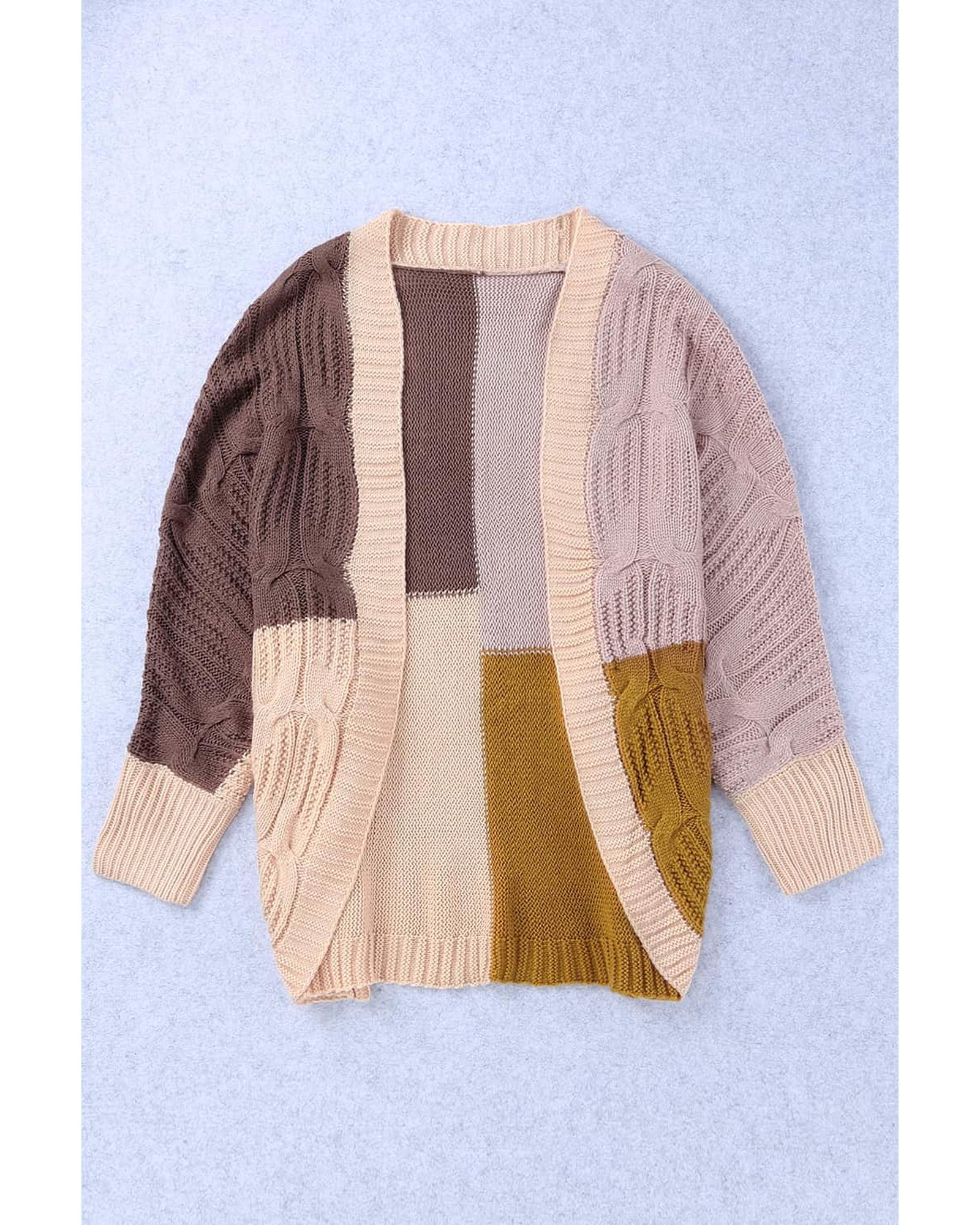 Brown Color Block Loose Open Front Knitted Cardigan – L