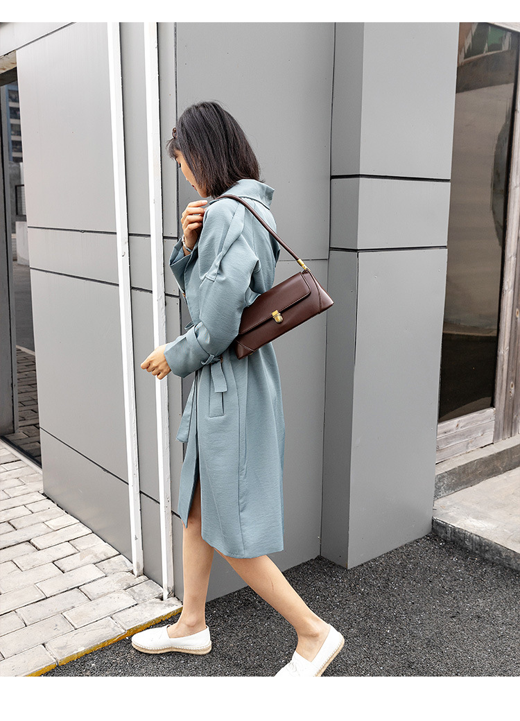 Brown Elegant Vintage Baguette Shoulder Bag – Chic PU Leather Underarm Purse with Gold Clasp