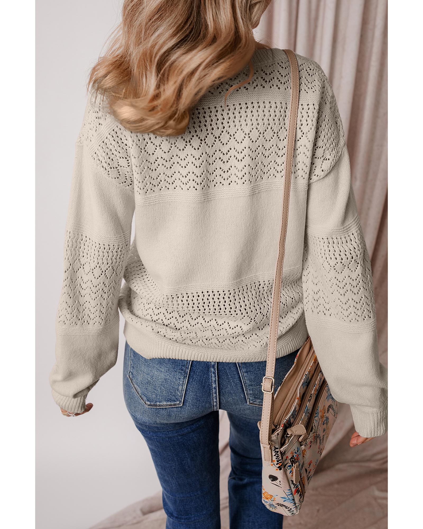 Brown Eyelet Pattern Detail V Neck Drop Shoulder Sweater – 2XL