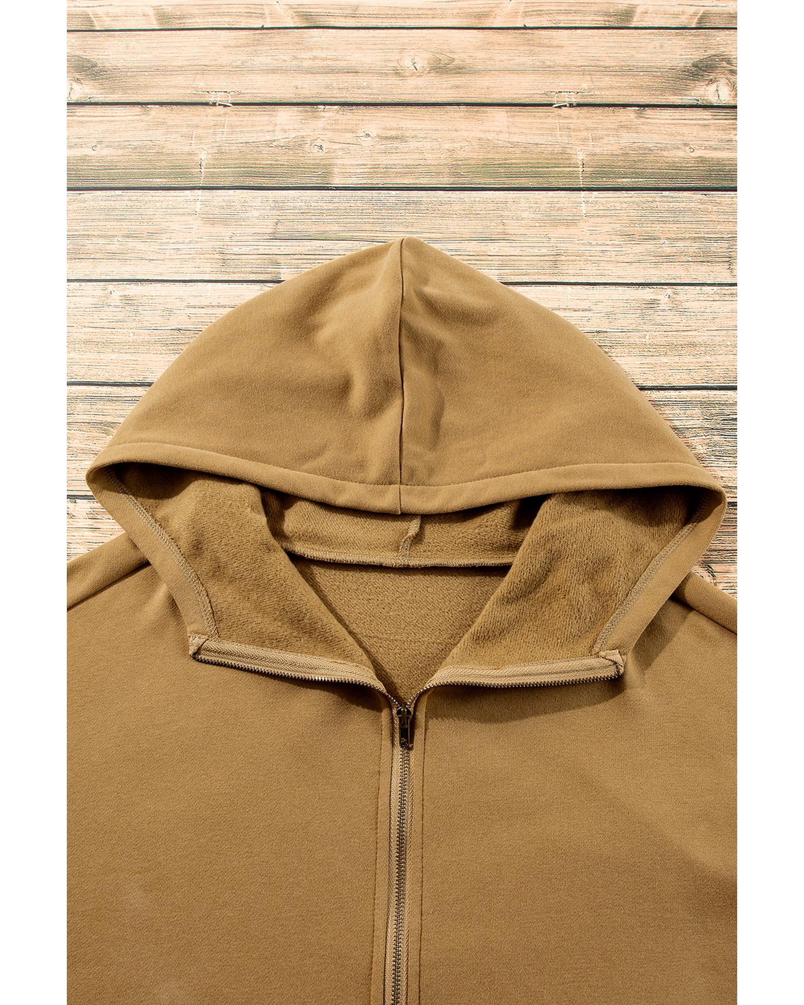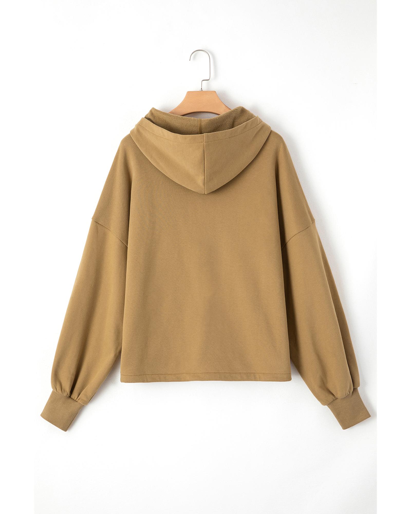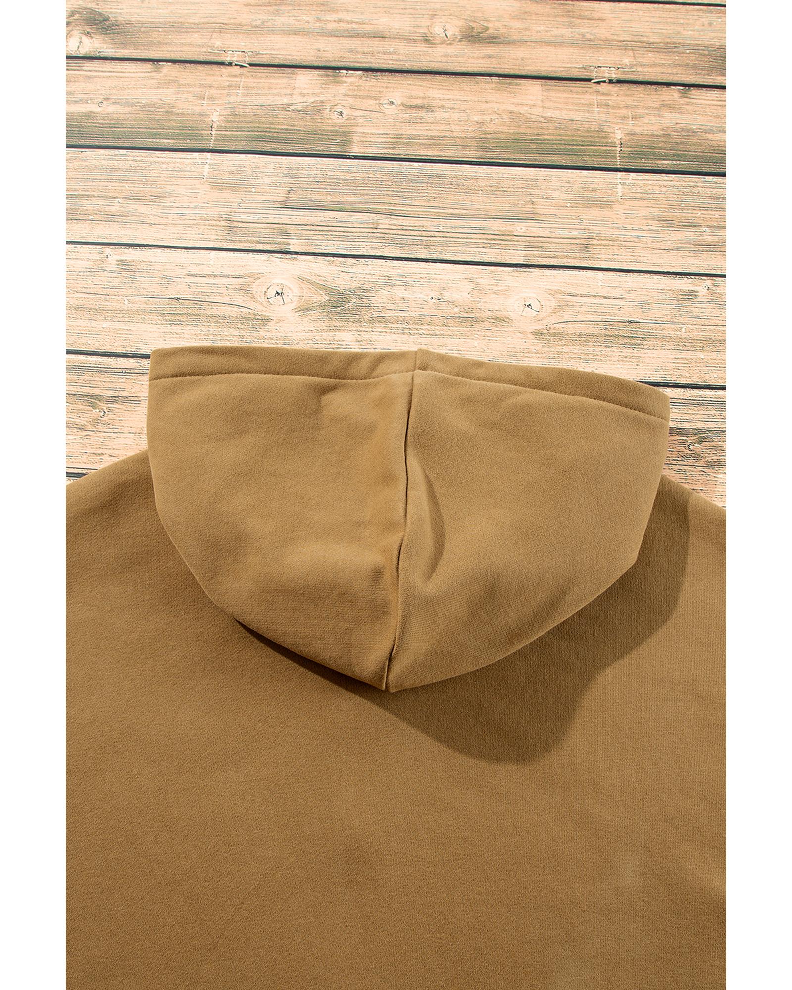 Brown Fleece Lined Half Zipper Kangaroo Pockets Loose Hoodie – XL