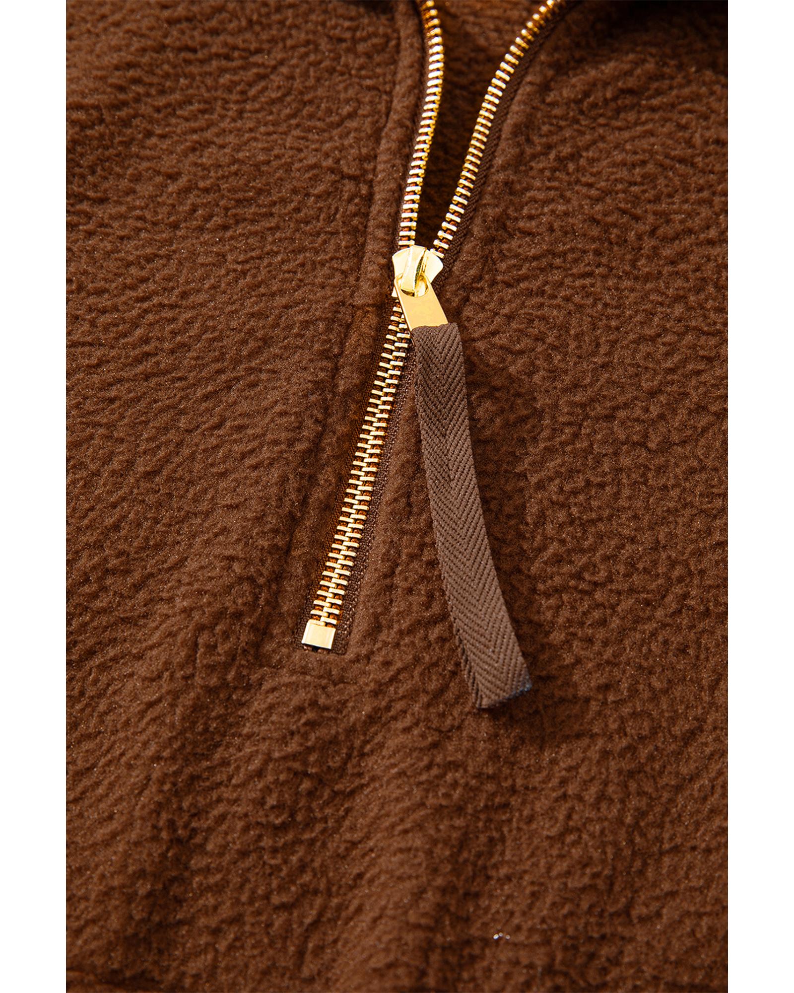 Brown Half Zip Fleece Pullover Sweatshirt – M