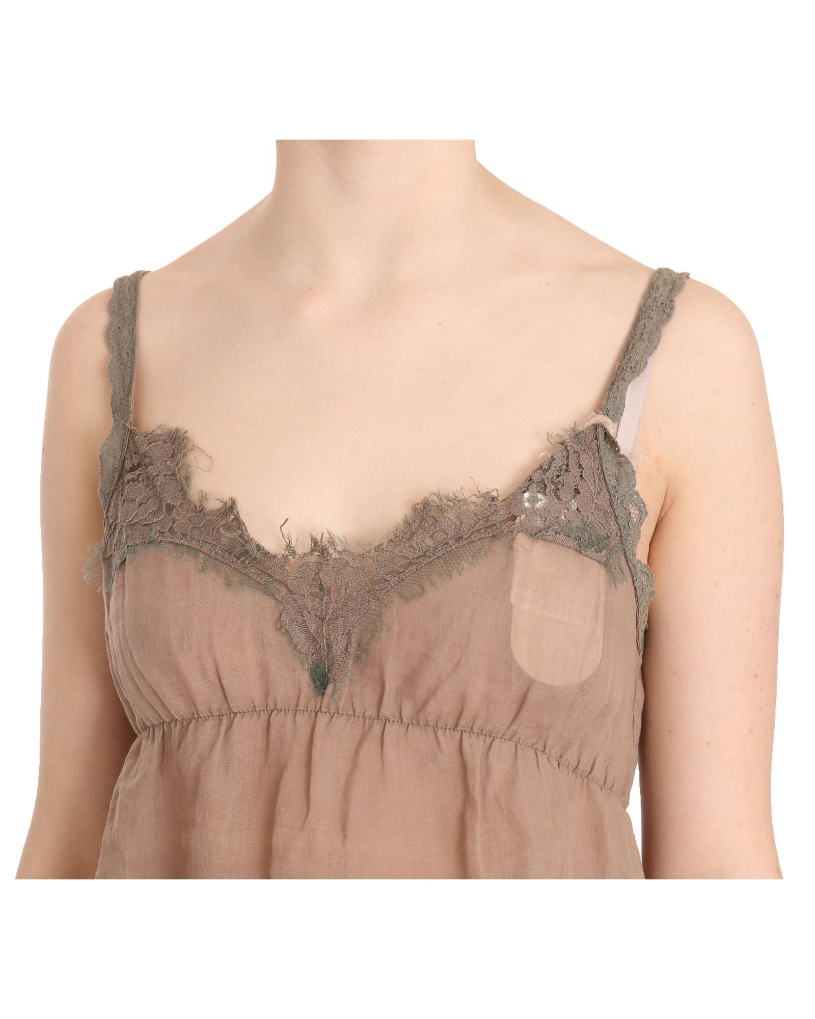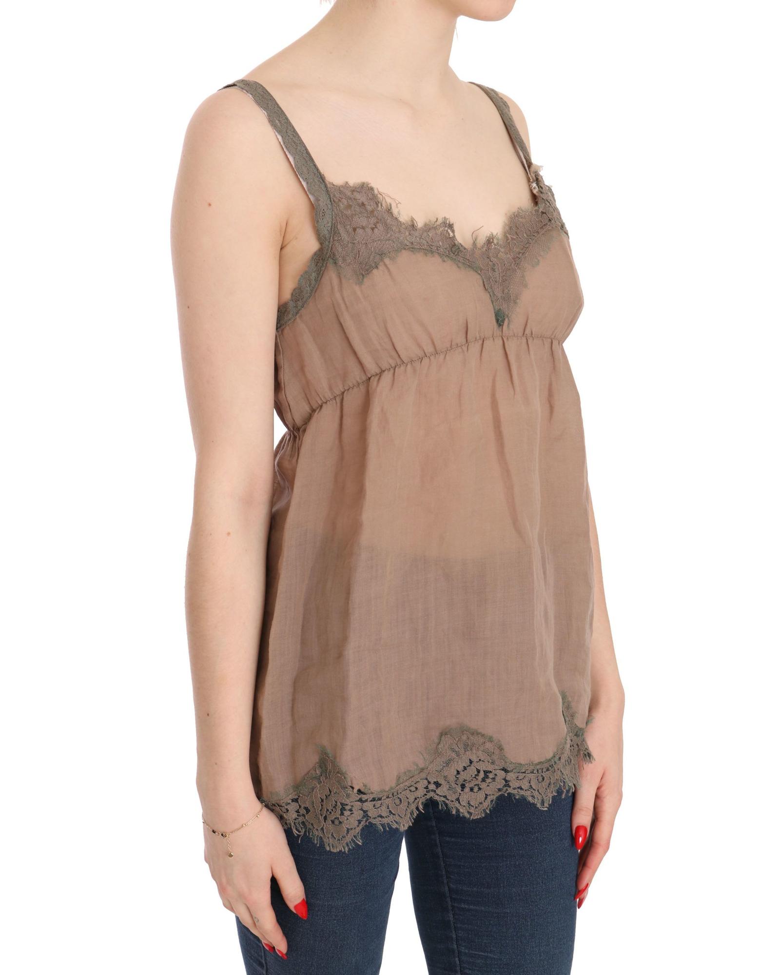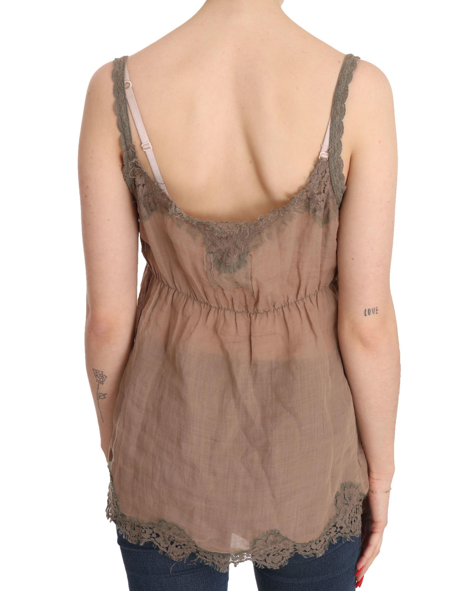 Brown Lace Spaghetti Strap Plunging Top Blouse 44 IT Women