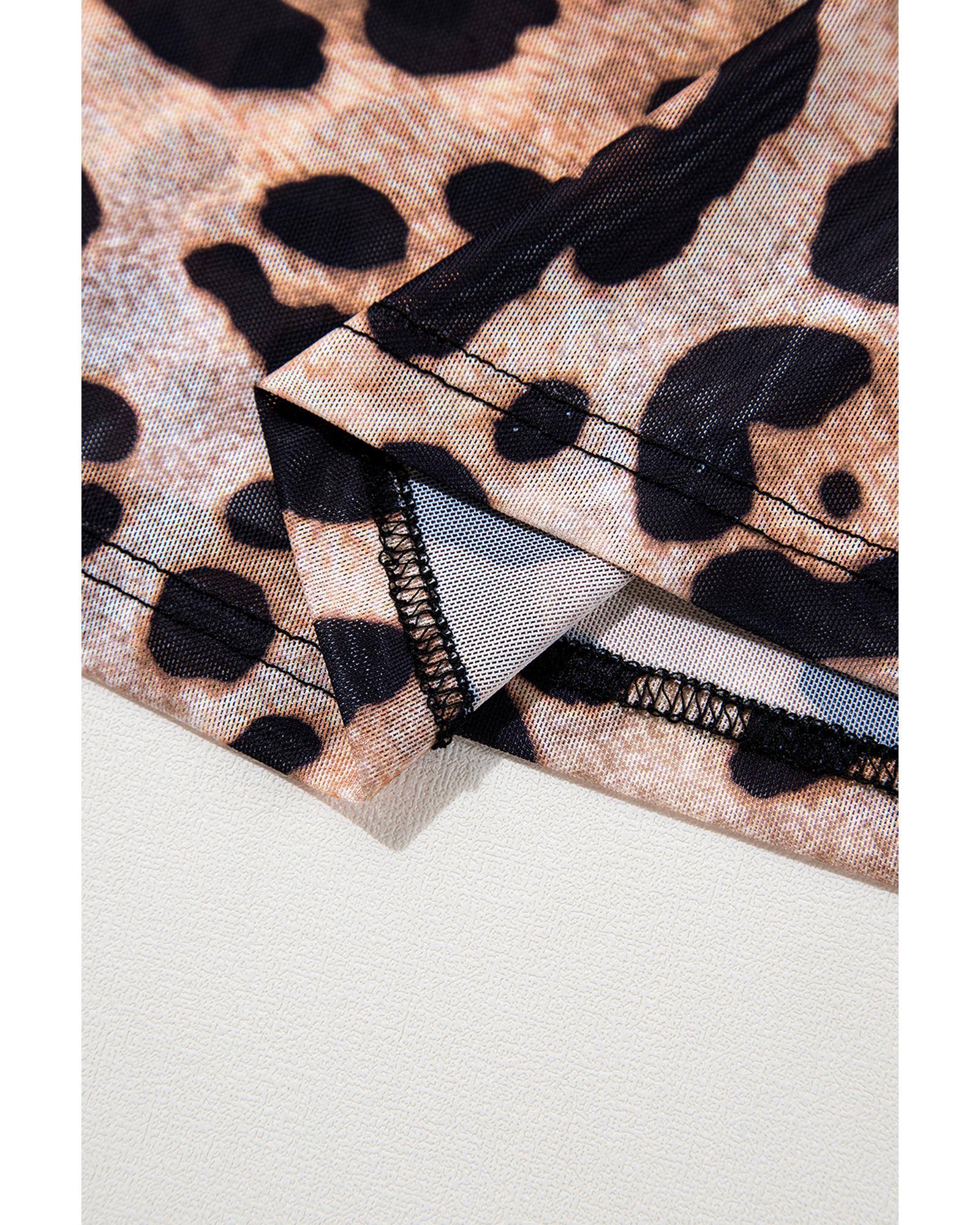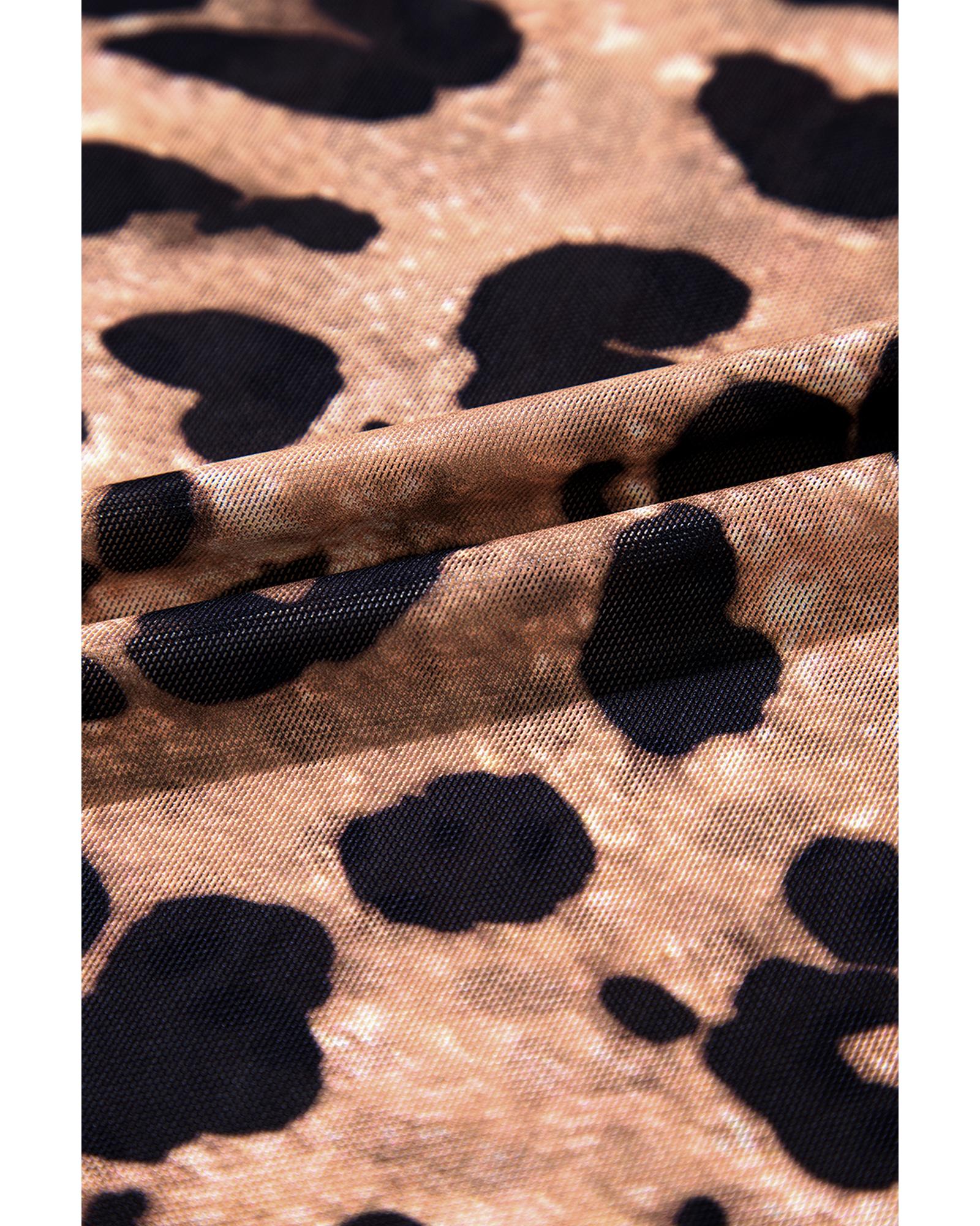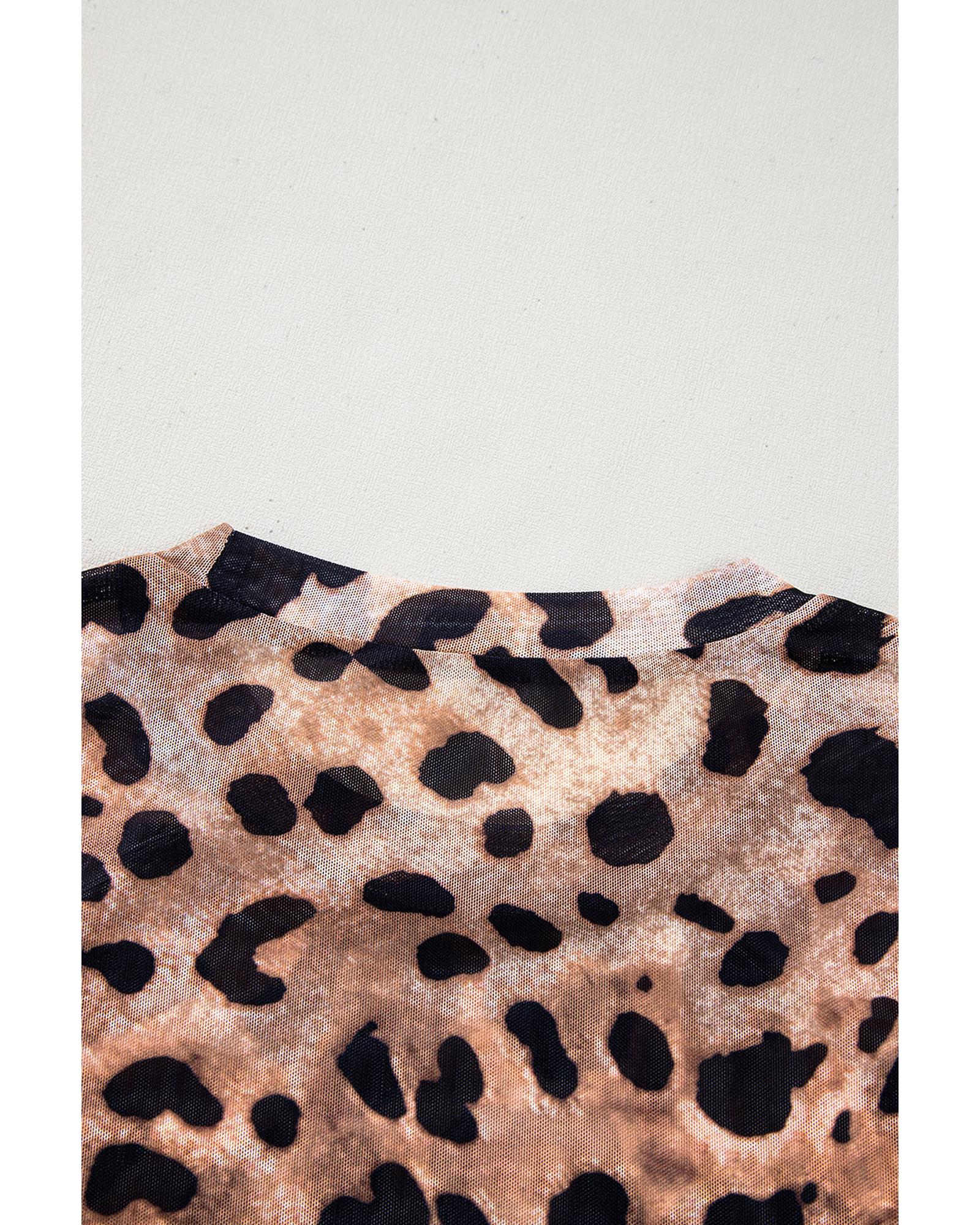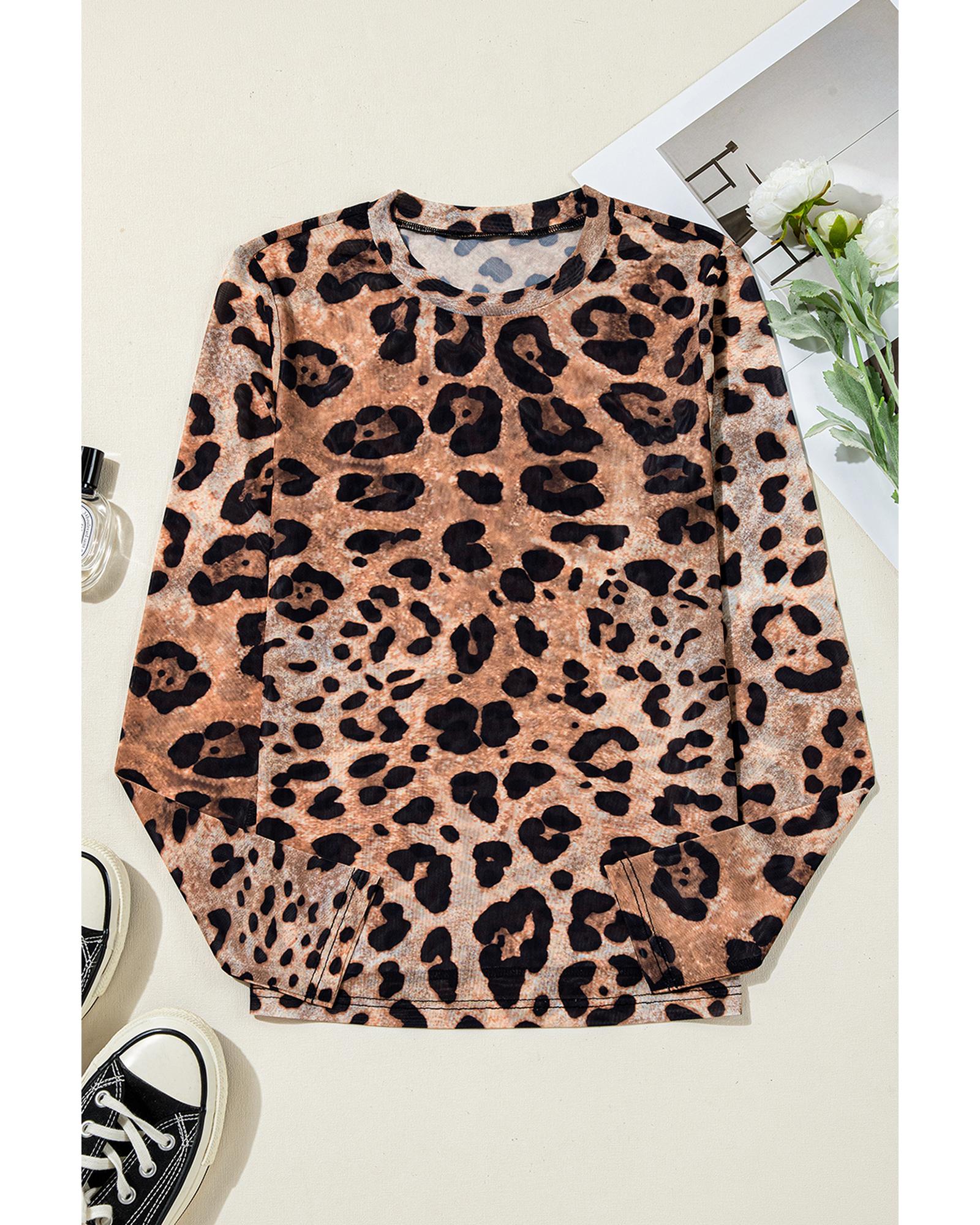 Brown Leopard Round Neck Long Sleeve Slim Top – XL