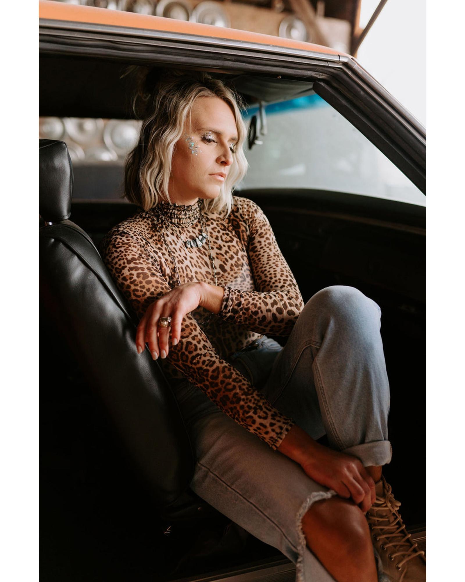 Brown Leopard Smocked Neck Mesh Long Sleeve Bodysuit – S