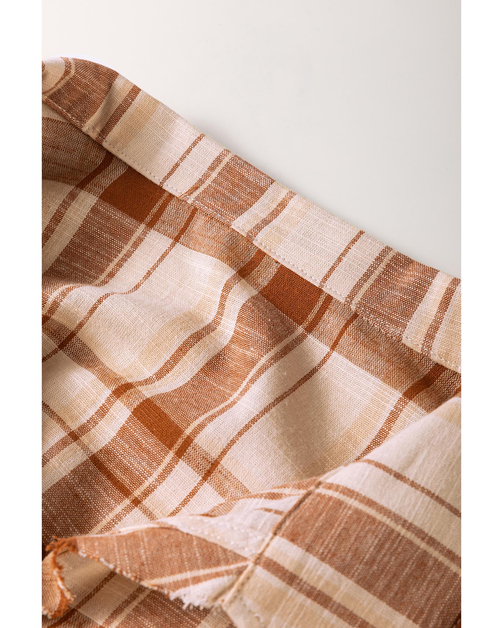 Brown Plaid Print Side Pockets Frilled Babydoll Mini Dress – S