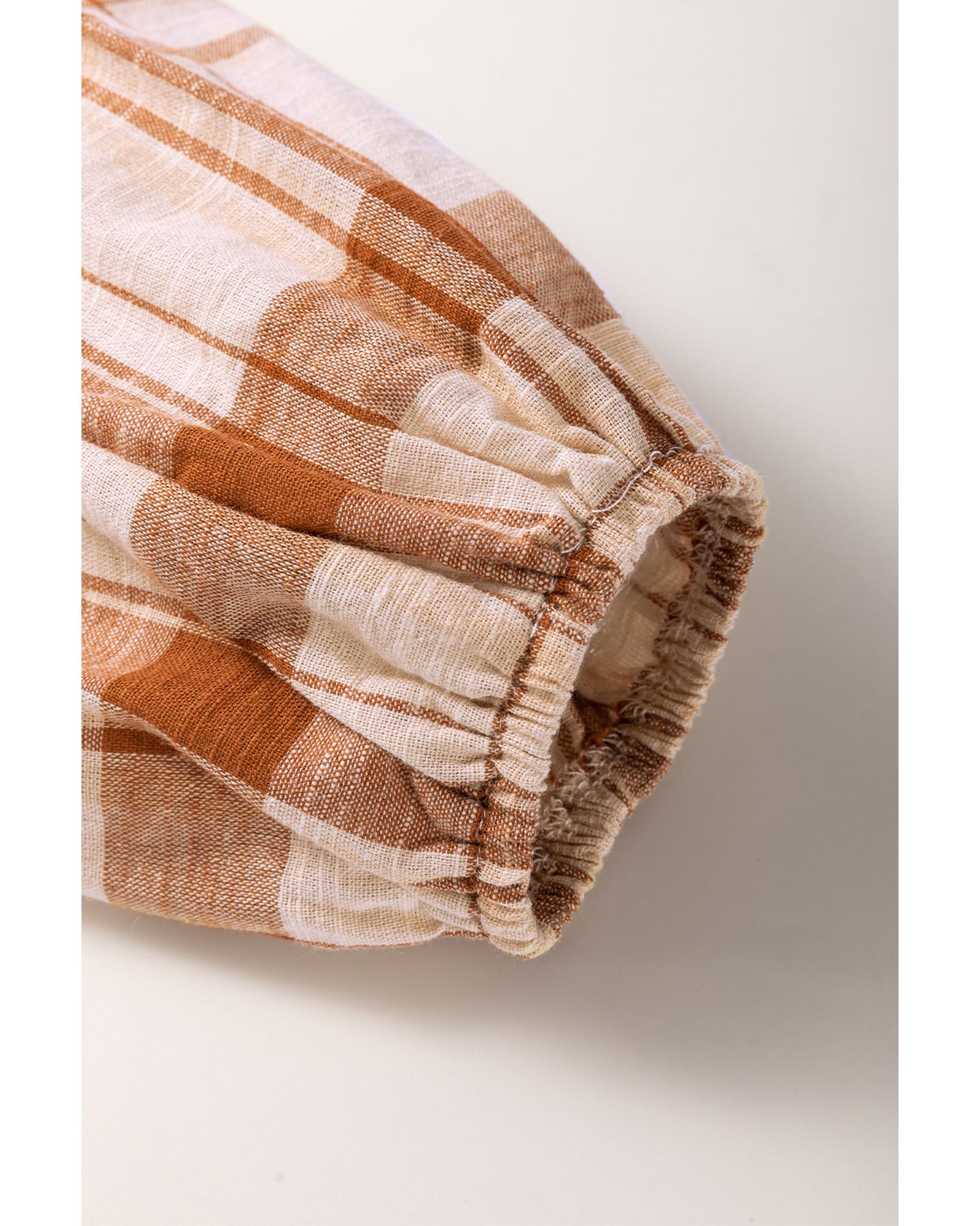 Brown Plaid Print Side Pockets Frilled Babydoll Mini Dress – XL