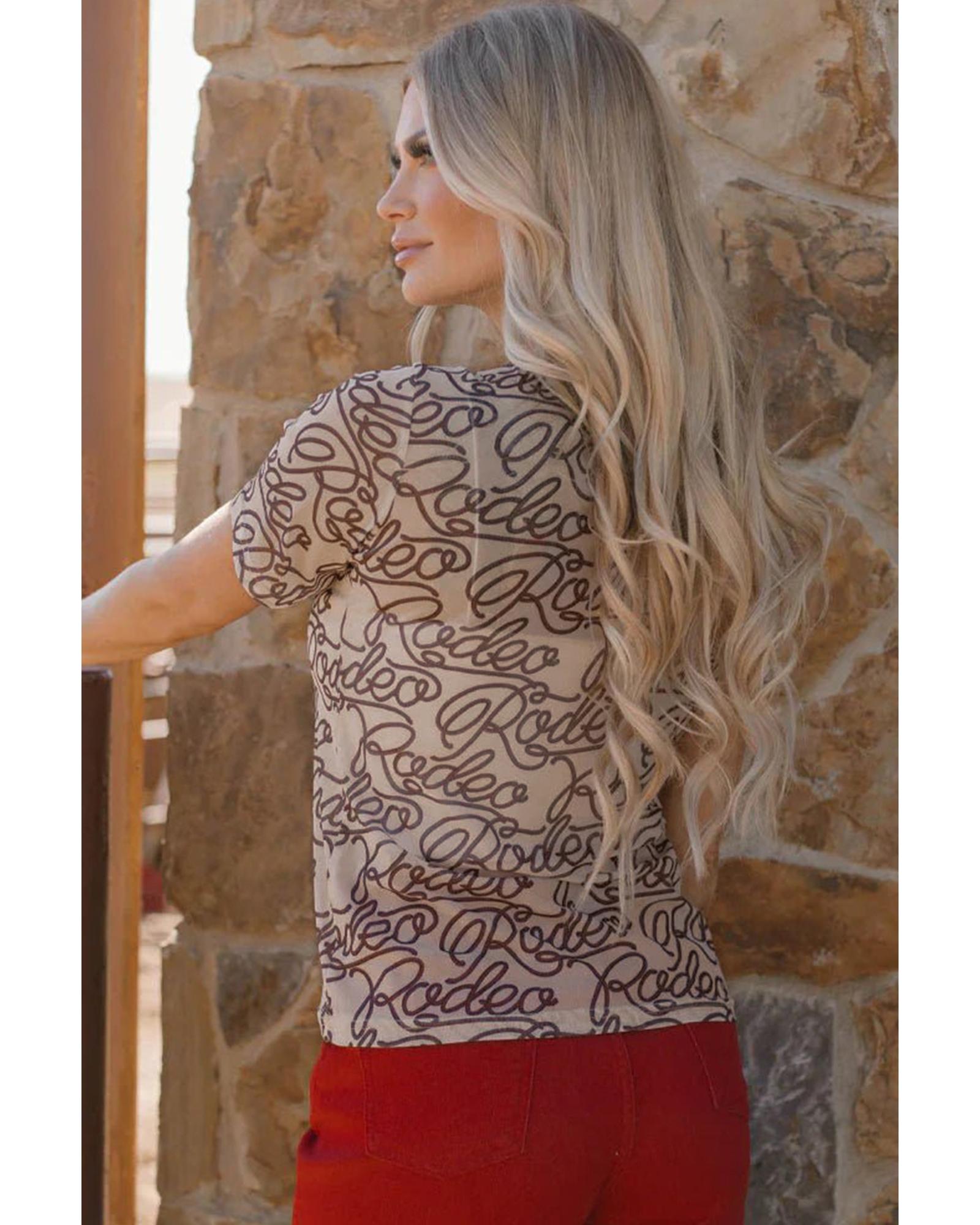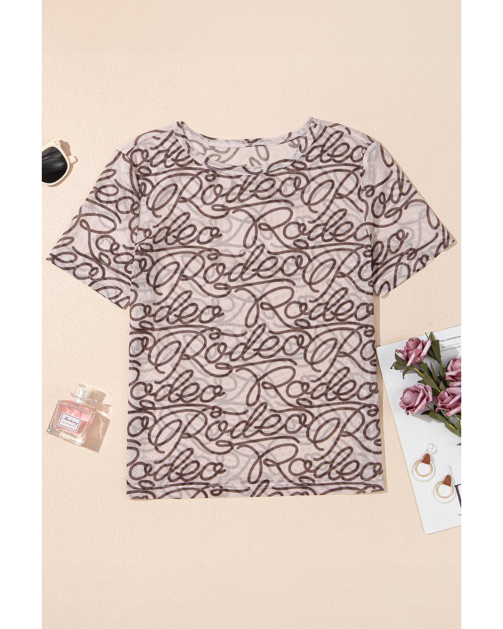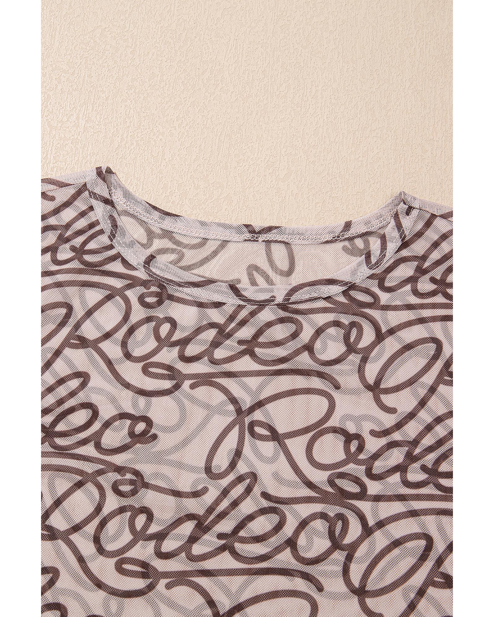 Brown Rodeo Print Round Neck Slim Fit Mesh T Shirt – L