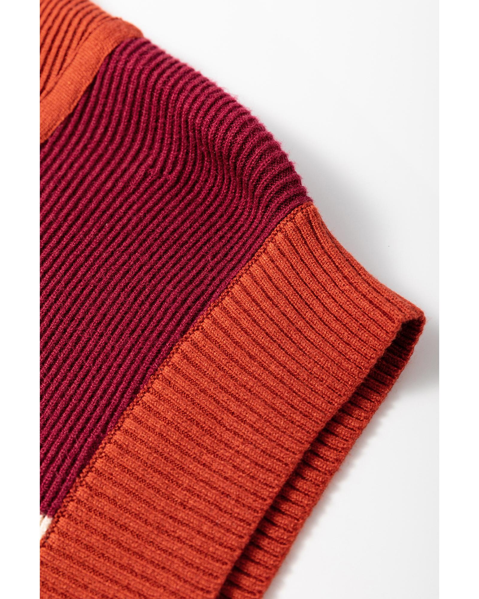 Brown Stripe Color Block Quarter Zip Collar Short Sleeve Sweater Dress – M
