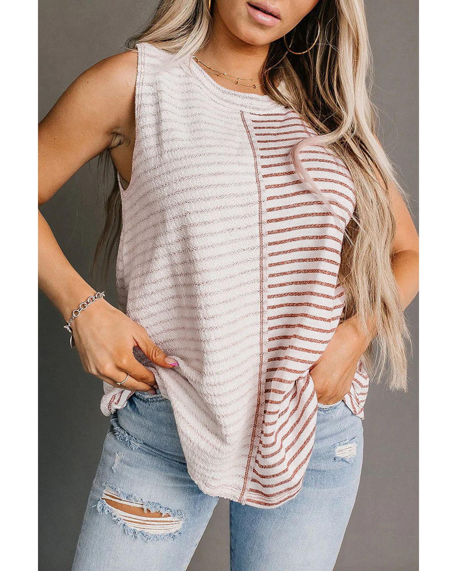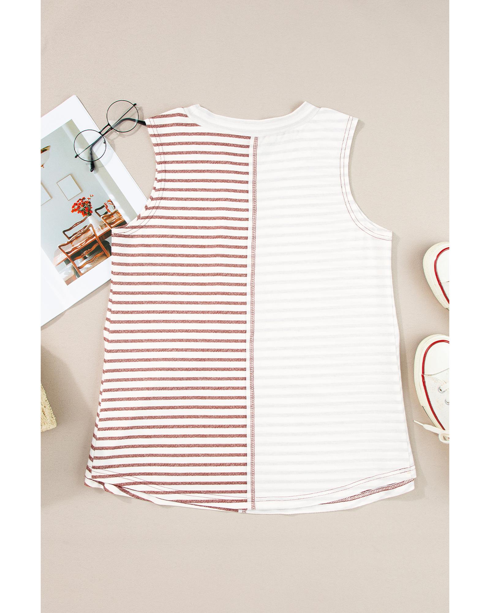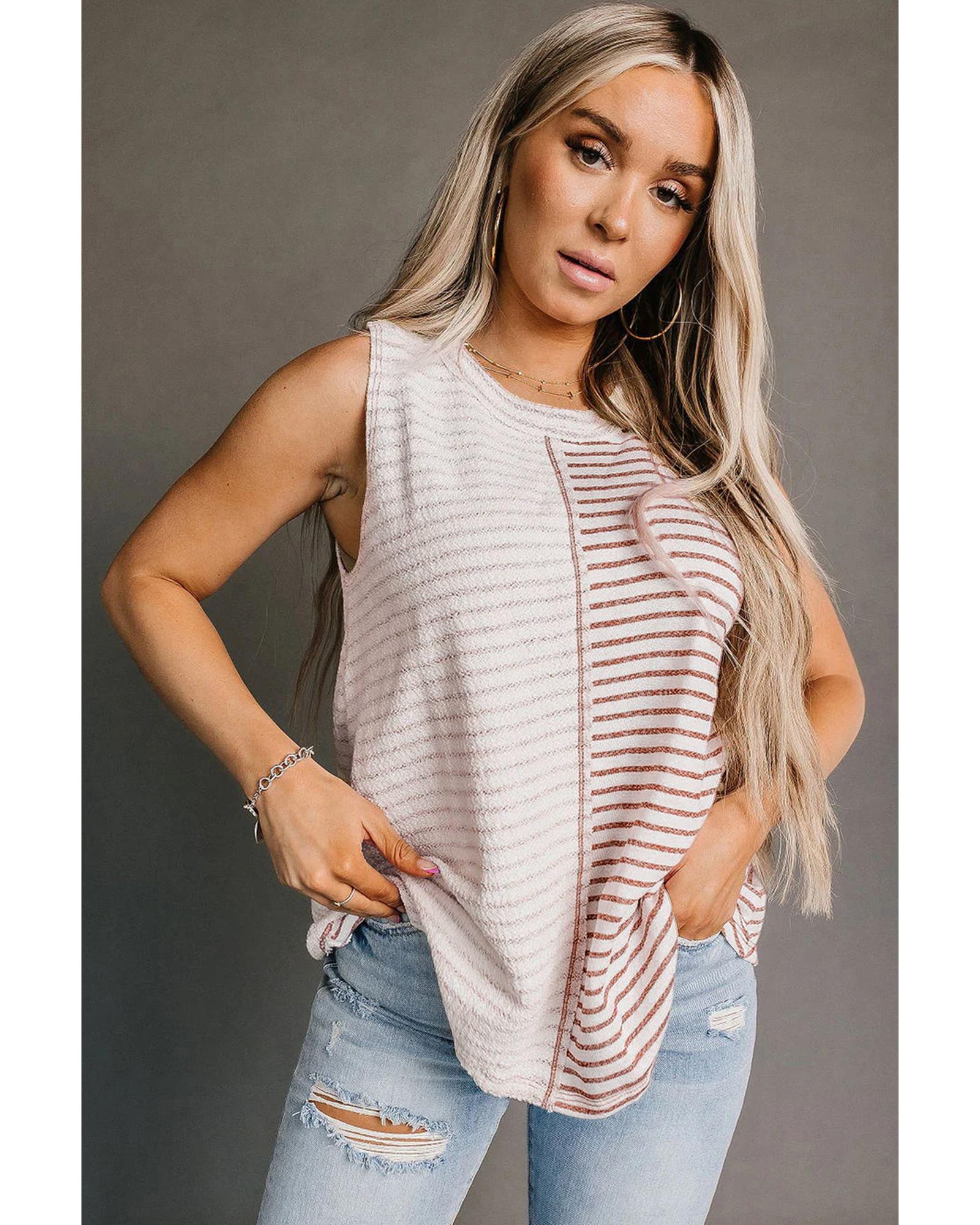 Light Pink Vintage Nashville Printed Patchwork Tank Top - S