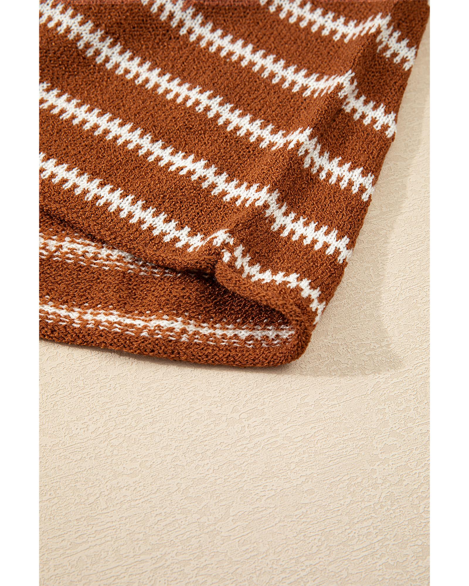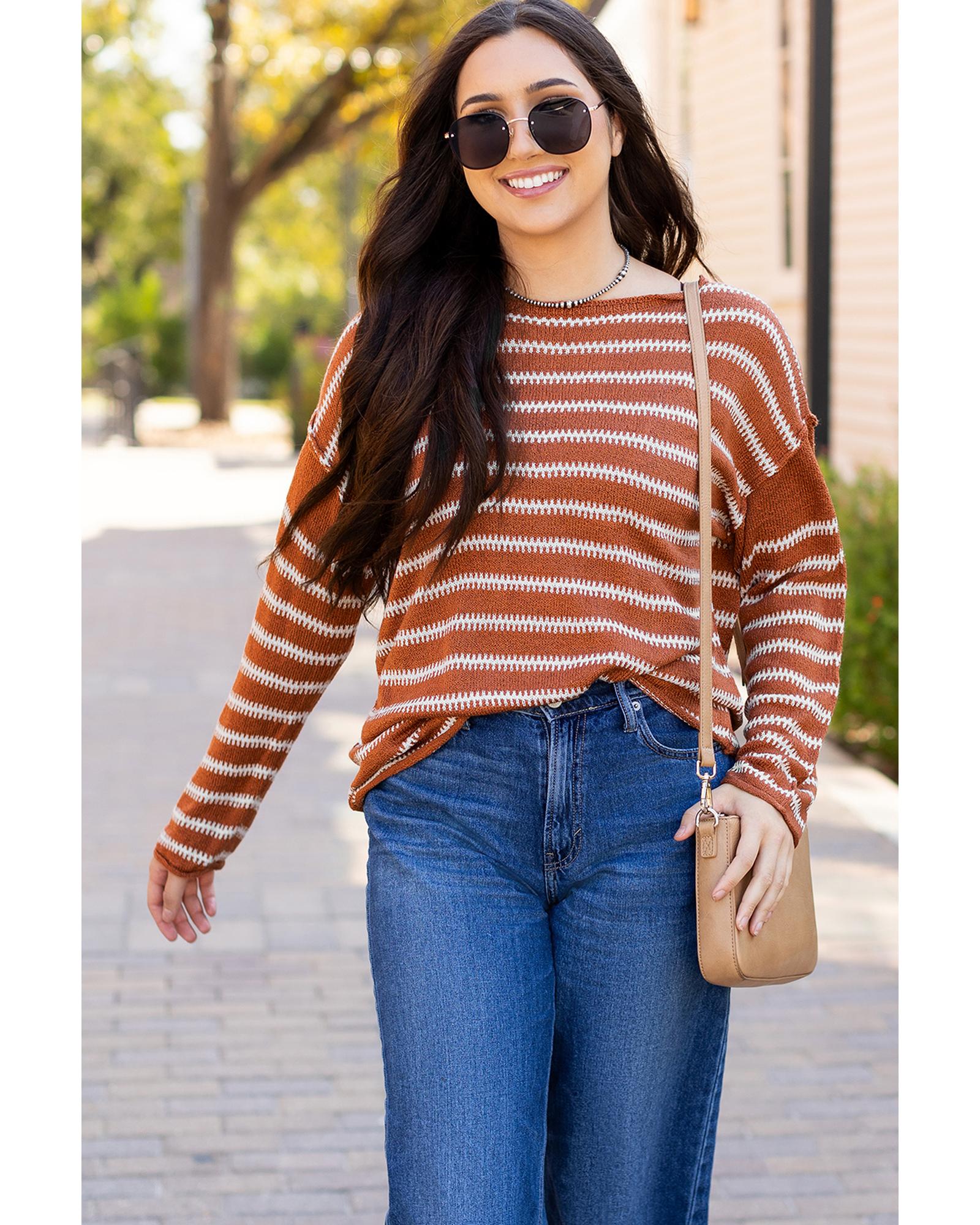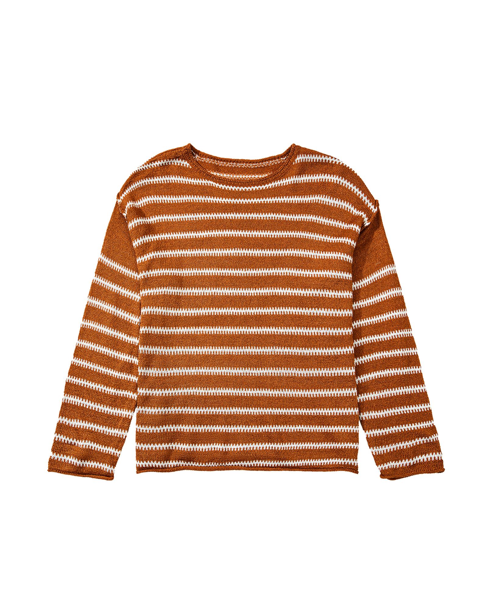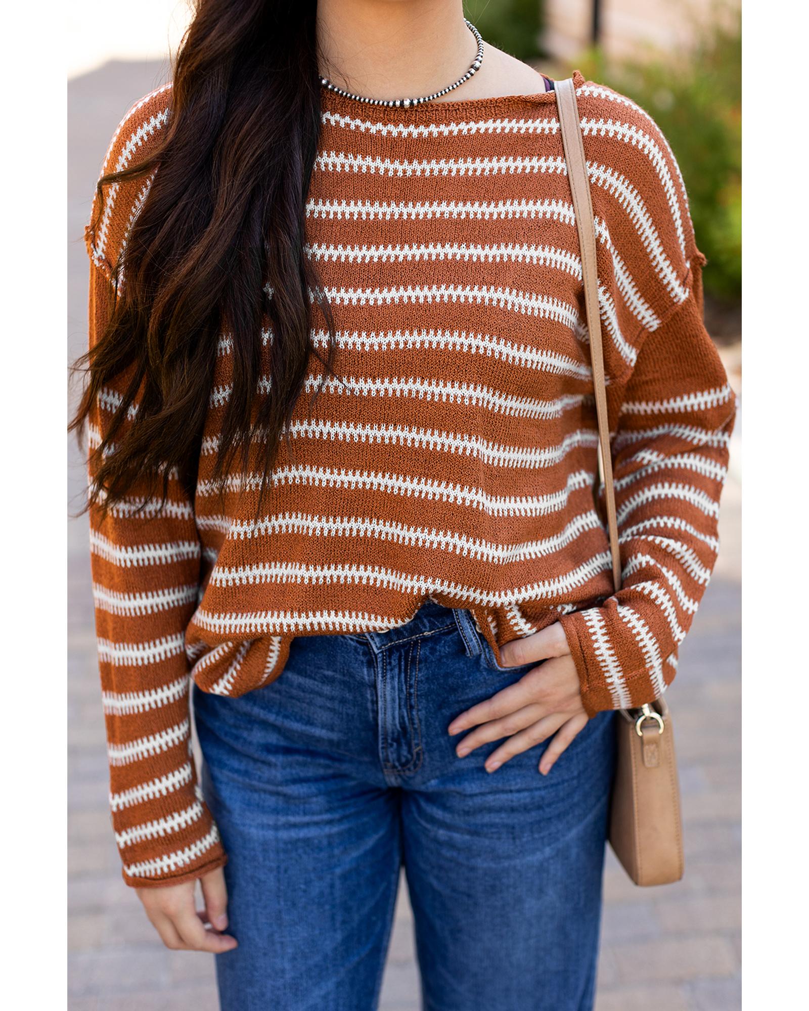 - Brown Stripe Drop Shoulder Casual Sweater