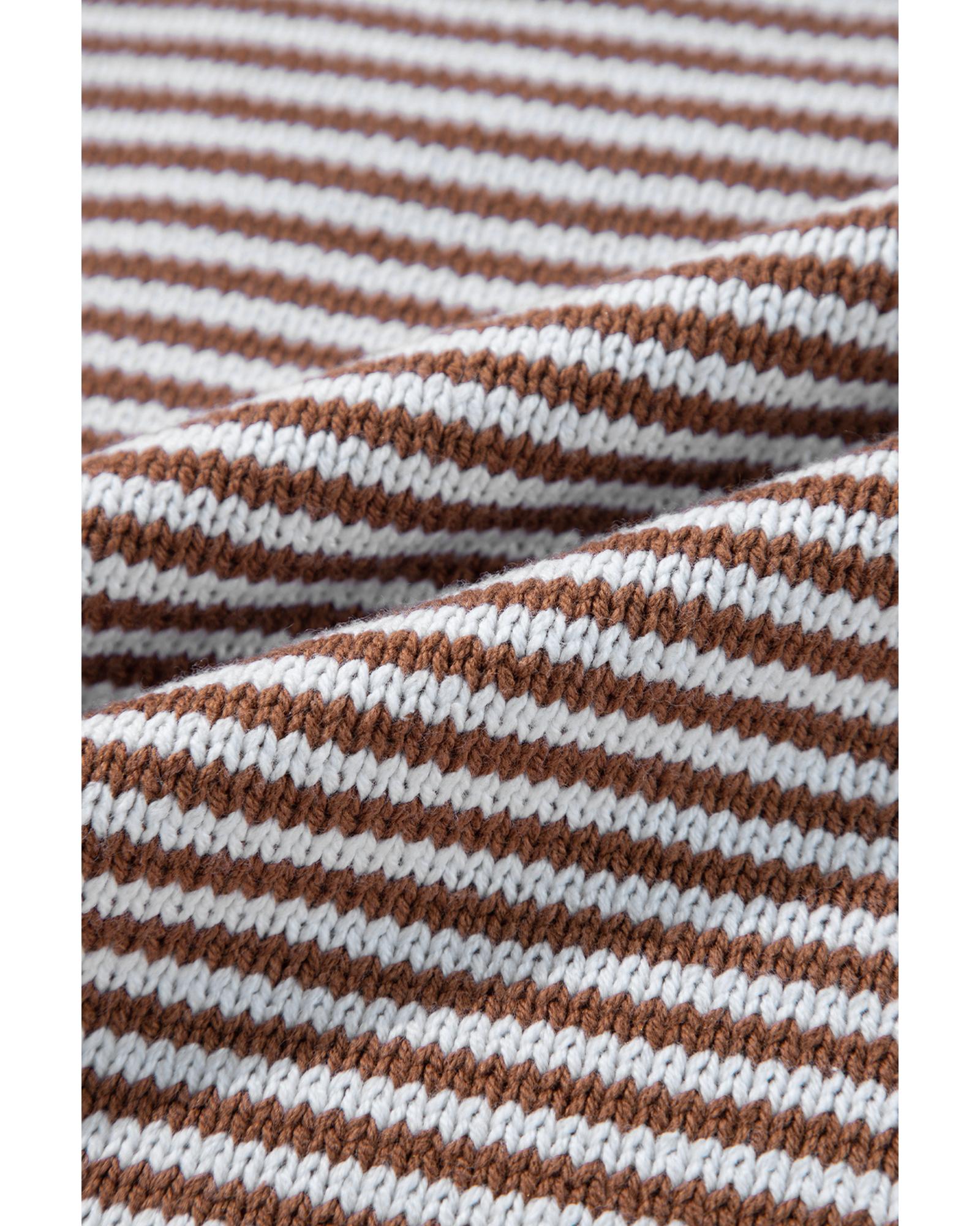 - Brown Stripe Geometric Textured Drop Shoulder Sweater