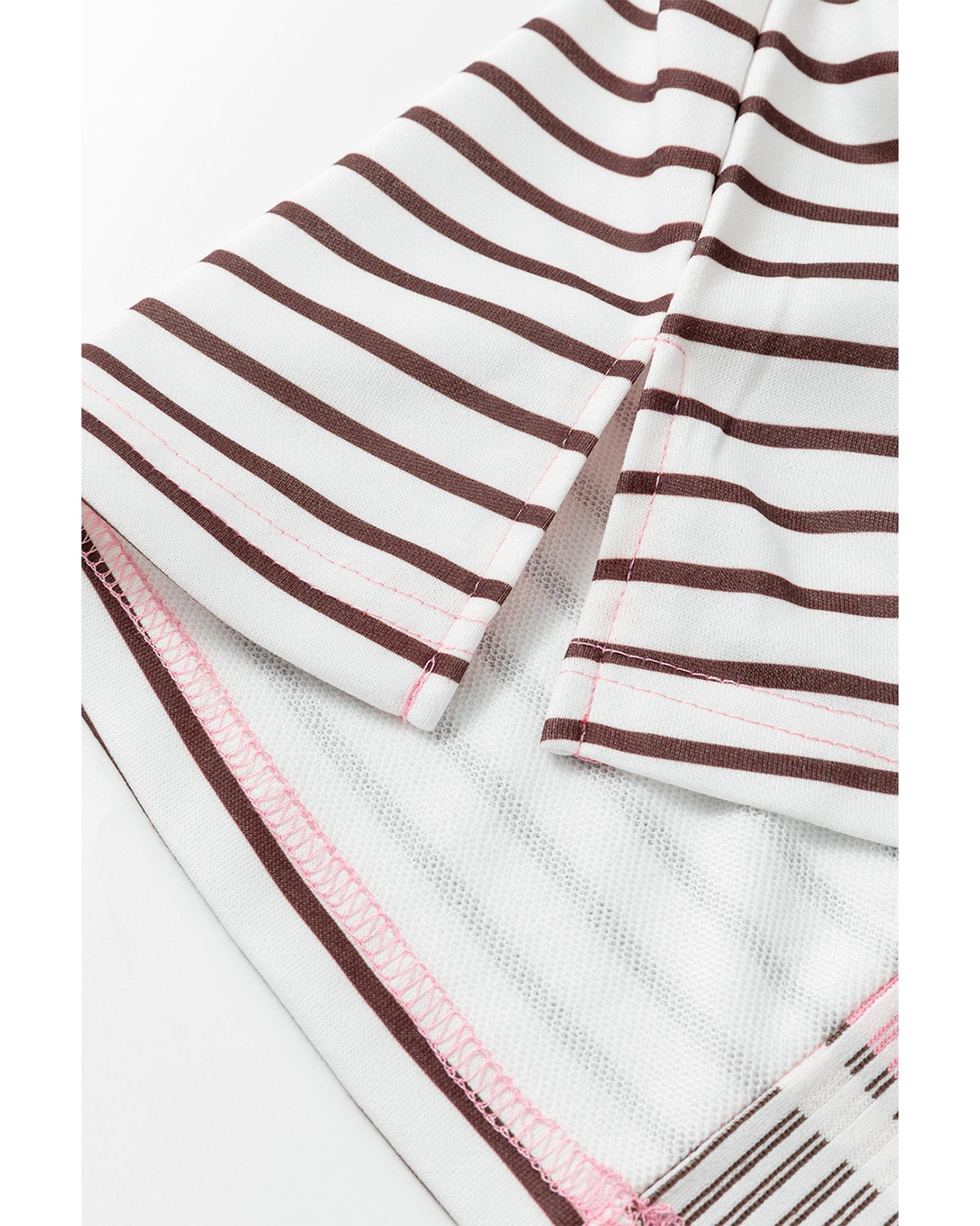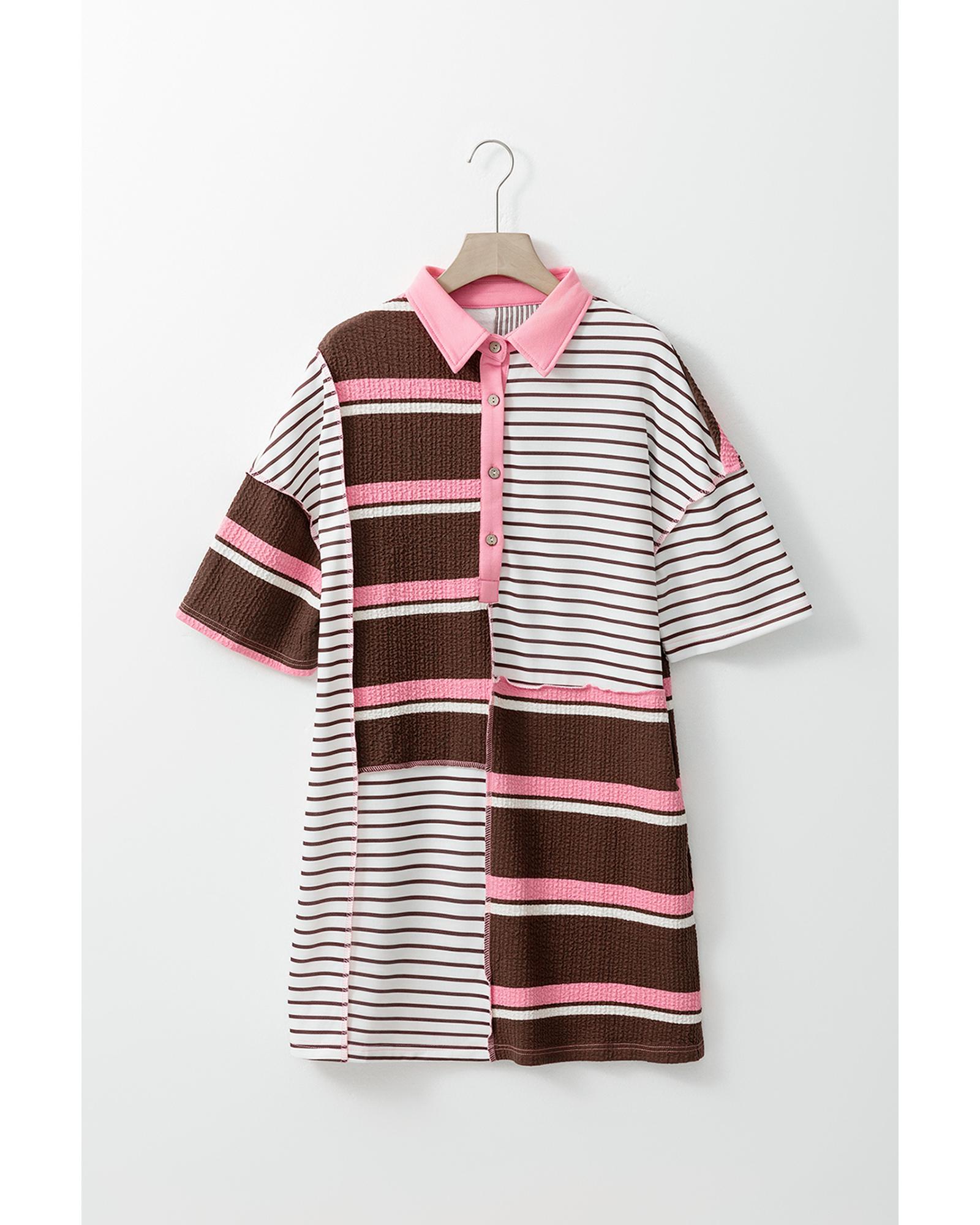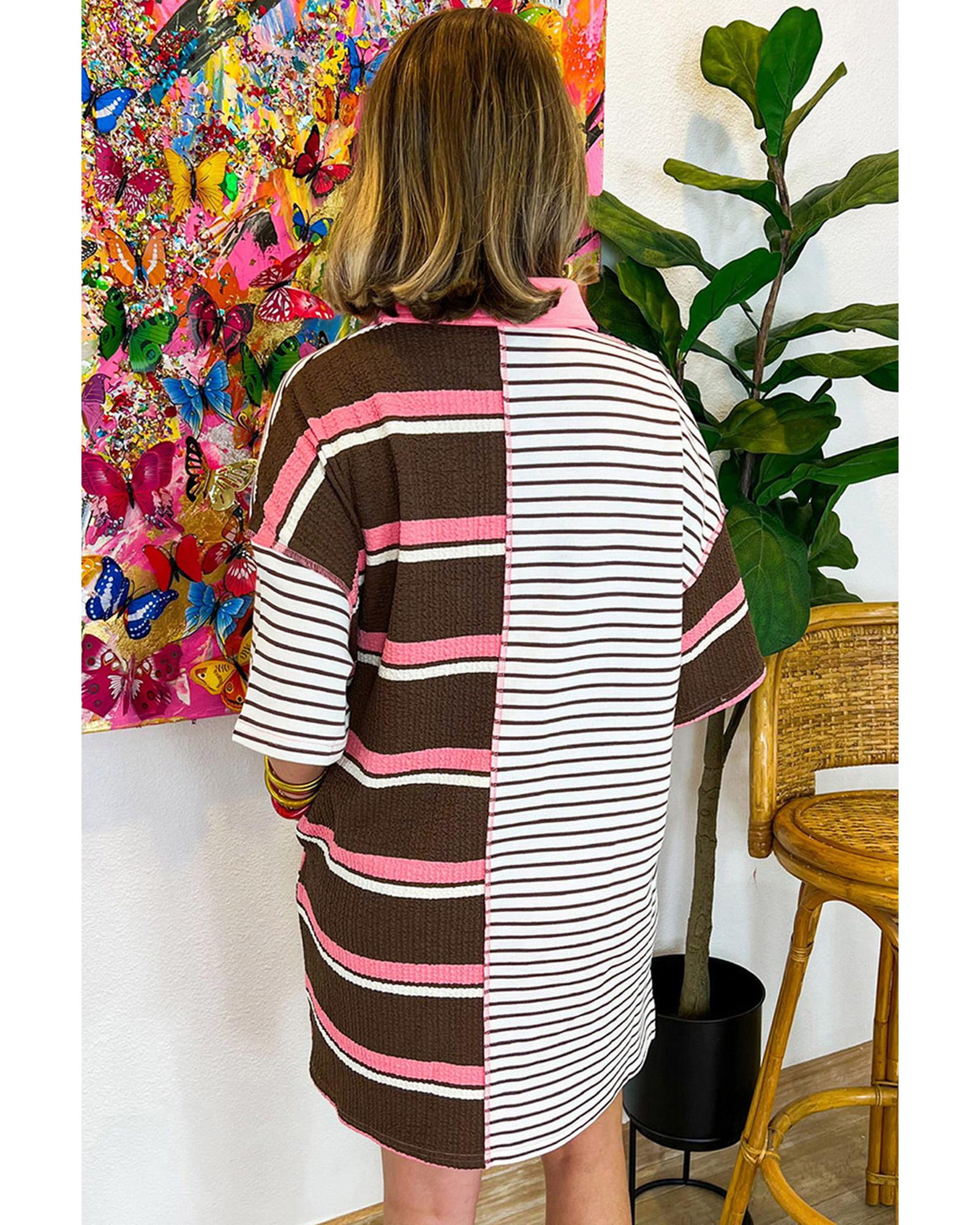 Brown Stripe Striped Textured Patchwork Buttoned T Shirt Dress – M