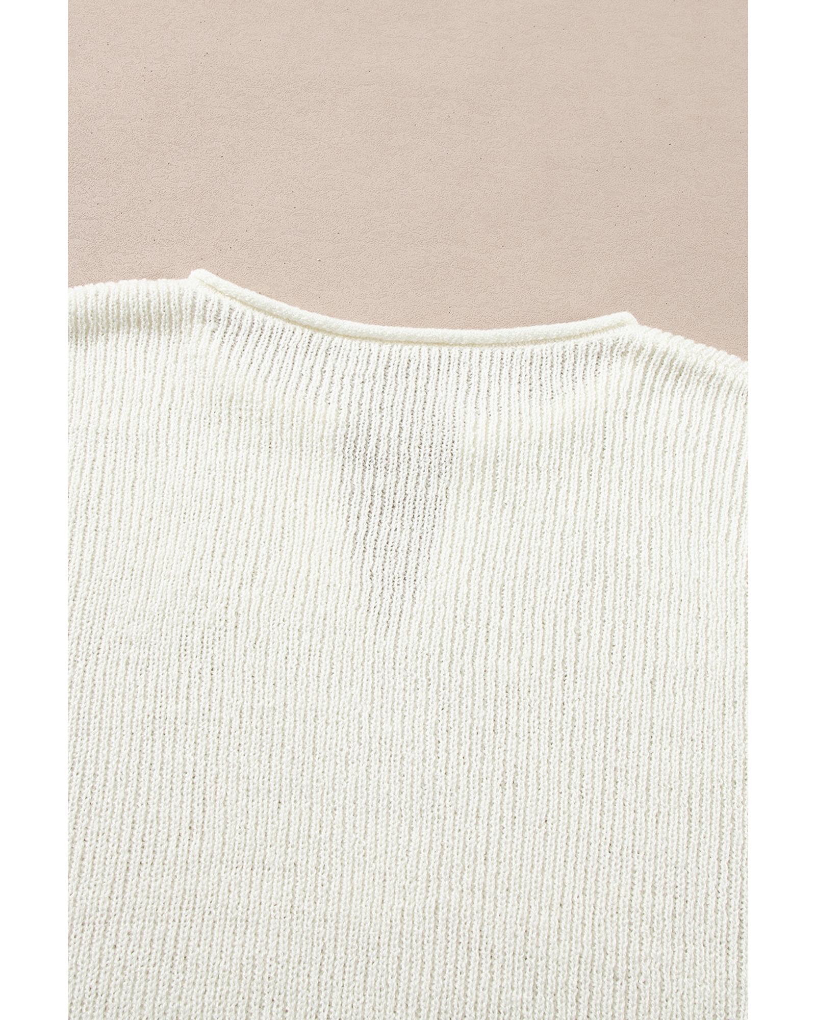 - Brown Striped Accent Notched V Neck Cropped Sweater T Shirt