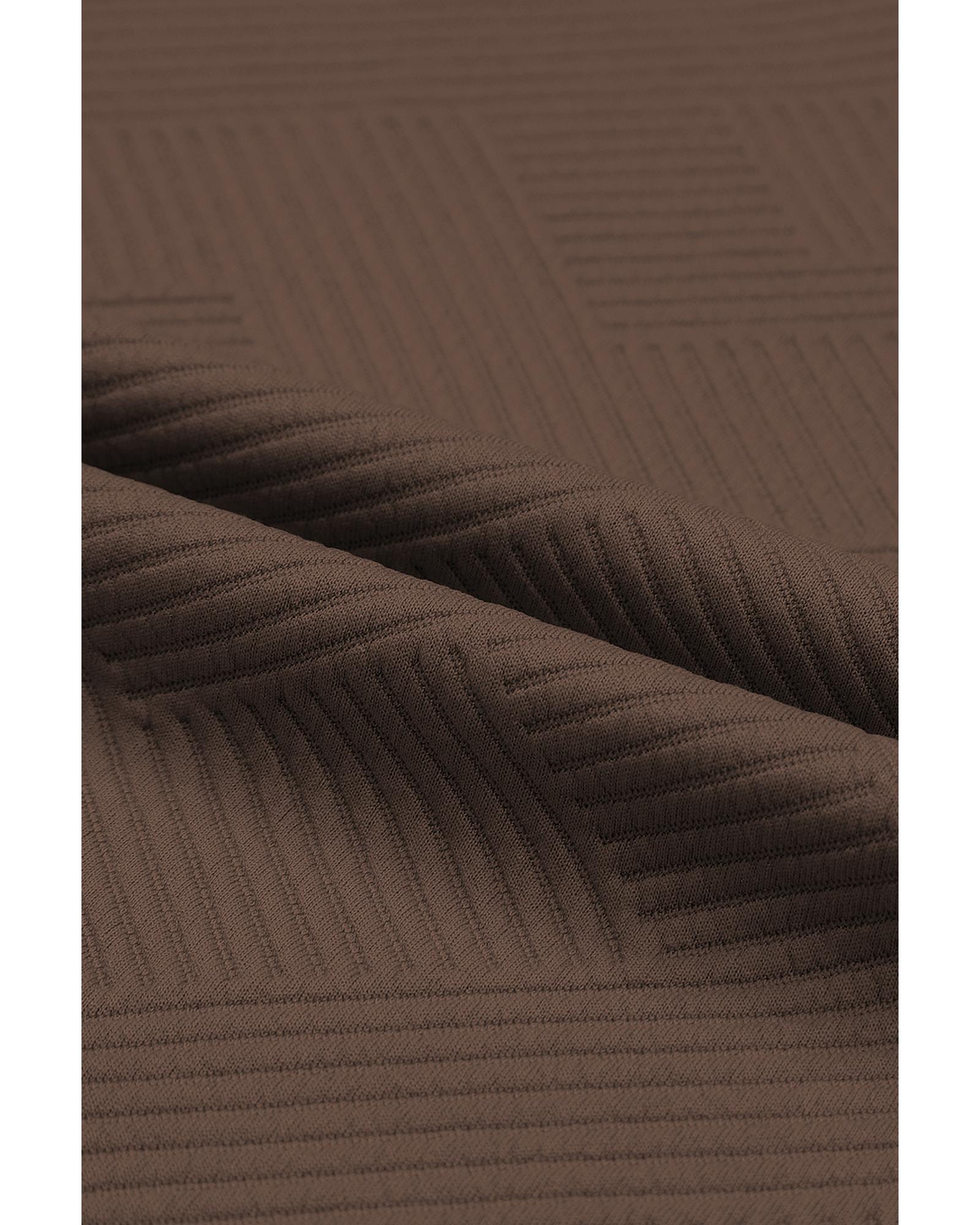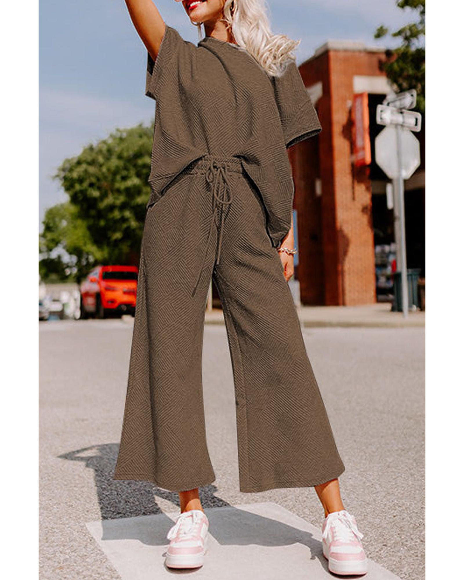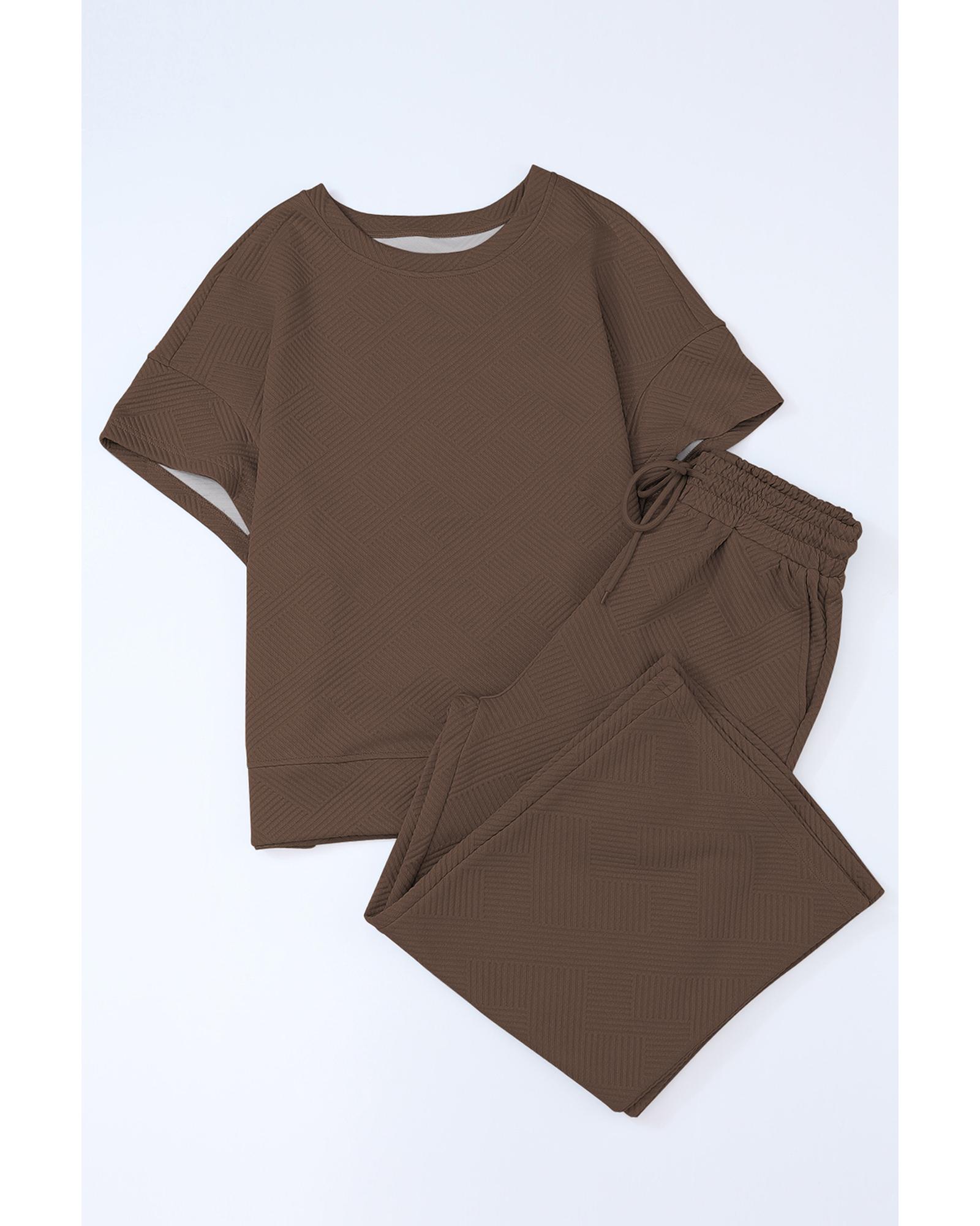 Brown Textured Loose Fit T Shirt and Drawstring Pants Set – M
