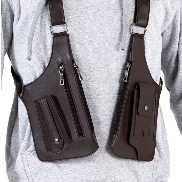 Brown Urban Tactical Anti-Theft Shoulder Holster Bag – Secure Multi-Pocket Chest Rig for Men