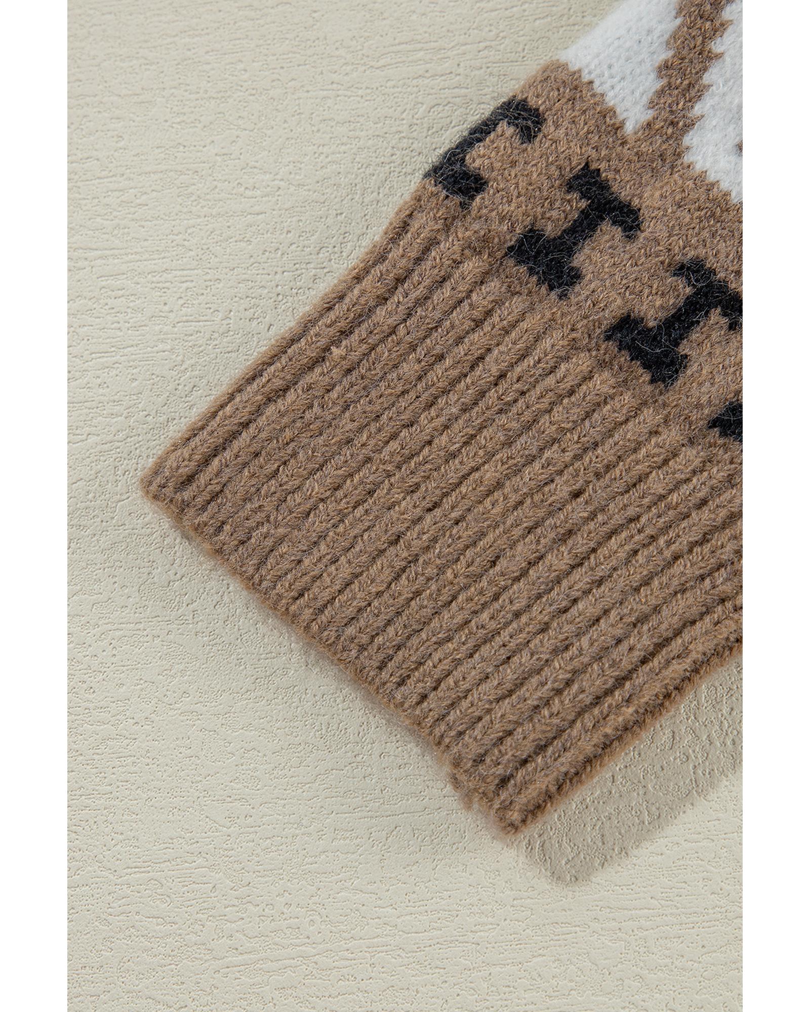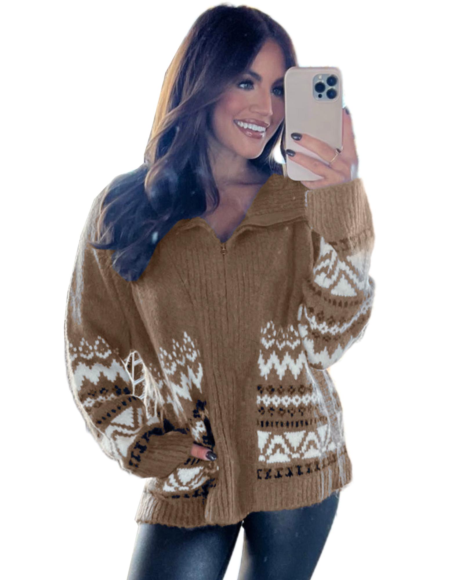 Brown Western Printed Ribbed Trim Collared Zip up Cardigan – XL