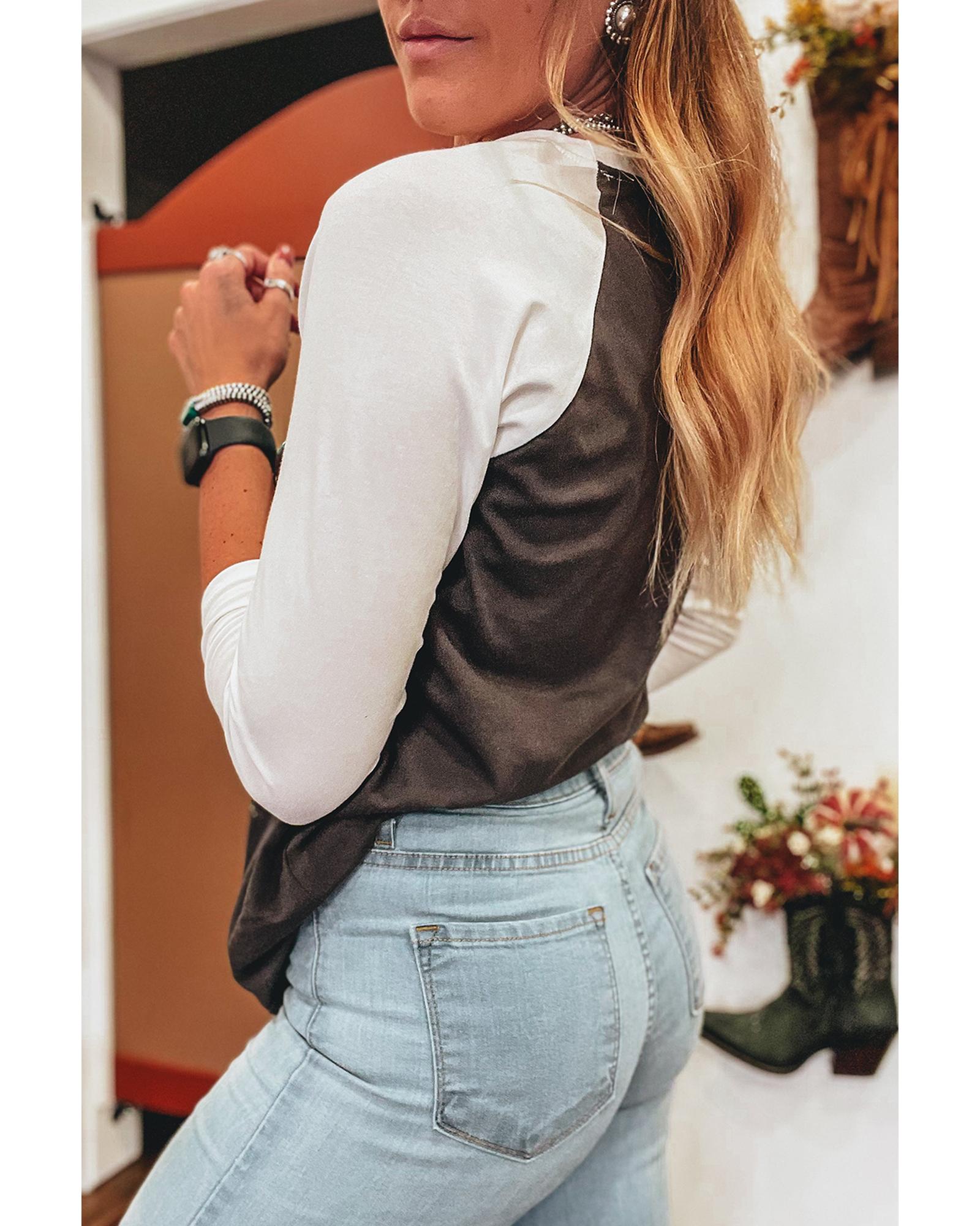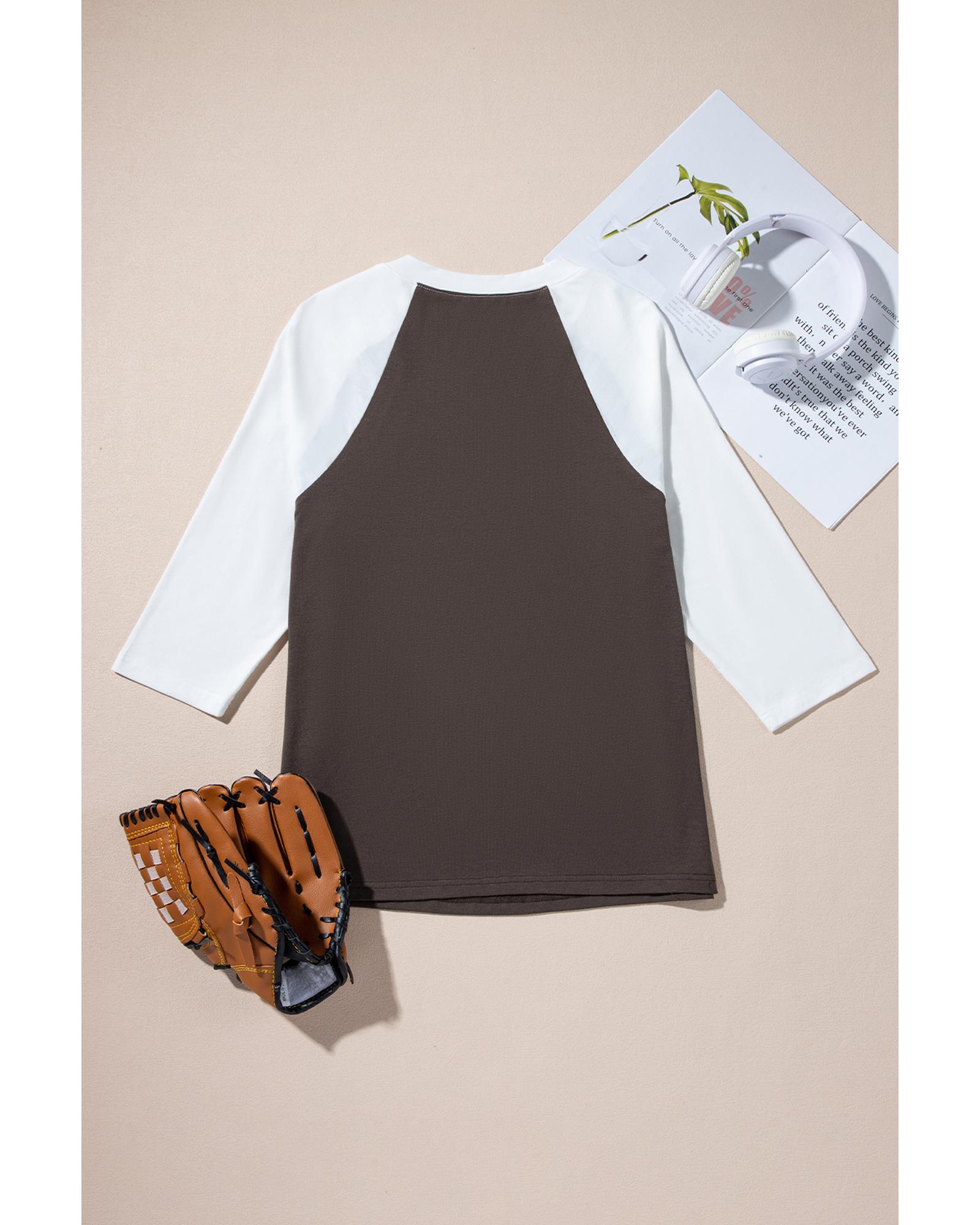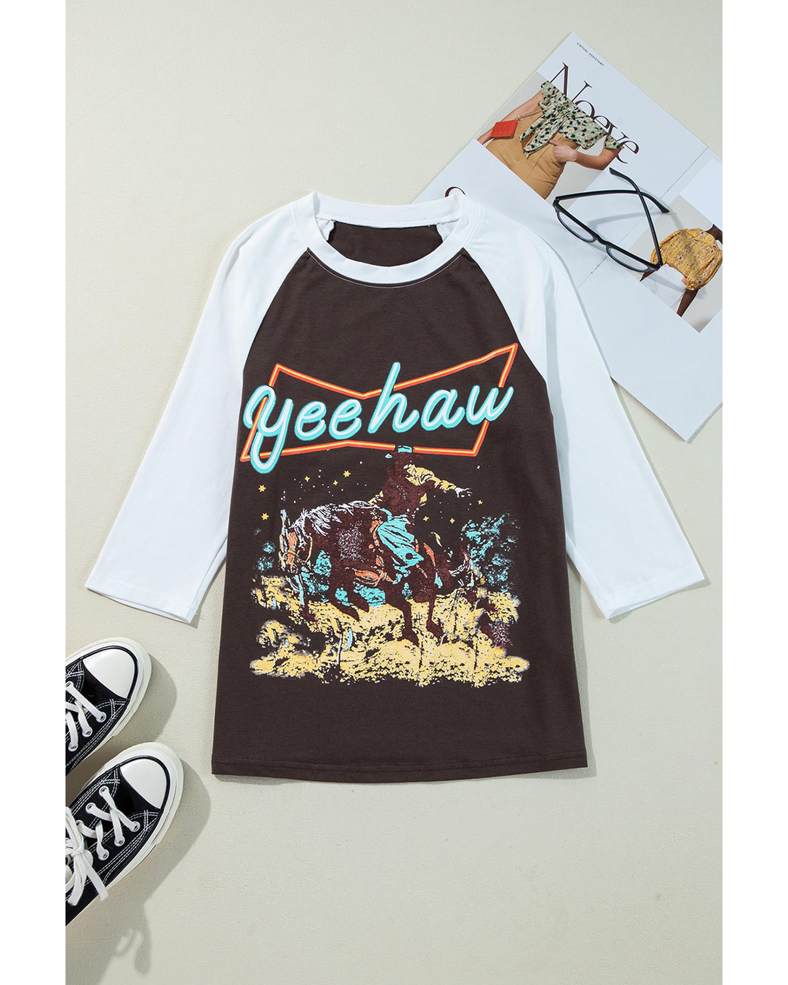 Brown Western Yeehaw Graphic Vintage Raglan Long Sleeve Top – L