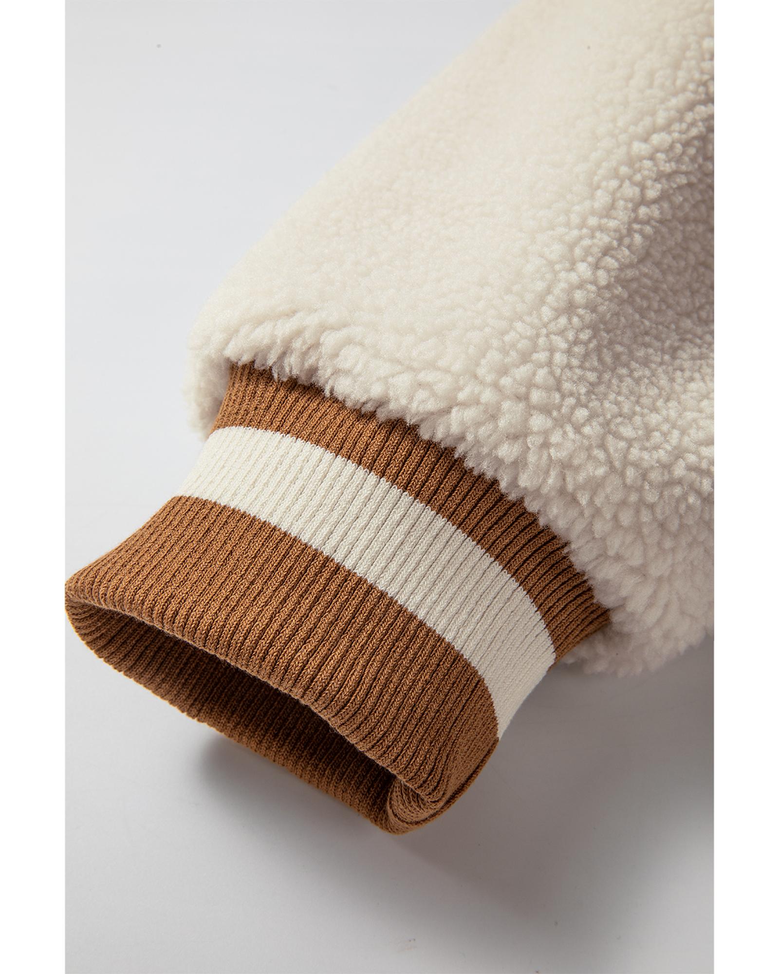 - Buckskin Corduroy Fleece Patchwork Buttoned Bomber Jacket