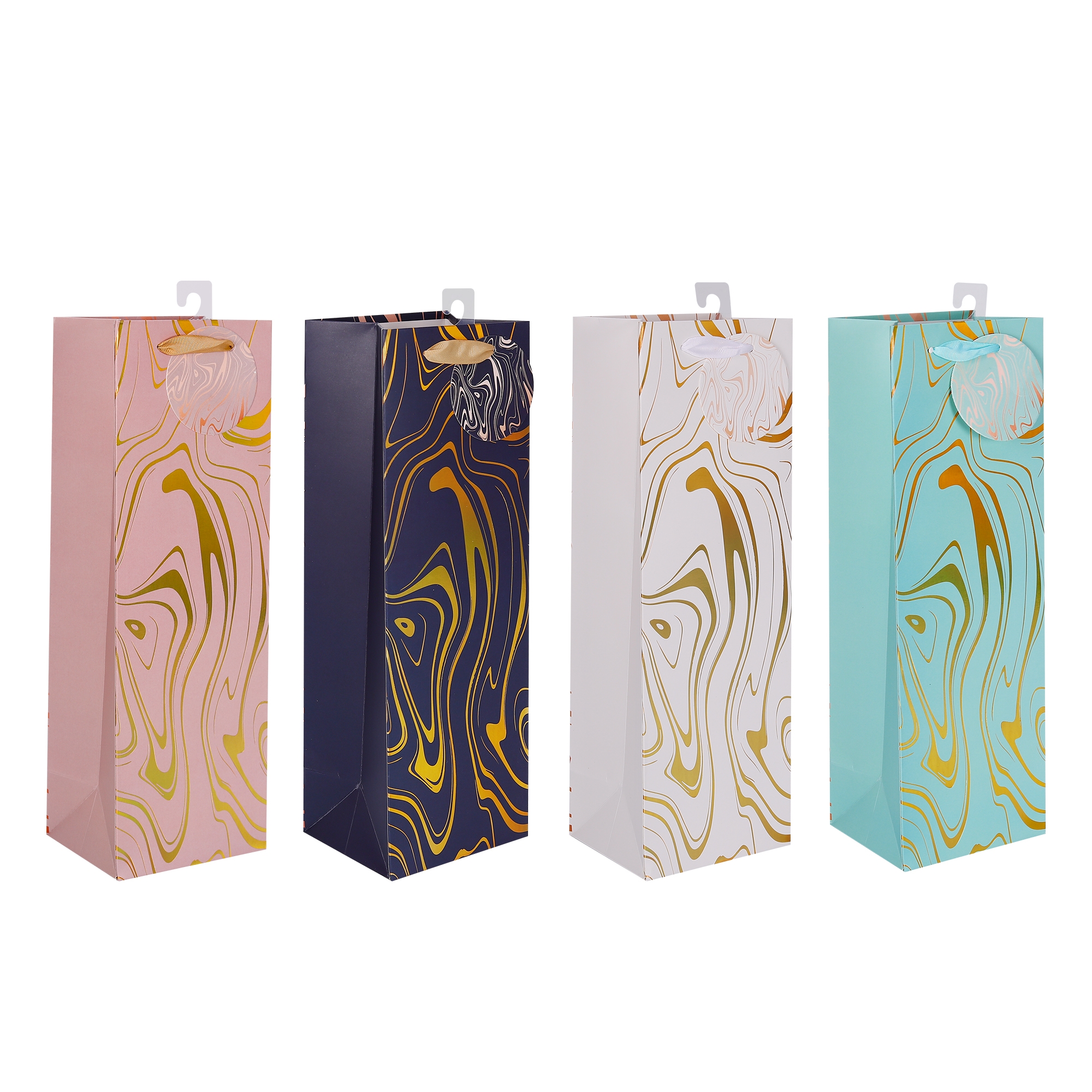 24 x Marble Flow Bottle Gift Bag Foiled Btl 4 Assorted