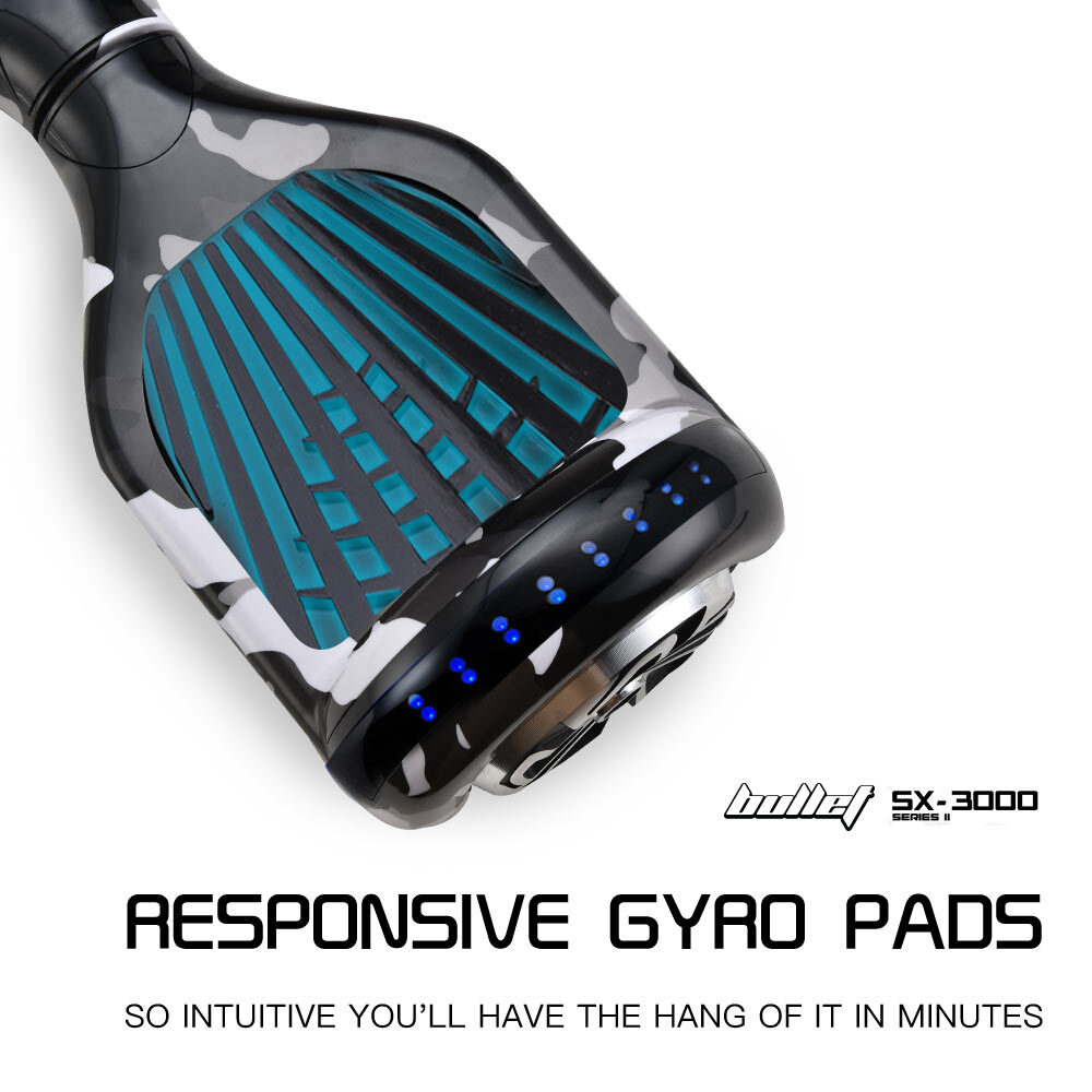 BULLET Electric Hoverboard Scooter 6.5 Inch Wheels, Colour LED Lighting, Carry Bag, Gen III Camo Grey