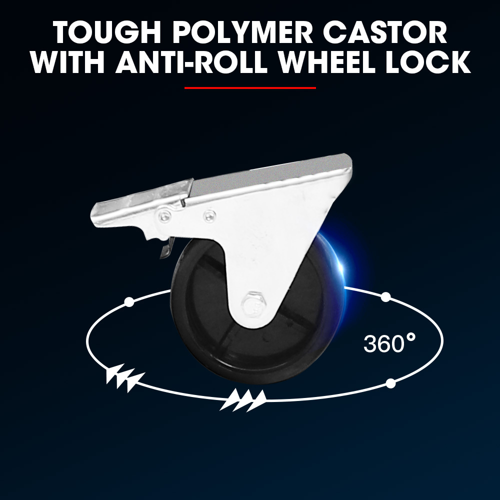 - Wheels: 4 x Casters (2 with Locks)