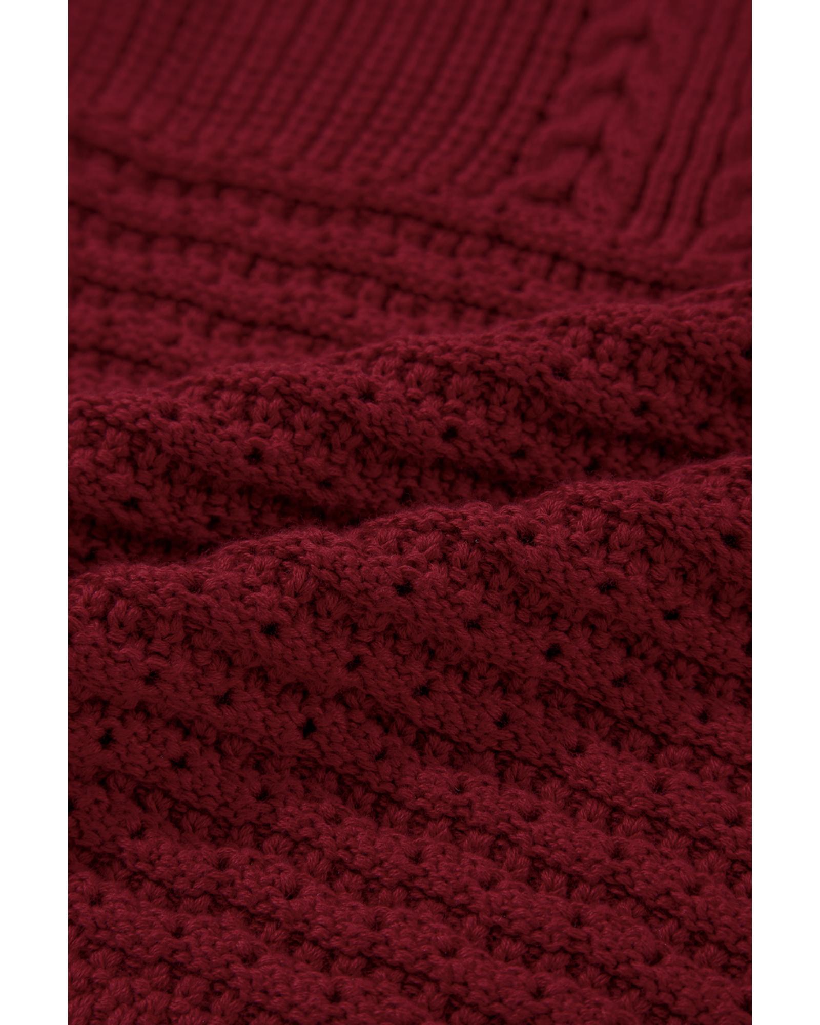 Burgundy Cable Knit Pointelle Slim Fit V Neck Sweater Vest – XL