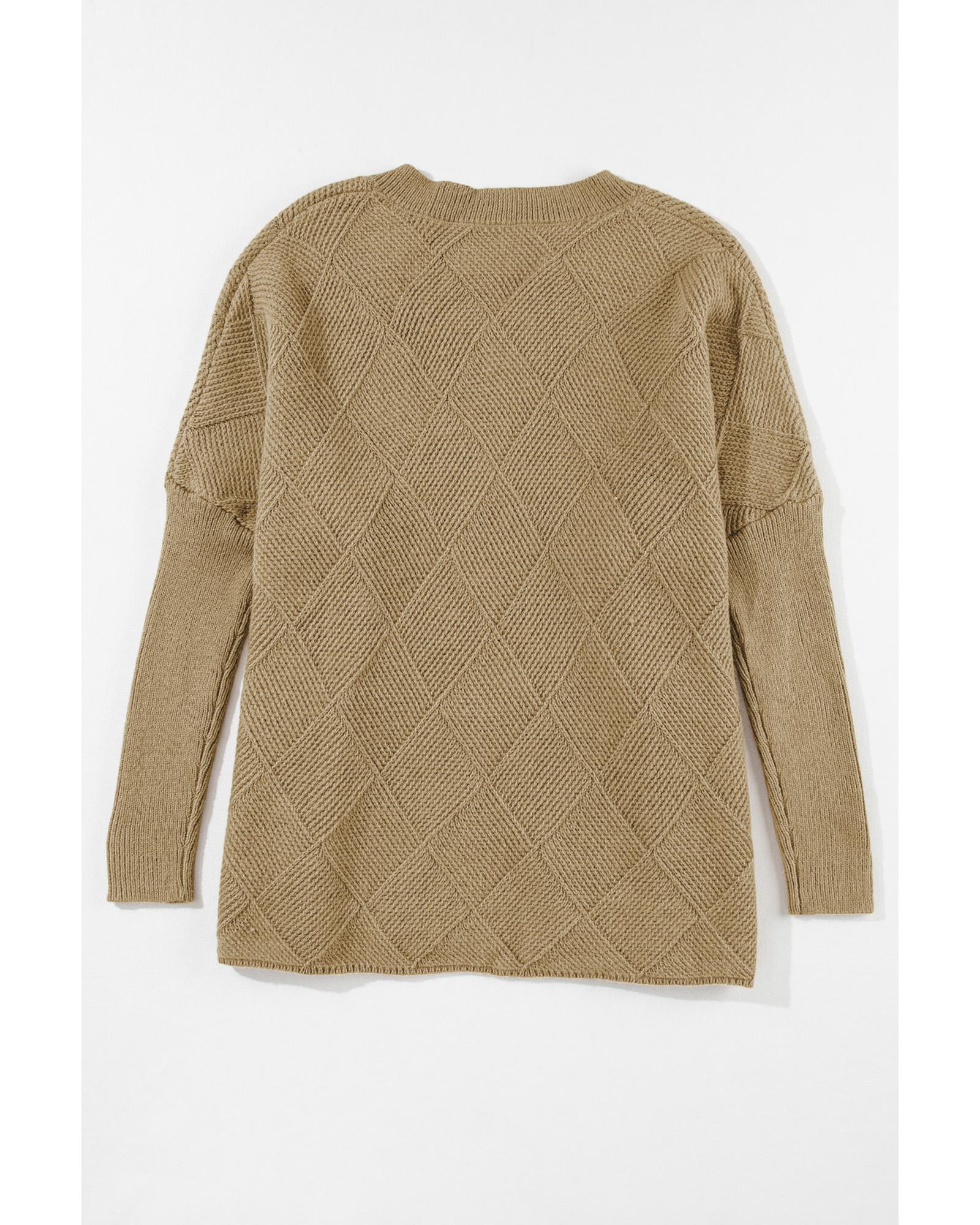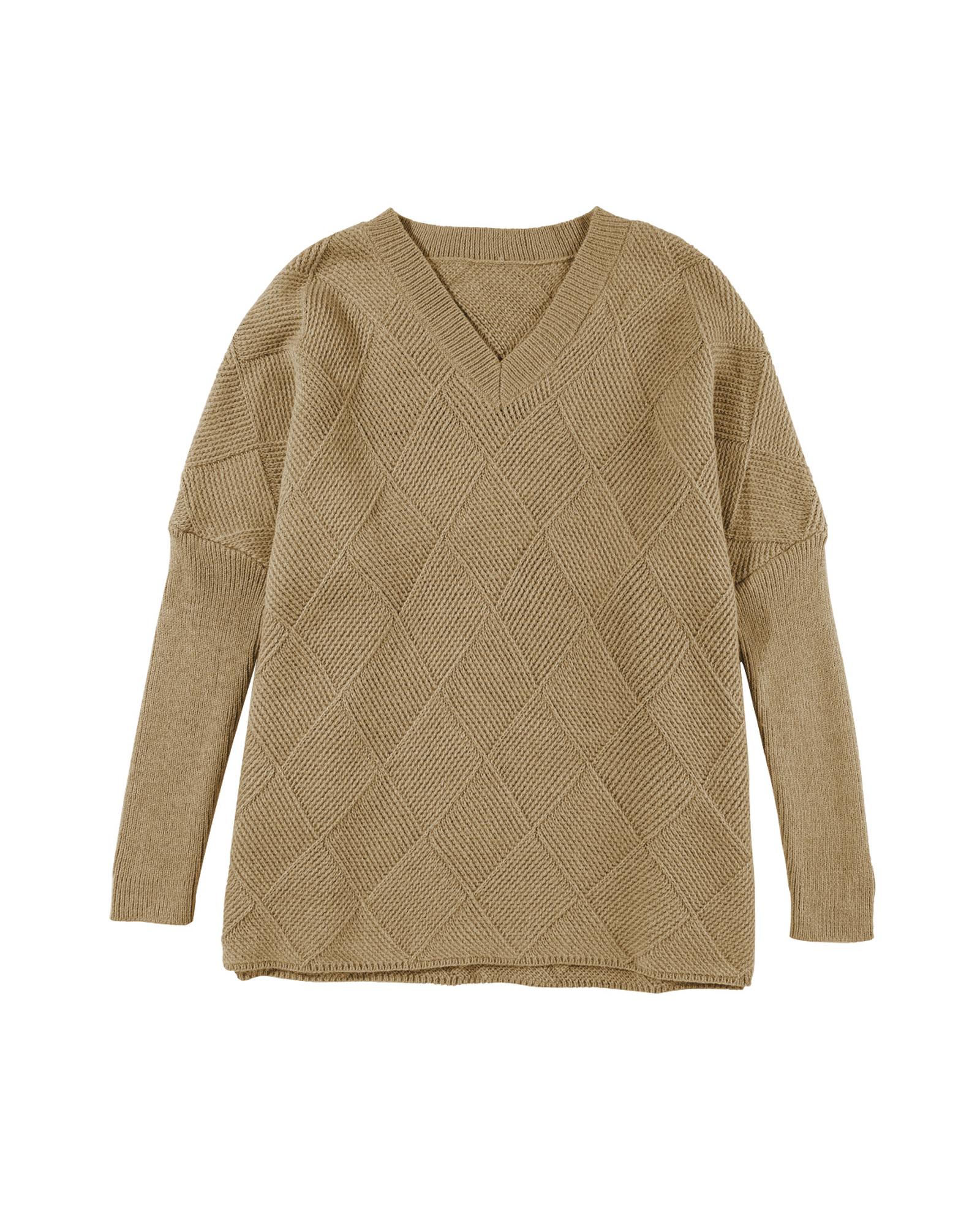 Camel Checkered Textured Batwing Sleeve Sweater – M