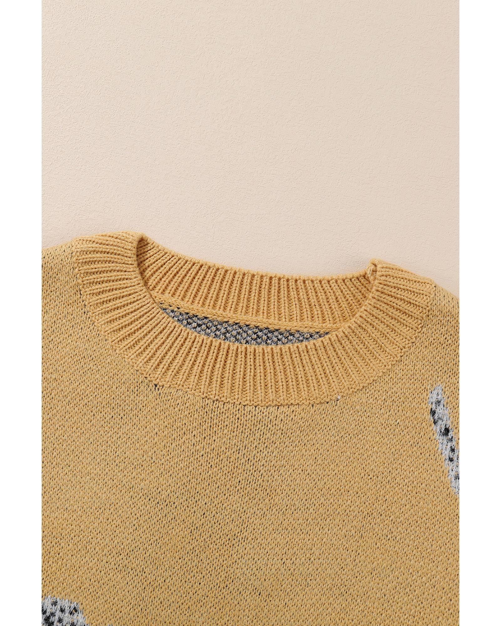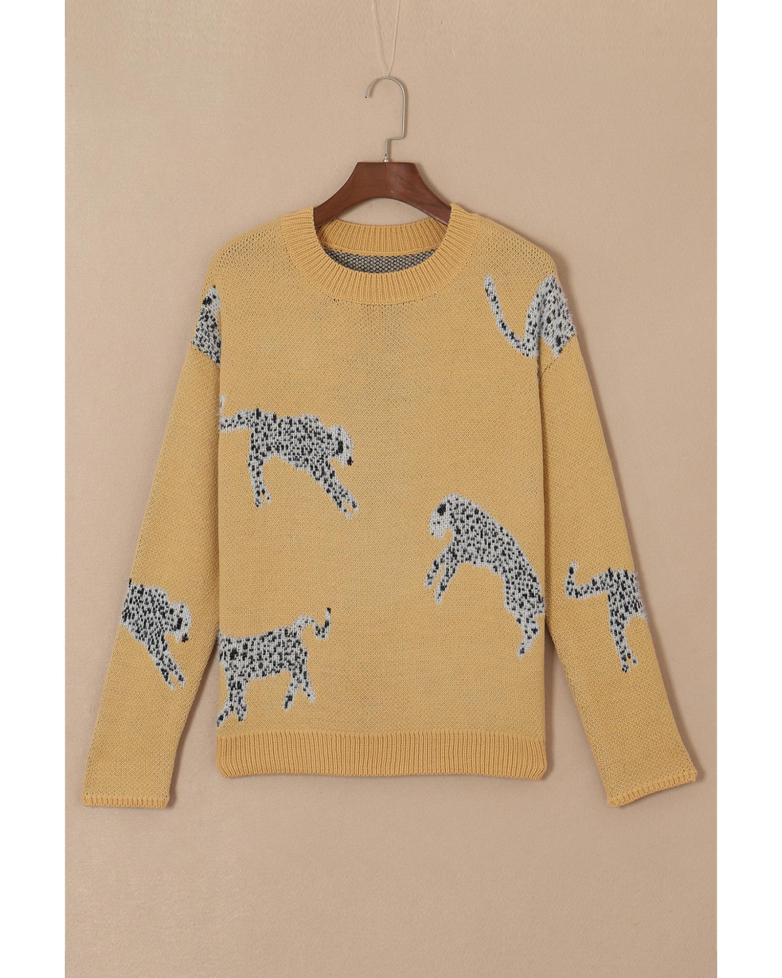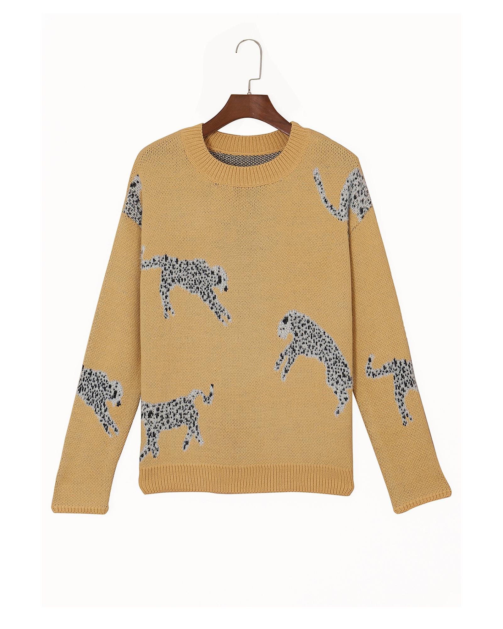 Camel Fuzzy Cheetah Accent Round Neck Sweater – XL