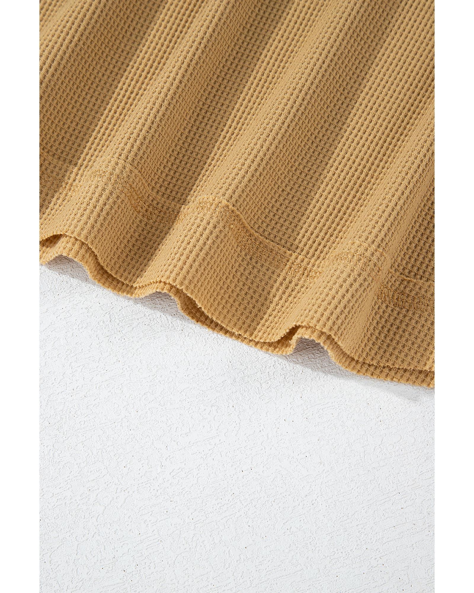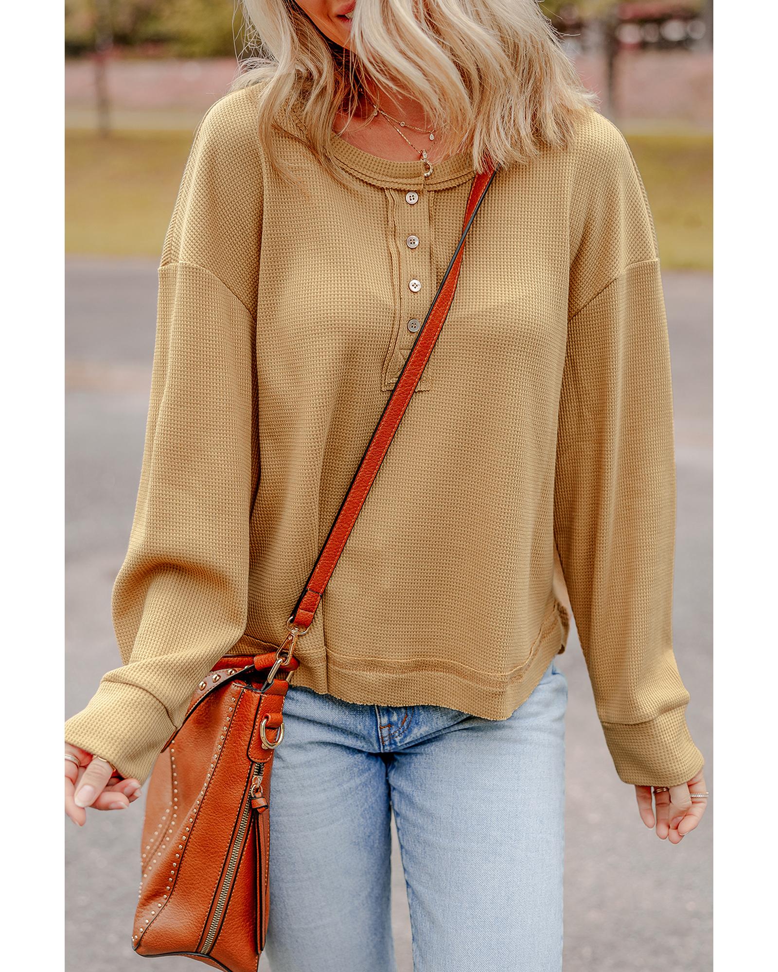 Camel Textured Knit Half Button Drop Shoulder Oversized Top – S