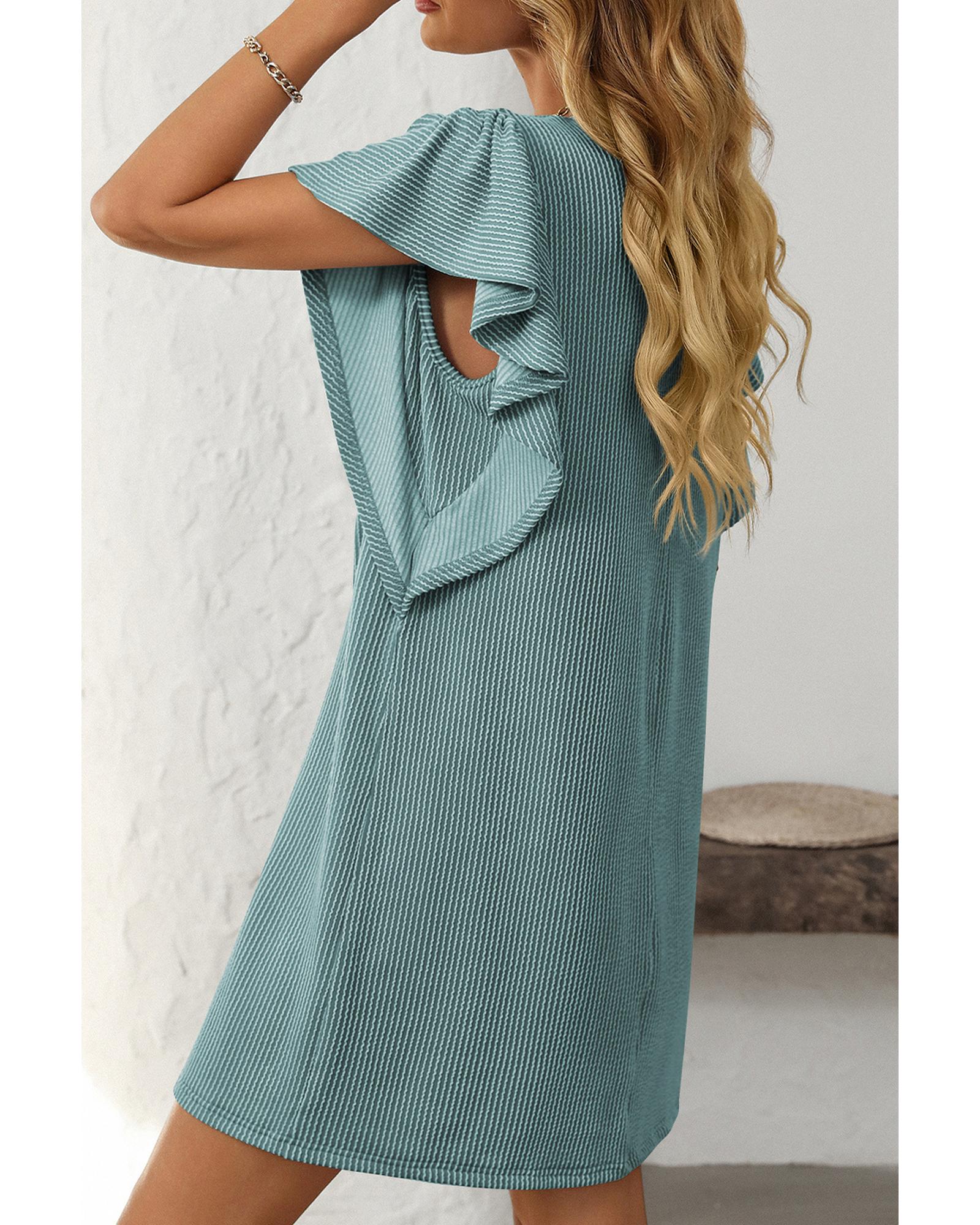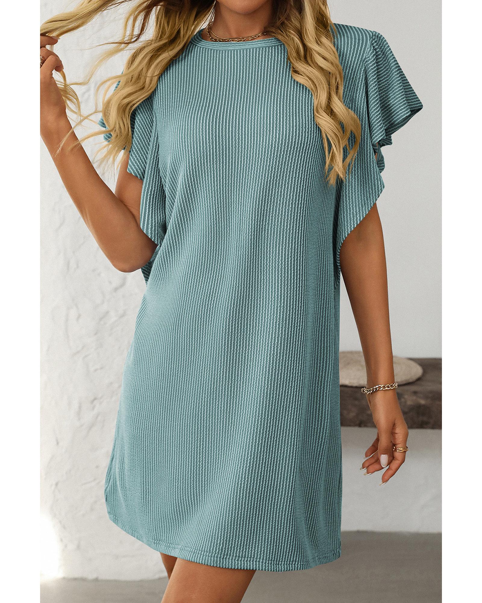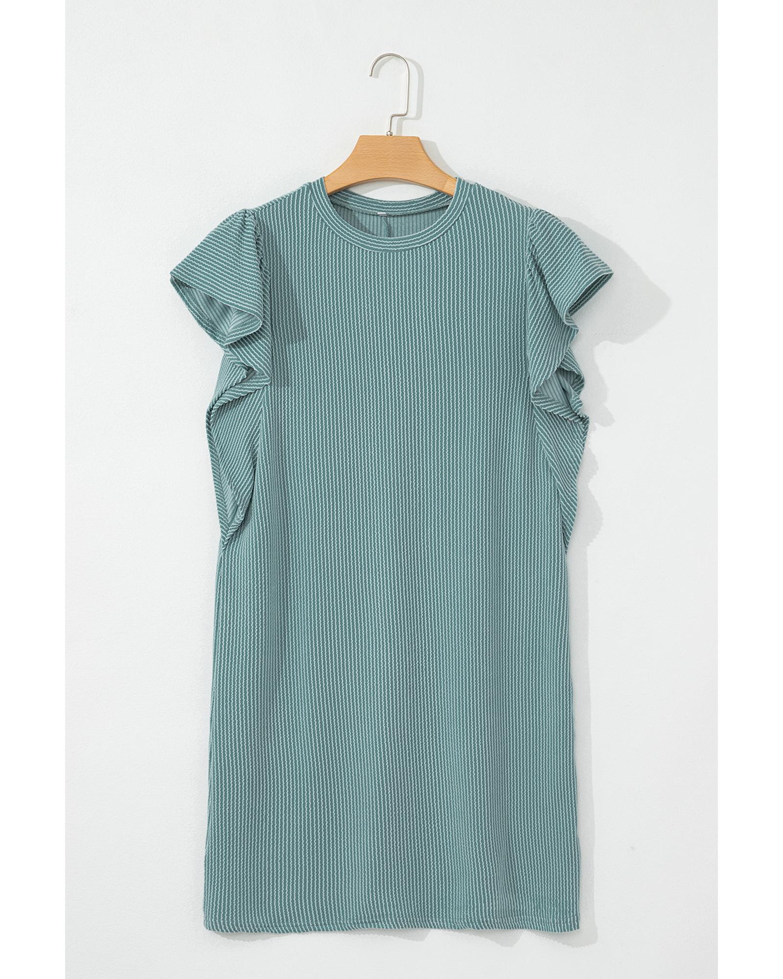 Canton Corded Ruffle Sleeve Crew Neck Shift Dress – S