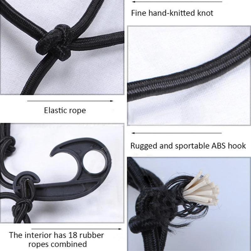 For securing luggage and goods on roof baskets, roof bars, roof racks, car boots, trailers, etc.