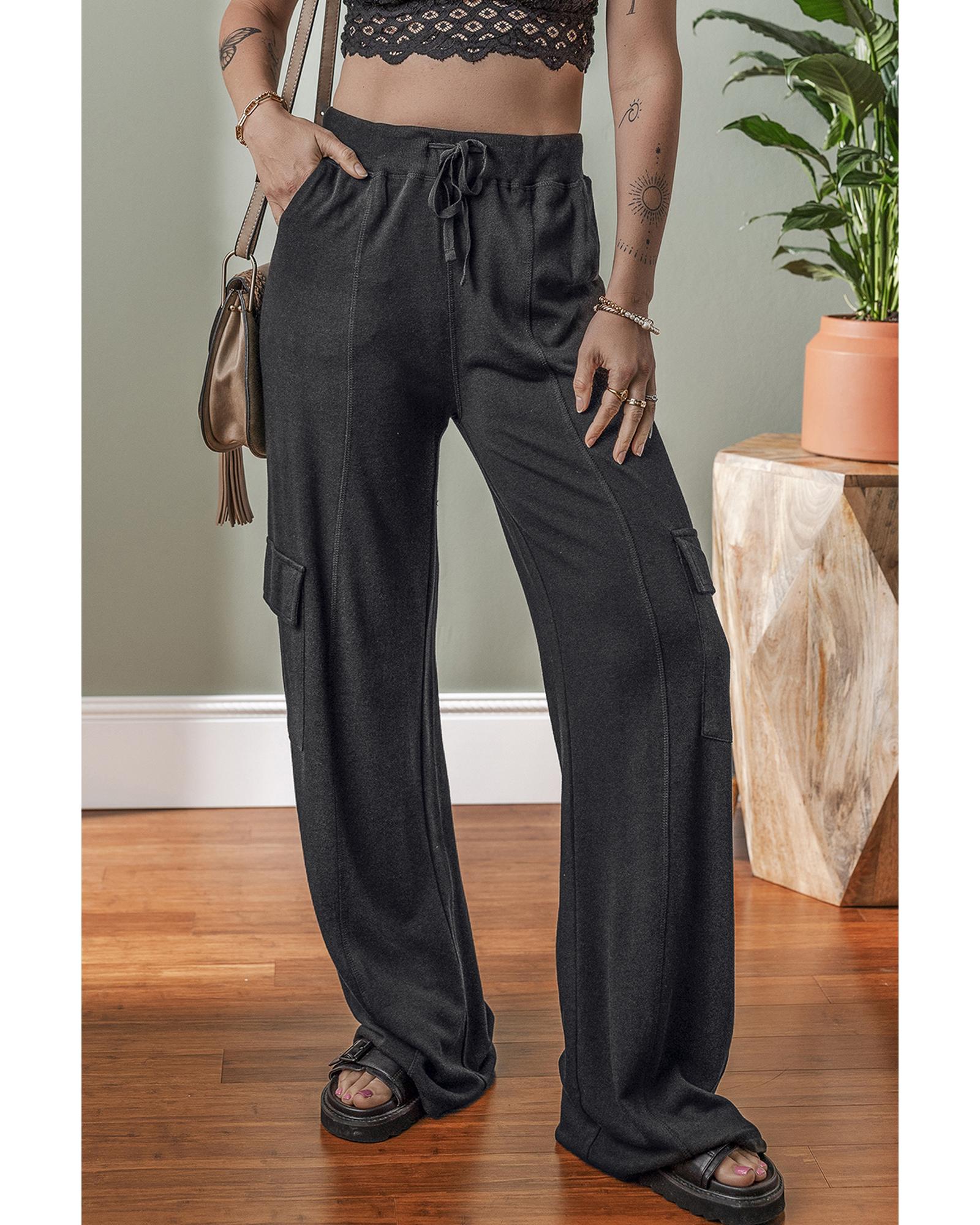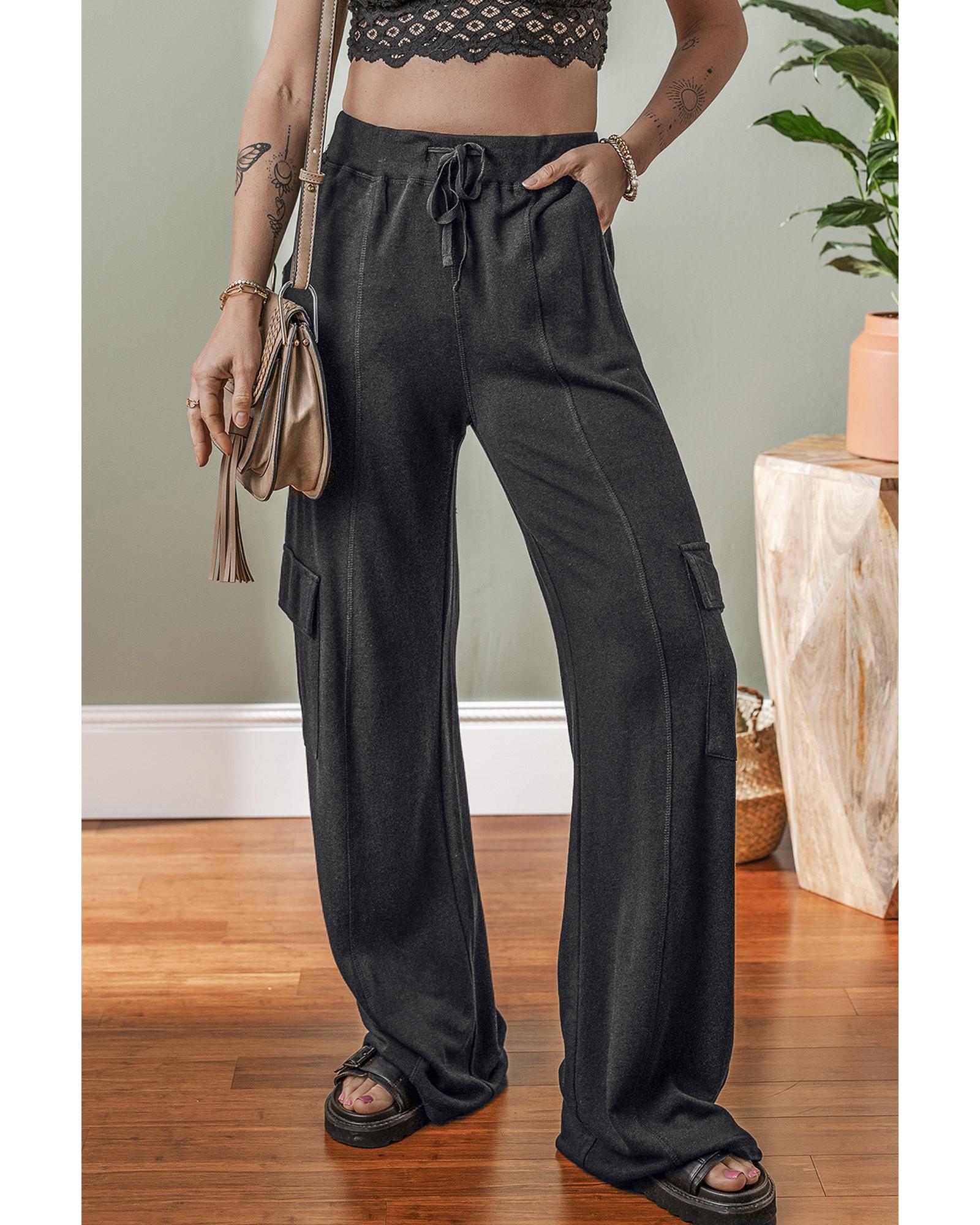 Carbon Grey Cargo Pockets Drawstring Sweatpants – L