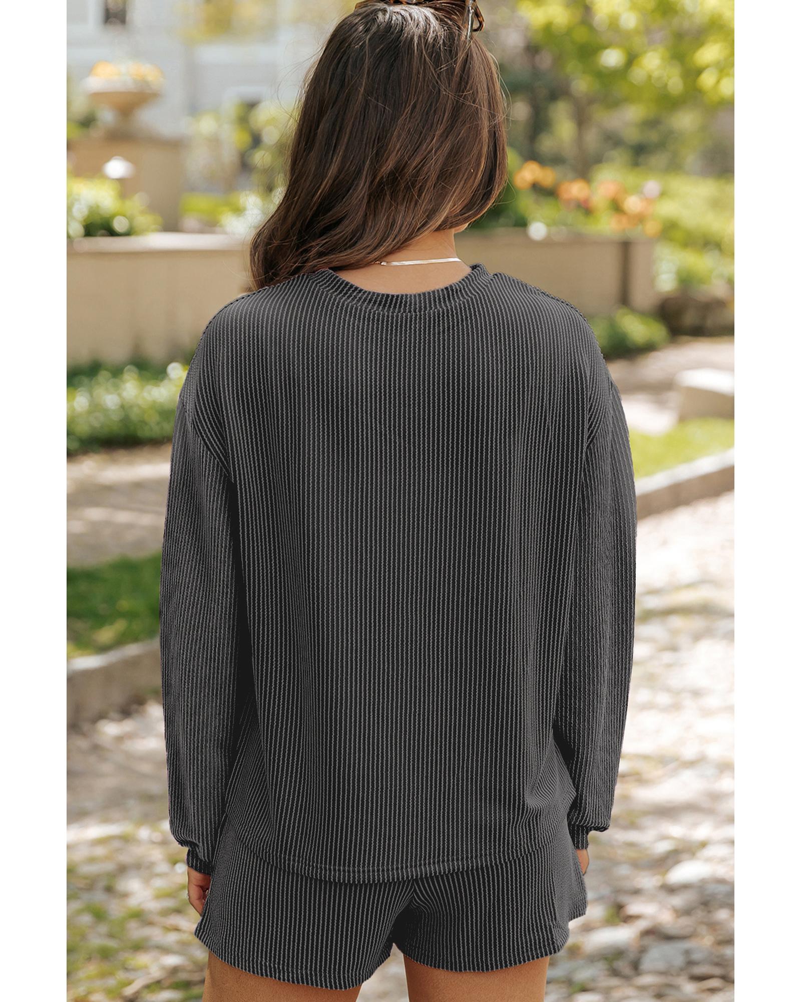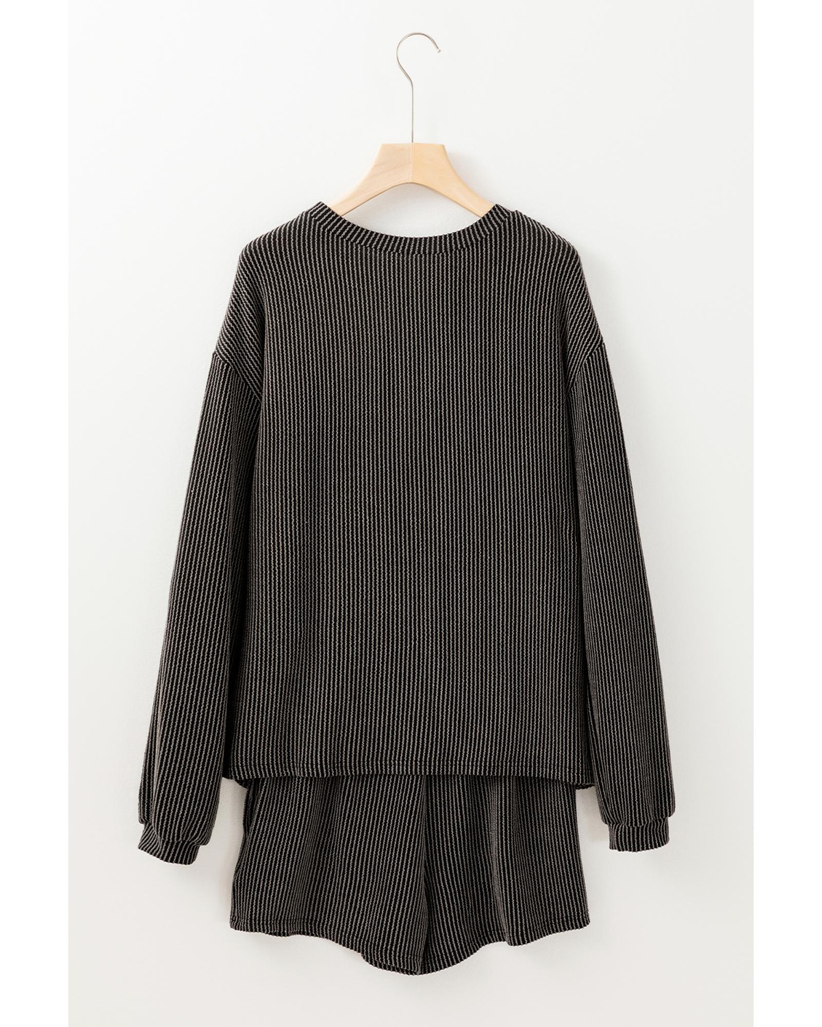 Carbon Grey Mardi Gras Fleur de Lis Patched Corded Long Sleeve Top and Shorts – XL