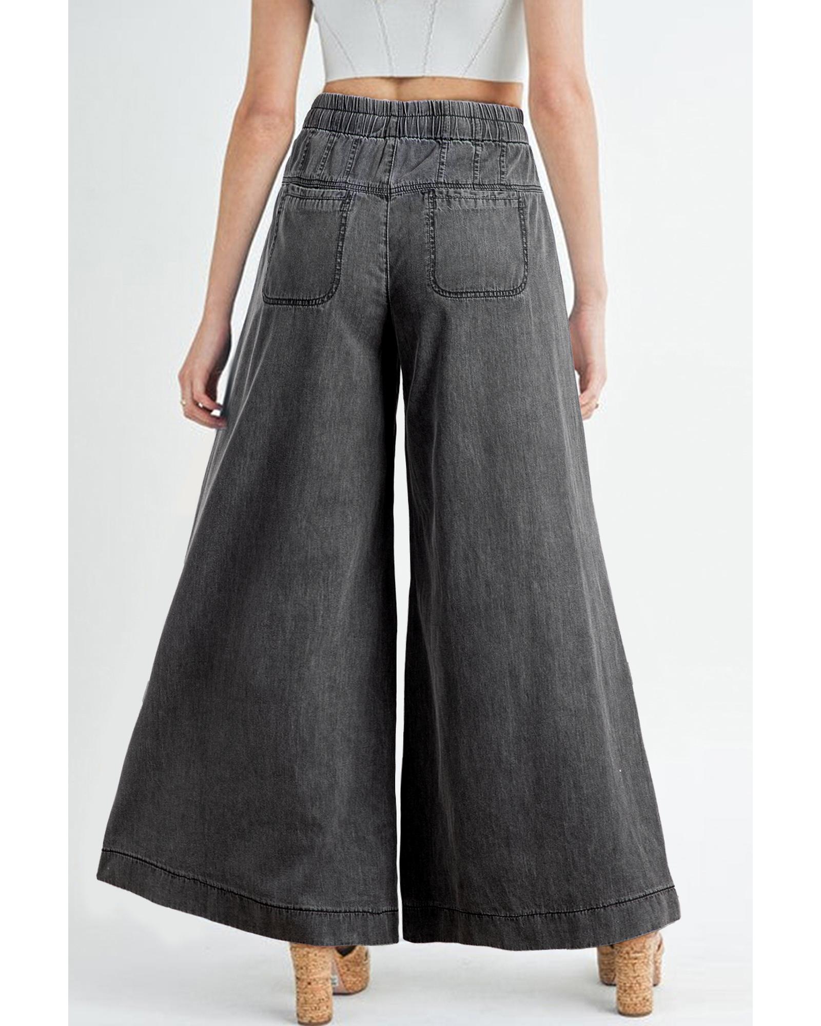 Carbon Grey Mineral Wash Button Fly Waist Wide Leg Jeans – 4 US